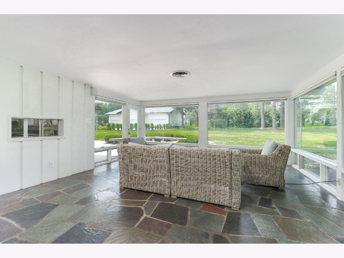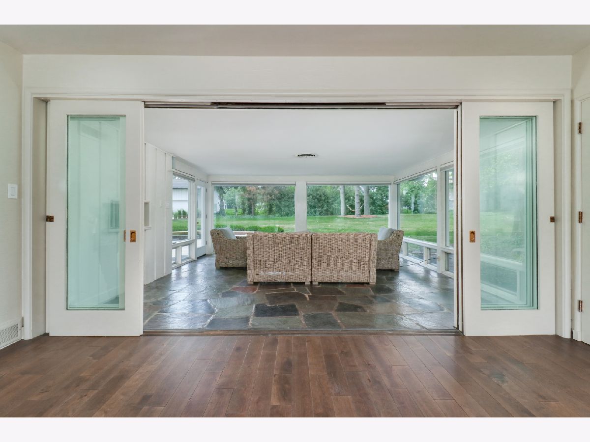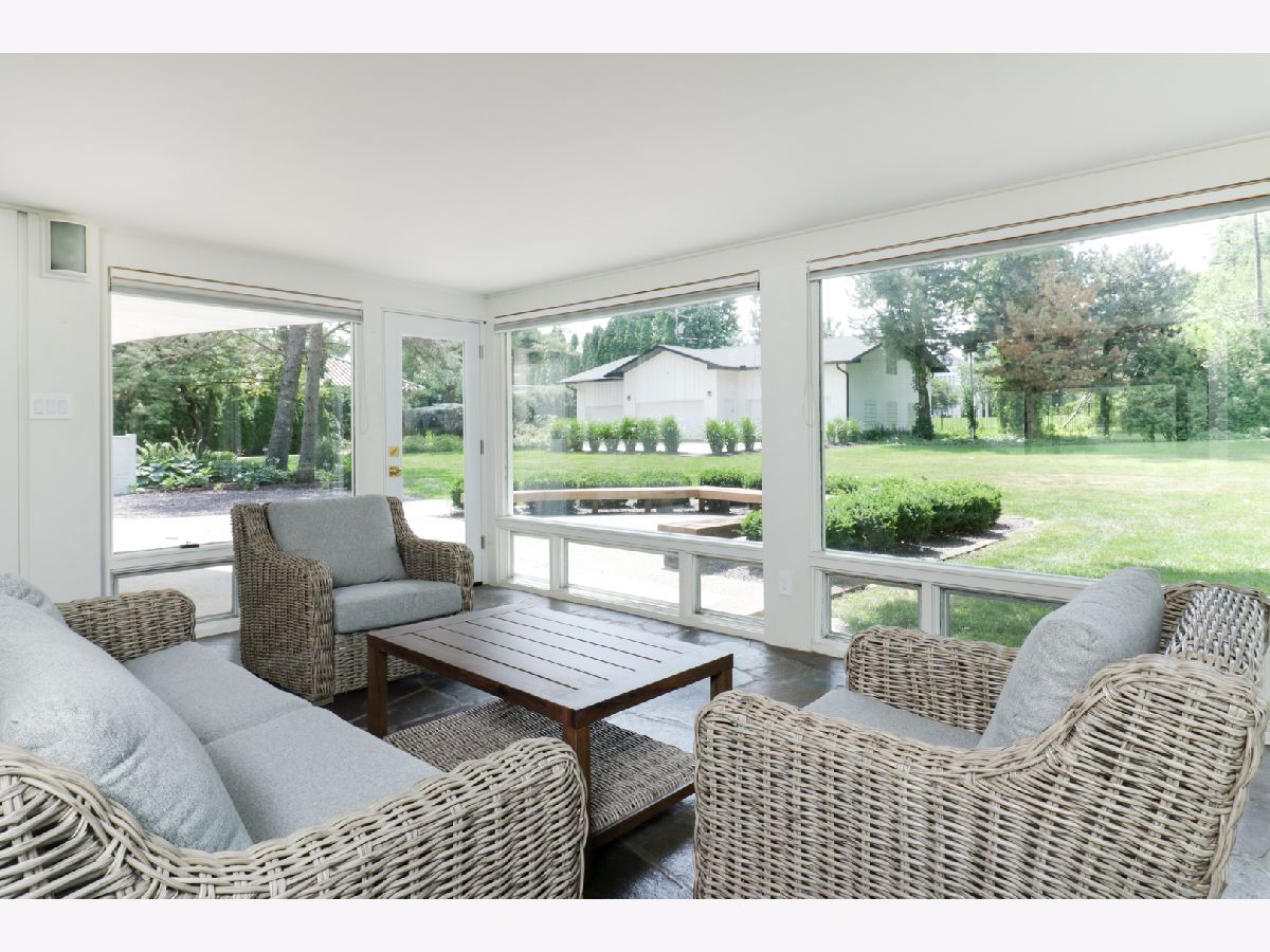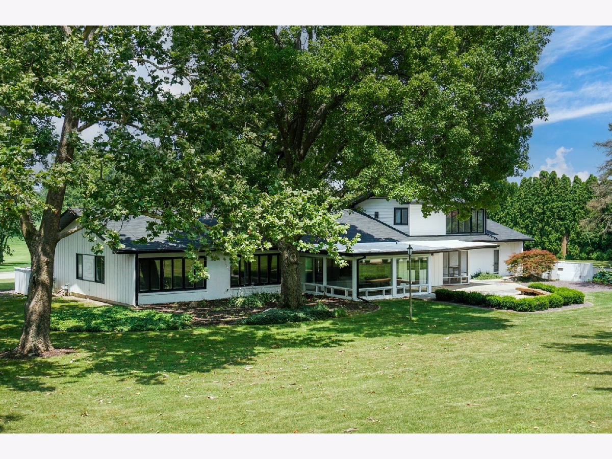 Nestled within the prestigious Bloomington Country Club neighborhood, this luxury ranch-style home sits on a double lot, offering a mid-century modern feel. As you approach the property, you'll be captivated by the serene and private setting, surrounded by matured trees and stunning views of the nearby golf course. Upon entering the home, a stone floor foyer with three storage coat closets welcomes you. The expansive, open floor plan seamlessly connects the main family room and dining area, featuring a striking marble wood-burning fireplace, built in shelves and new 3/4" solid birch wood floors that flow into all bedrooms. Style and functionality meet in the updated retro-style mid-century modern kitchen that is outfitted with stainless steel appliances, stainless steel workspace, professionally painted original St. Charles Mid Century Modern cabinets, pass-through, and large walk-in pantry. Adjacent to the kitchen, a practical drop zone with ample closet space and a separate service door into the house provides convenience and organization. For more relaxed living, the four seasons sun room offers expansive views of the peaceful, double lot yard, allowing you to enjoy the beauty of each season from the comfort of your home. This residence boasts four large bedrooms, each with generous closet space, and four full bathrooms. The fourth bedroom above the garage offers a full bathroom and double closets providing an additional versatile space, perfect for a guest suite or home office. The main floor half bath has been meticulously remodeled with high-end design choices, adding a touch of luxury. The lower level features an updated basement with new luxury engineered hardwood floors, fresh paint, new trim, new light fixtures, a built-in display shelf, full bathroom, and laundry room with sink & work space all creating a cozy and inviting space for additional living or recreational activities. For car enthusiasts or those in need of extra storage, the property includes an attached three-car garage with three large storage closets and utility sink. Additionally, there is a six-car detached, extra-deep, heated garage with a massive 60 x 40 bonus room on the second floor, offering endless potential for use. This exceptional garage setup is perfect for hobbies, a workshop, or additional living space. Outdoor living is equally impressive with a large patio with built-in seating, perfect for entertaining or simply enjoying the tranquility of the beautiful surroundings. The private backyard oasis provides a peaceful retreat, ideal for relaxation and outdoor activities. Both the house and the detached garage have new roofs installed in 2021. This one of a kind home in the Bloomington Country Club neighborhood is ready for your vision! Reach out today for a private tour and experience the beauty of this home for yourself.