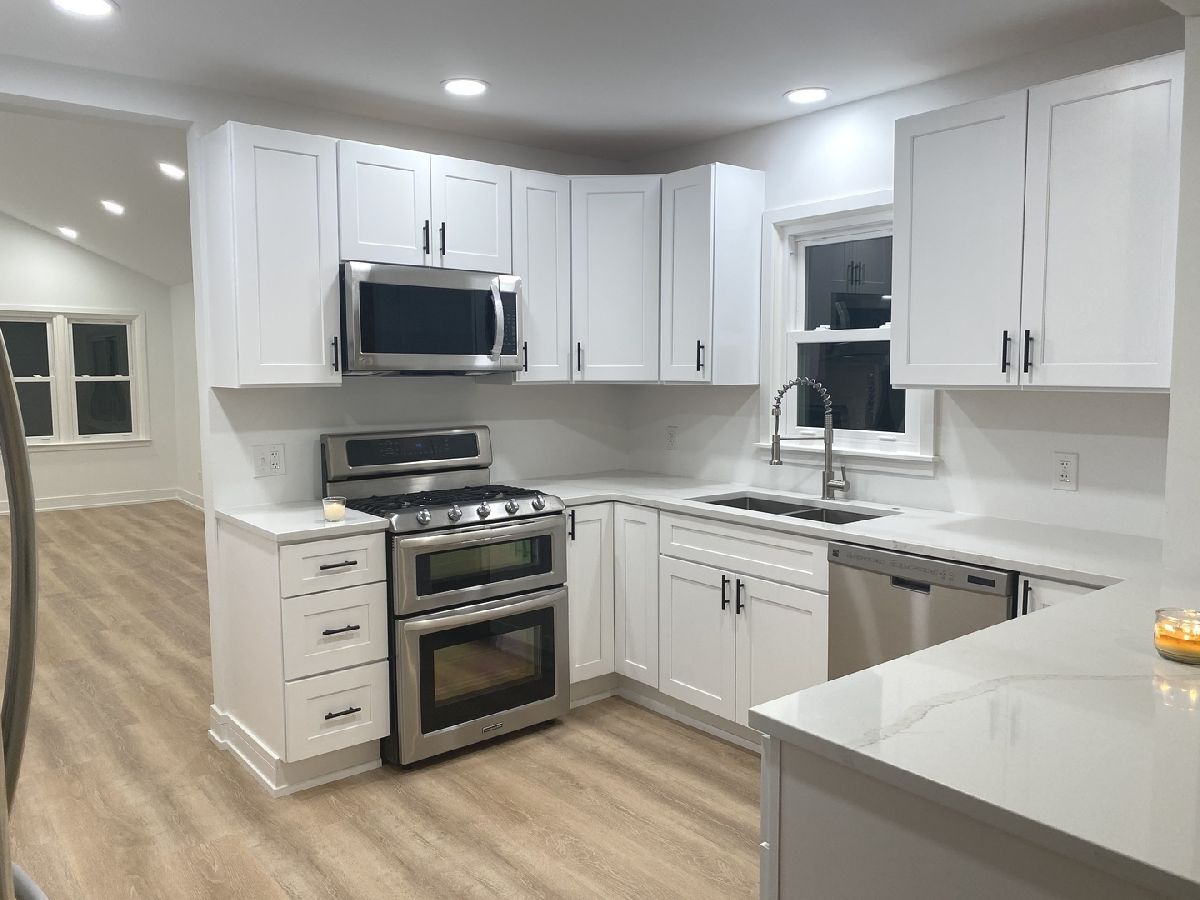 Completely Renovated 3 Bed, 2 Bath Ranch which sits on deep open lot . Modern finishing touches with an open kitchen with exposed brick feature. Stainless steel appliances with quartz countertops. Large living room,dining room combo. Large family room with cathedral ceiling. LED recessed lighting throughout the home. All new electric and plumbing. Sconces bring a warm feeling to the dining area. All new shaker style doors. This home is bright and airy and ready to entertain. Both bathrooms are pinterest worthy. Both baths are equipped with Bluetooth speakers try them out ! Brand new carpeting in 2 bedrooms. There is a huge 500 Sq. Ft. deck surrounded by landscaped flower beds overlooking nearly a 1/3 of an acre deep lot. Low taxes!This home is everything you want it to be.