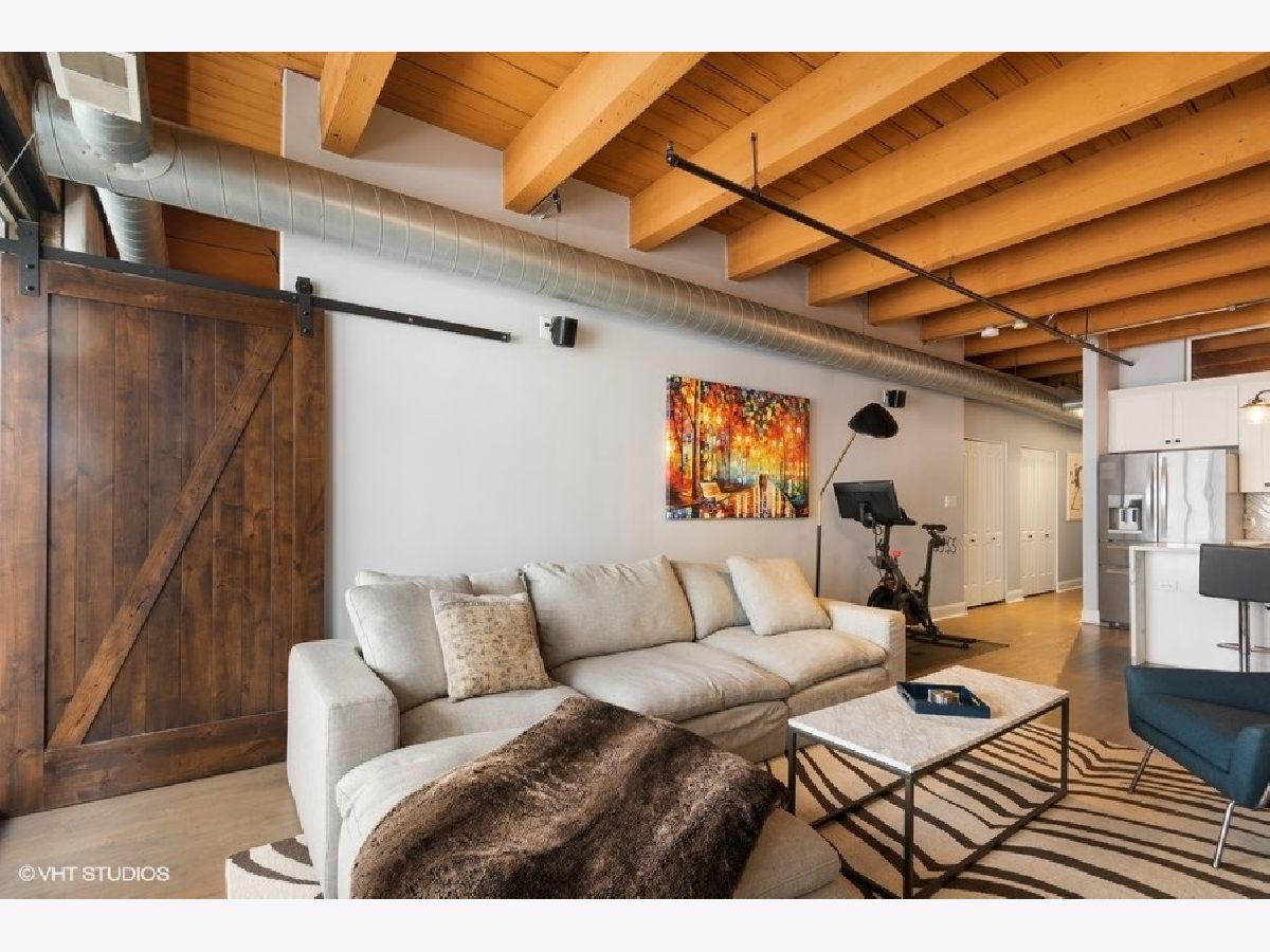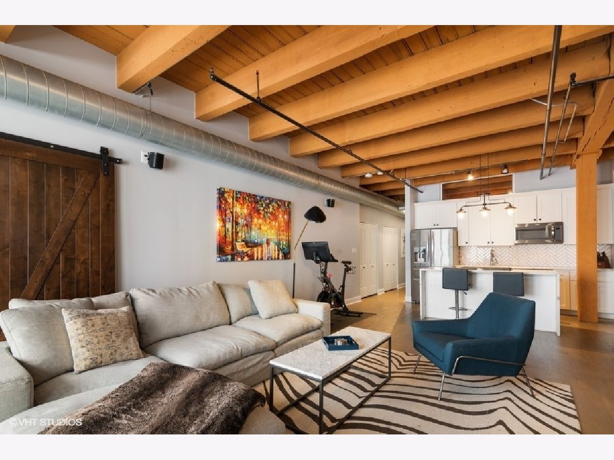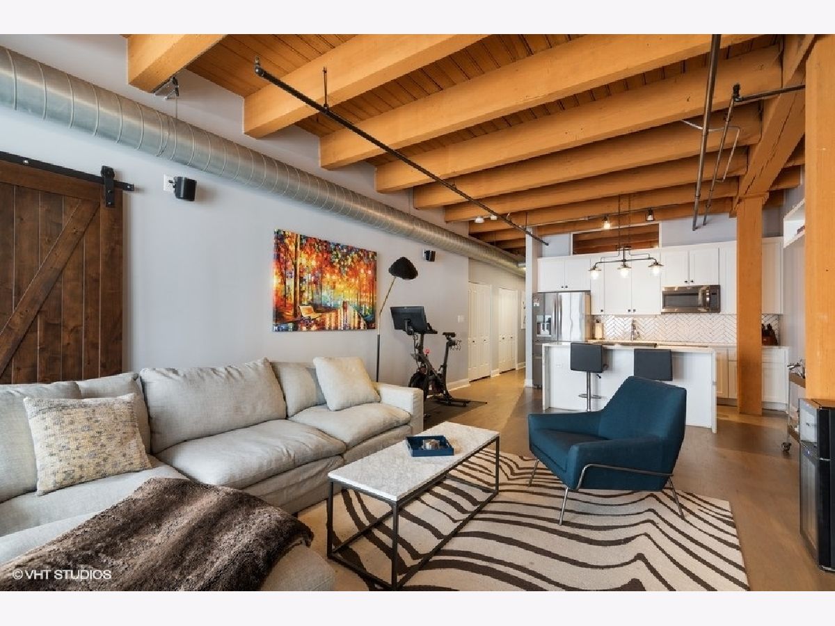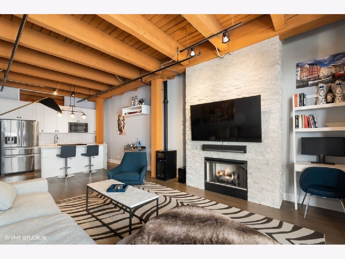 West Loop lovers will be thrilled to be in this unbeatable location - moments from all the joys of this popular and exciting neighborhood. However, upon entry, this unit offers unmatched privacy! Trendy, sophisticated updates at every turn. The entire residence was redone two years ago and is sparkling & new! TIMBER LOFT dreams come true with extremely elevated ceiling heights and new eye-catching hardwood floors throughout. Perfect split floor plan with sizable bedrooms and an overload of storage! New open kitchen features glamours waterfall quartz counters, unique and classy herringbone tile backsplash, soft close white shaker style cabinets and SS appliances. Clean and crispy marble baths with high end finishes. En suite primary suite with tons of custom walk-in closet storage and excellent bath accommodations with dual vanity and grand walk-in marble fitted shower. Stylish and functional rich barn doors, high end lighting fixtures and a dramatic show stopper stone fireplace confirm all details have been thoughtfully executed. In-unit laundry with BRAND NEW machines, coat closet and pantry make this plan extra ideal. Living room features full size sliding doors for access to your oversized private balcony for fresh air. Secure garage parking extra $30k with hook up for electric vehicle. Surround sound system for TV/Sonos recently installed. Extra storage included. BRAND NEW HVAC (2020). Building has huge common roof deck with truly spectacular skyline & West Loop views to entertain plus bike storage! Wildly close to Whole Foods, SOHO, Fulton Market, Randolph's famous Restaurant Row, Madison excitement, shopping, Google HQ, awesome big parks, Skinner Elementary and more! Great value to be in this booming location with new construction prices rapidly increasing around the corner. LOW ASSESSMENTS!