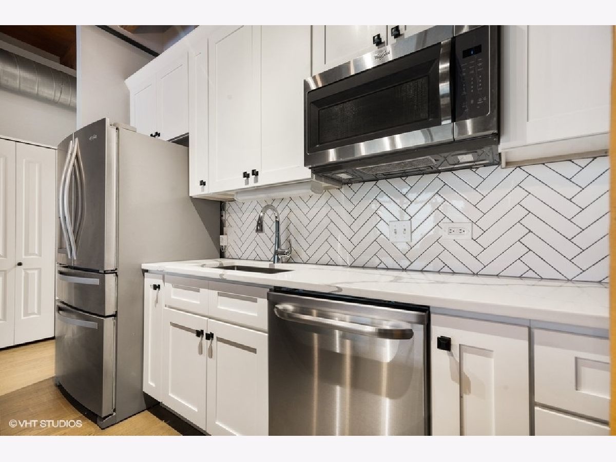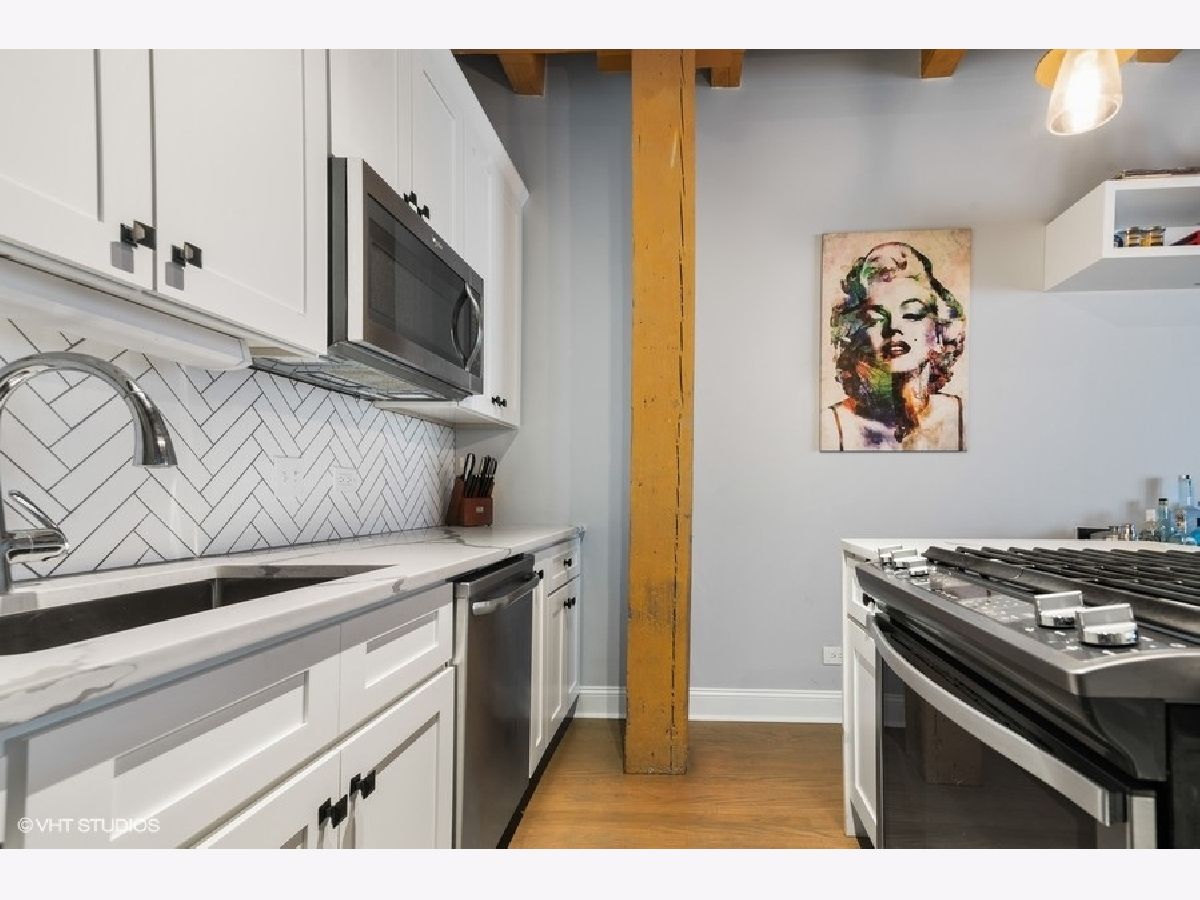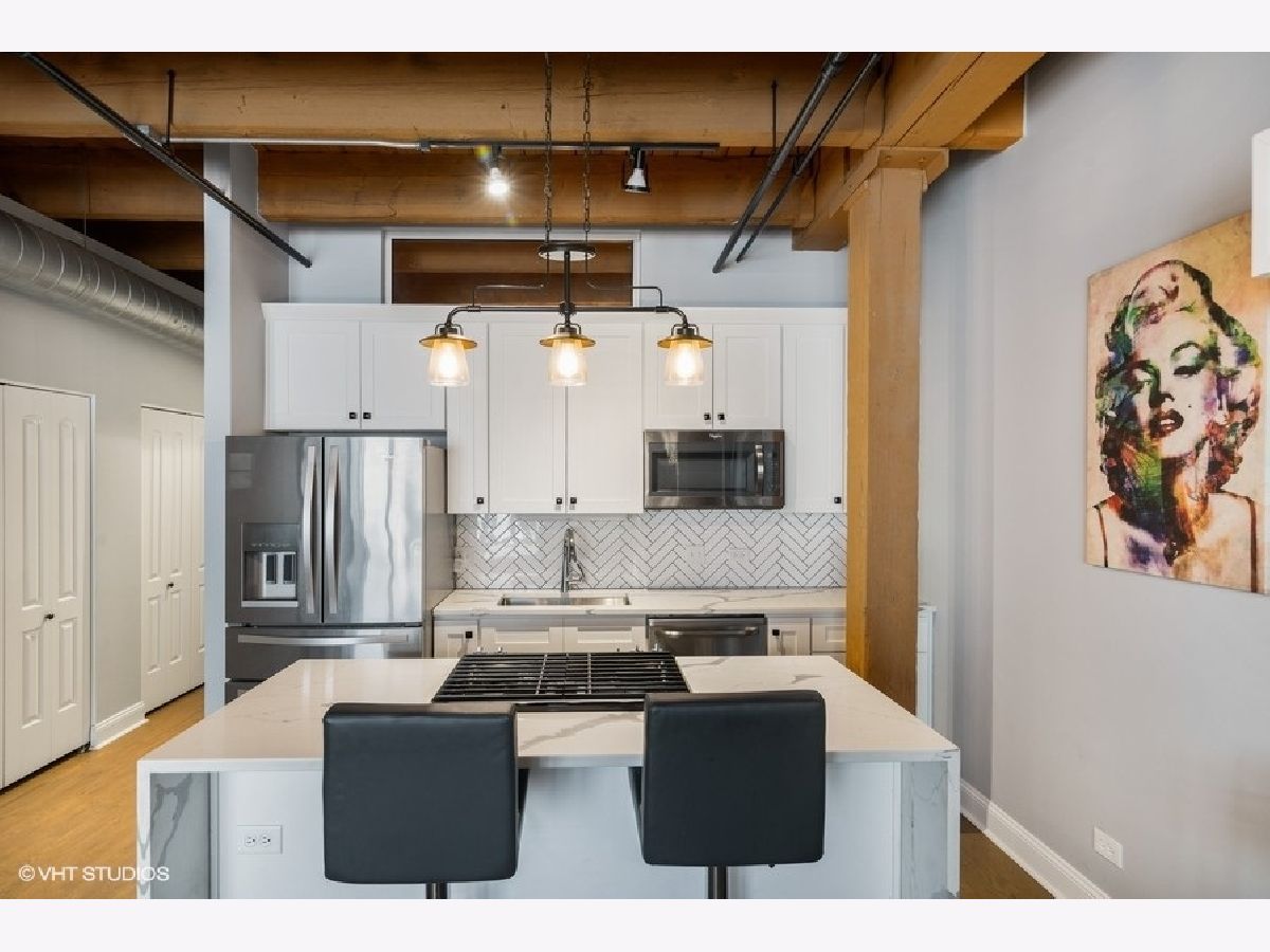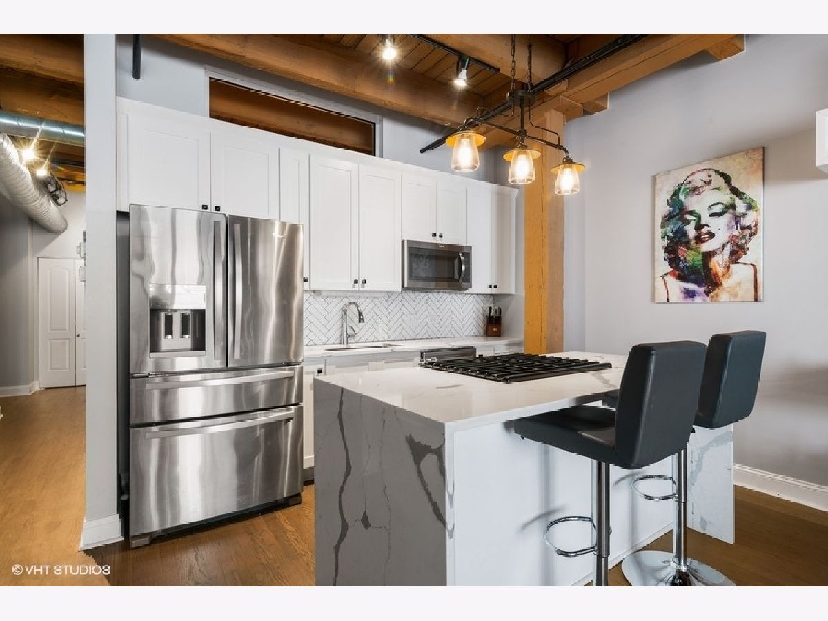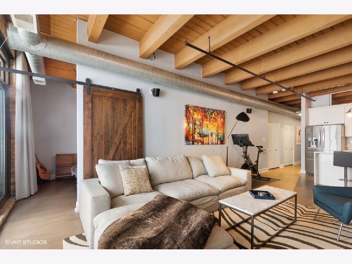West Loop lovers will be thrilled to be in this unbeatable location - moments from all the joys of this popular and exciting neighborhood. However, upon entry, this unit offers unmatched privacy! Trendy, sophisticated updates at every turn. The entire residence was redone two years ago and is sparkling & new! TIMBER LOFT dreams come true with extremely elevated ceiling heights and new eye-catching hardwood floors throughout. Perfect split floor plan with sizable bedrooms and an overload of storage! New open kitchen features glamours waterfall quartz counters, unique and classy herringbone tile backsplash, soft close white shaker style cabinets and SS appliances. Clean and crispy marble baths with high end finishes. En suite primary suite with tons of custom walk-in closet storage and excellent bath accommodations with dual vanity and grand walk-in marble fitted shower. Stylish and functional rich barn doors, high end lighting fixtures and a dramatic show stopper stone fireplace confirm all details have been thoughtfully executed. In-unit laundry with BRAND NEW machines, coat closet and pantry make this plan extra ideal. Living room features full size sliding doors for access to your oversized private balcony for fresh air. Secure garage parking extra $30k with hook up for electric vehicle. Surround sound system for TV/Sonos recently installed. Extra storage included. BRAND NEW HVAC (2020). Building has huge common roof deck with truly spectacular skyline & West Loop views to entertain plus bike storage! Wildly close to Whole Foods, SOHO, Fulton Market, Randolph's famous Restaurant Row, Madison excitement, shopping, Google HQ, awesome big parks, Skinner Elementary and more! Great value to be in this booming location with new construction prices rapidly increasing around the corner. LOW ASSESSMENTS!