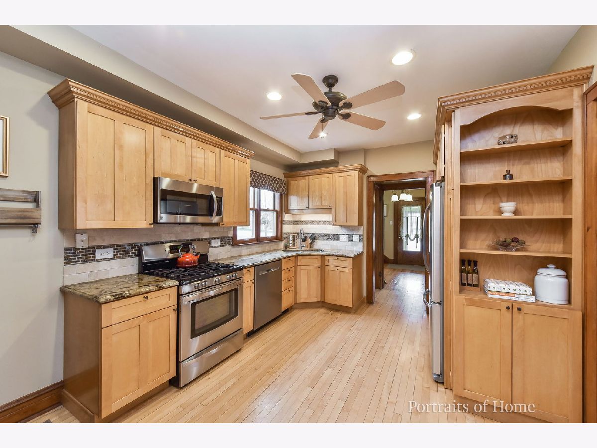 Gorgeous vintage home with all the modern amenities. 9' ceilings on 1st level. Hardwood floors and mill work throughout. Leaded glass window in living room and stained glass at base of staircase leading to 2nd floor. Kitchen features granite counter tops, glass and stone backsplash, pantry cabinet with pull-out trays, recessed lighting and all stainless steel appliances includes convection oven and newer (2 yrs) dishwasher). Separate dining room features built-in china cabinet in beautiful condition. Master bedroom features cathedral ceiling, walk-in closet, 3/4 master bath and 11X4 balcony overlooking rear yard. Great closet space in 2nd level bedrooms. Two enclosed porches. Rear enclosed porch with potential for a family room/mud room. Whole house water filtration system. 2-zone heating and air conditioning. Generac natural gas backup generator. Large rear yard with shed, plus fenced side yard-great if you have a dog, and Monarch butterfly waystation. Entire exterior, garage and shed painted in 2019. Tremendous location - a couple of houses from Great Western Trail, walk to train and town, grade school just 2 blocks away, plus easy access to shopping, restaurants and expressways.
