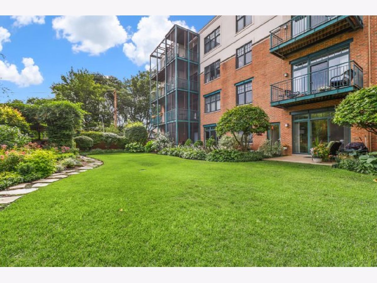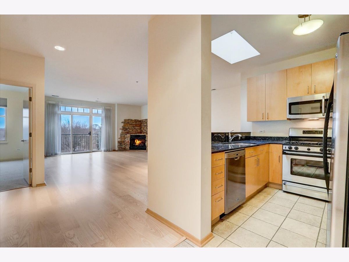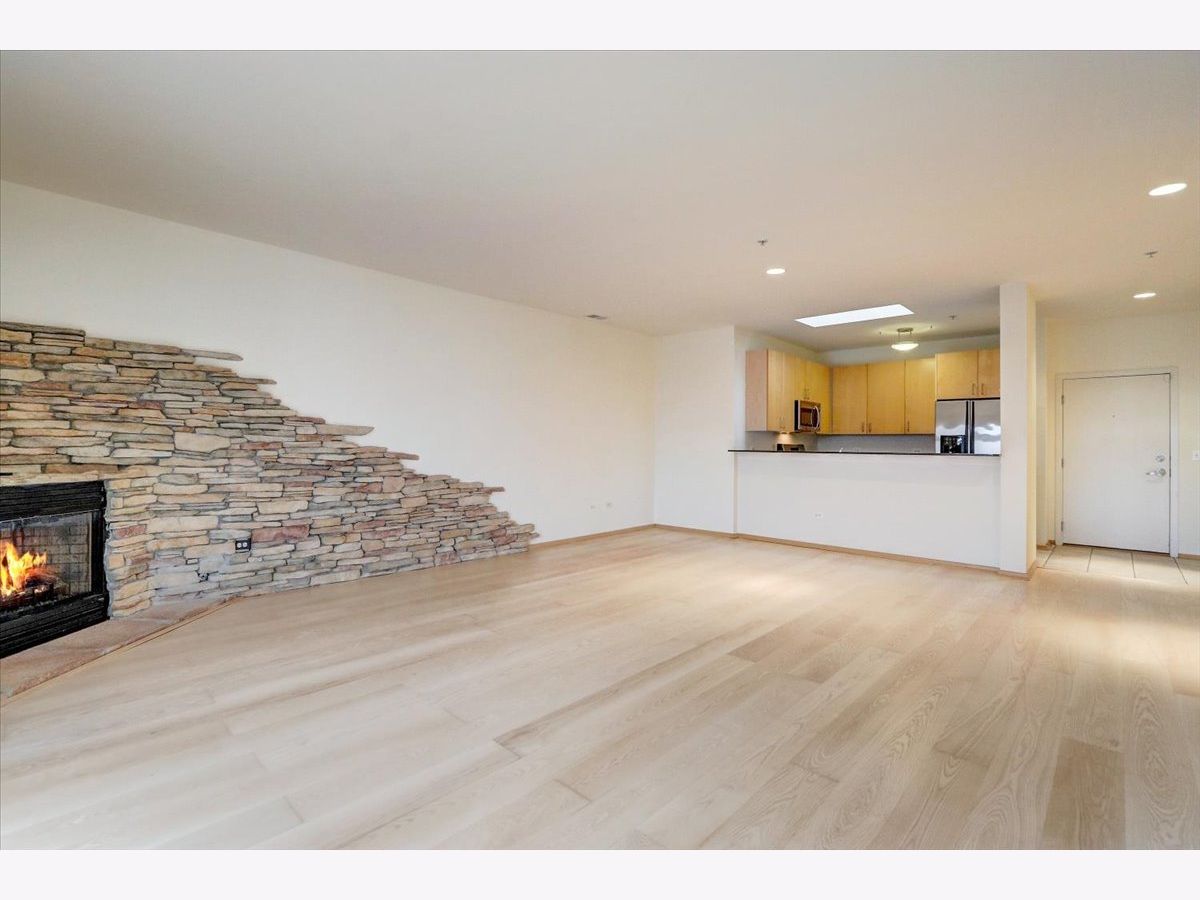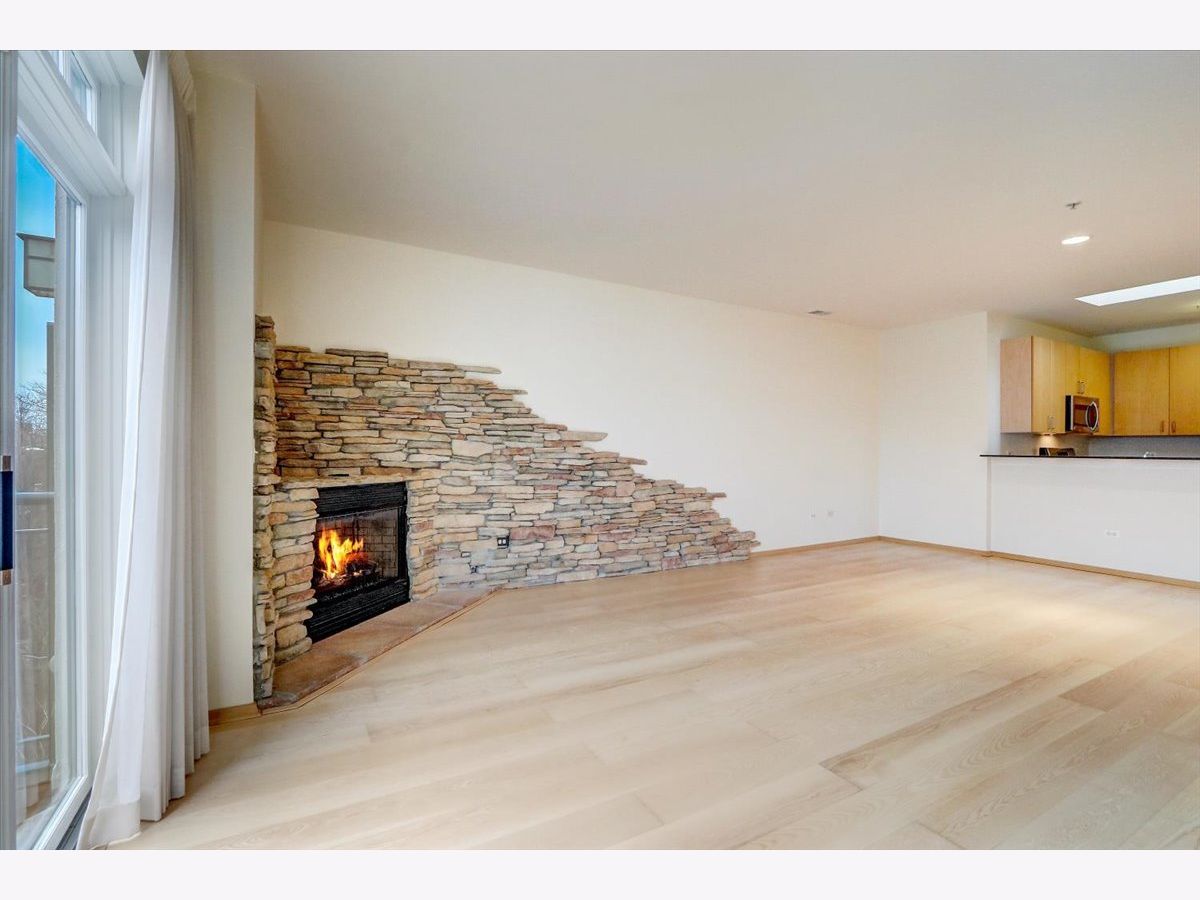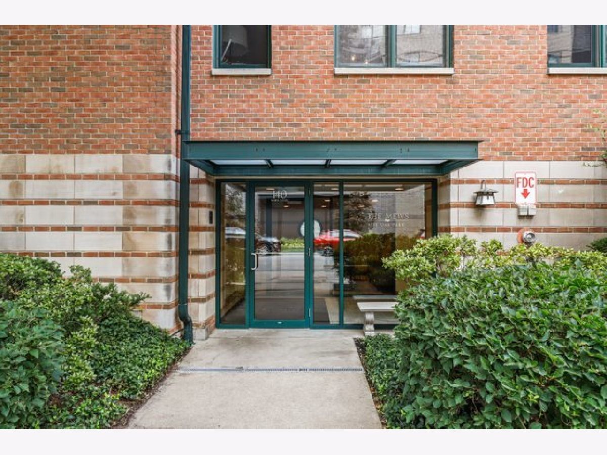 Welcome to The Mews. Located in the heart of charming downtown Oak Park, this well-managed boutique, elevator building just steps away from a variety of retail, restaurants, coffee, ice cream shops, beautiful Scoville Park and the Green line. This unit's main entrance leads you into the open, airy kitchen with a breakfast bar featuring granite countertops, along with light-filled dining and living areas. The stone gas fireplace adds a cozy feel to this generous open plan. Sliding glass doors off of the living area lead to a private, balcony, perfect for grilling or relaxing outside. Your balcony provides views of the beautifully landscaped common area with pergola and grill. A large primary bedroom with a walk-in closet and ensuite bathroom also overlooks the courtyard. The second generous bedroom is located just across the hall from the central bath. In-unit laundry and 2 indoor heated parking spots plus storage are just a few more pluses! Easy guest parking.
