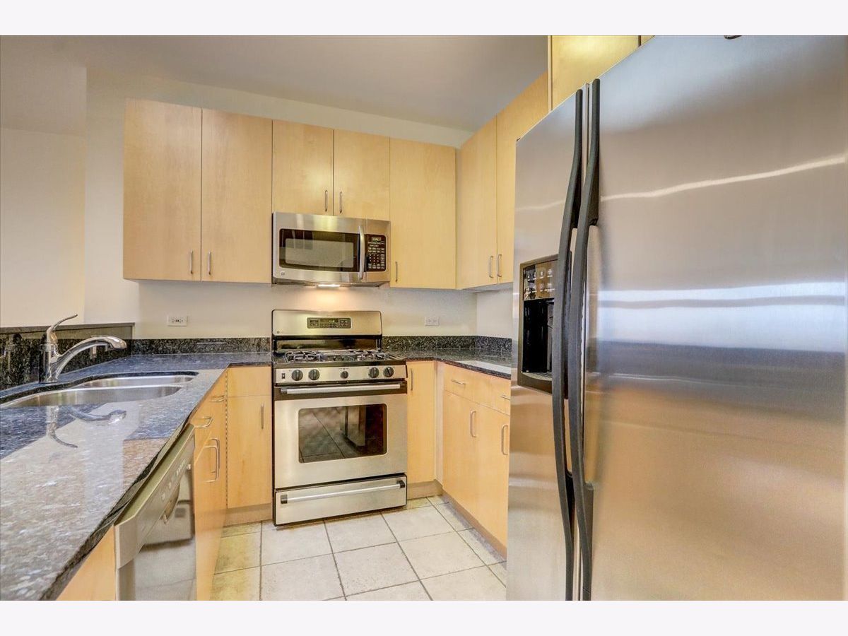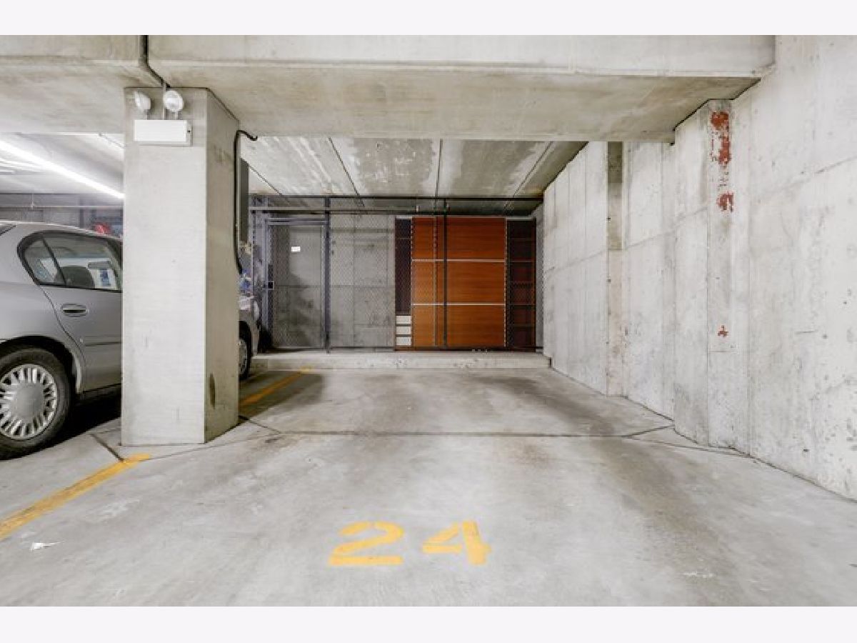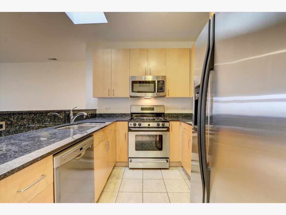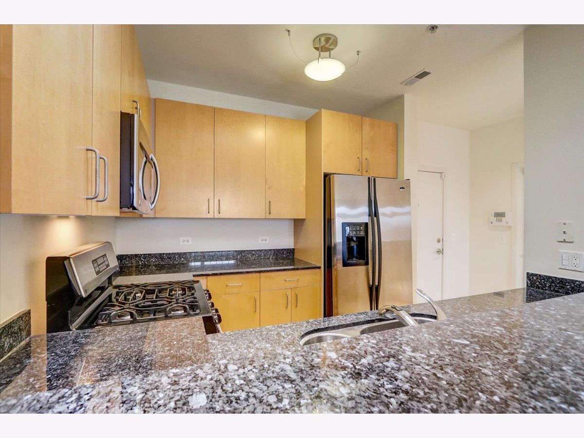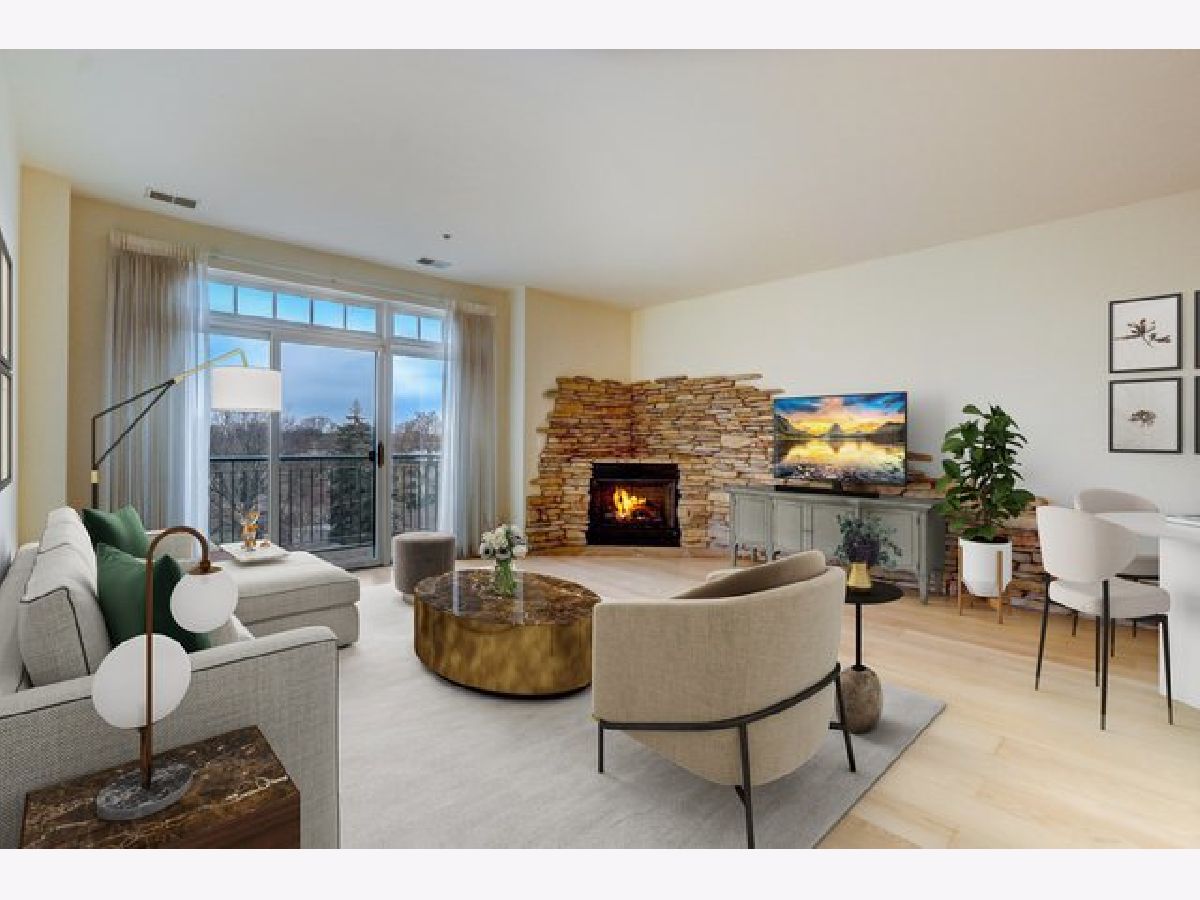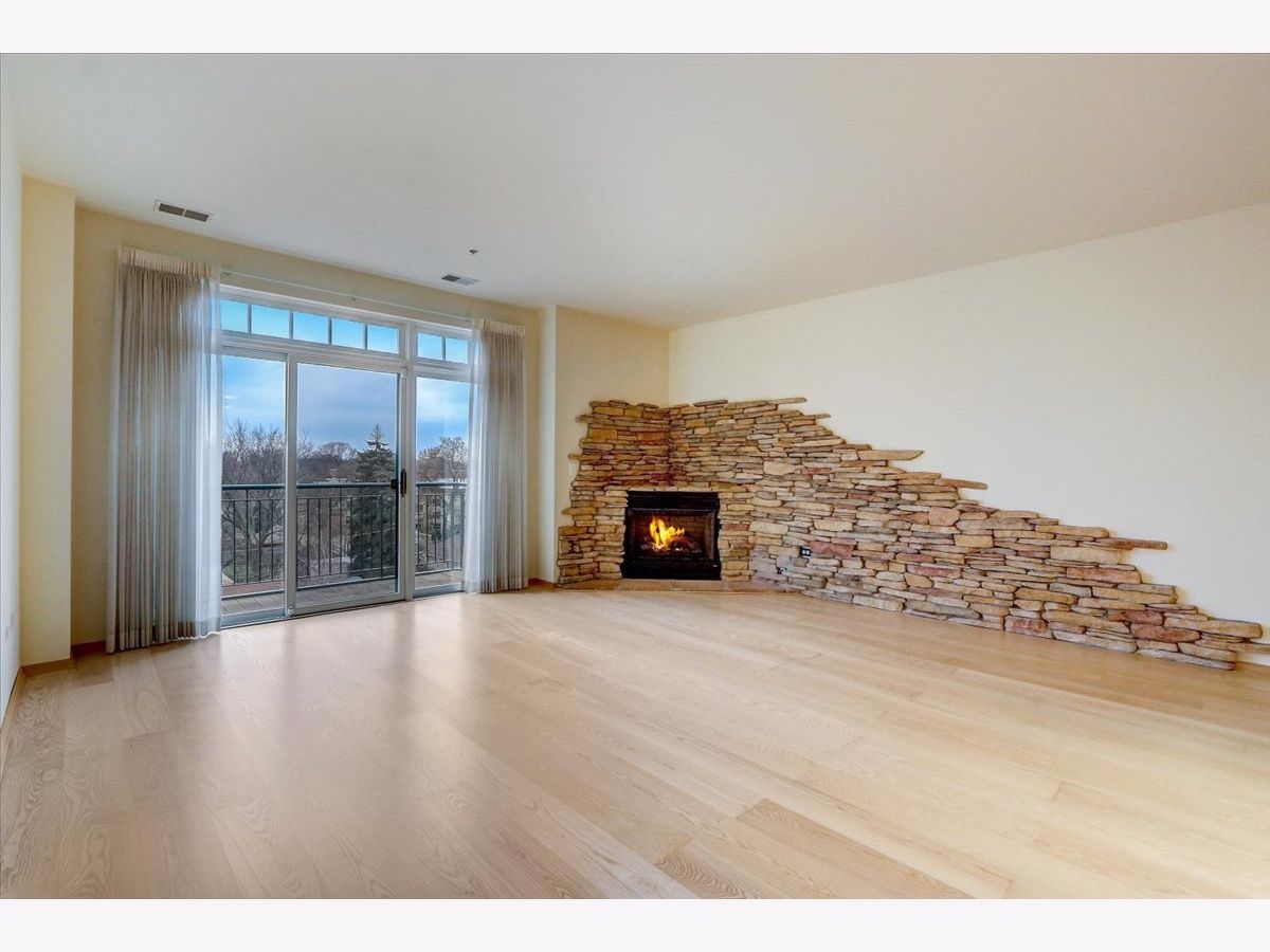 Welcome to The Mews. Located in the heart of charming downtown Oak Park, this well-managed boutique, elevator building just steps away from a variety of retail, restaurants, coffee, ice cream shops, beautiful Scoville Park and the Green line. This unit's main entrance leads you into the open, airy kitchen with a breakfast bar featuring granite countertops, along with light-filled dining and living areas. The stone gas fireplace adds a cozy feel to this generous open plan. Sliding glass doors off of the living area lead to a private, balcony, perfect for grilling or relaxing outside. Your balcony provides views of the beautifully landscaped common area with pergola and grill. A large primary bedroom with a walk-in closet and ensuite bathroom also overlooks the courtyard. The second generous bedroom is located just across the hall from the central bath. In-unit laundry and 2 indoor heated parking spots plus storage are just a few more pluses! Easy guest parking.