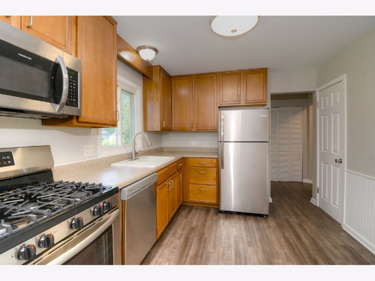 Single level living in a perfect location! This adorable home boasts 3 bedrooms and 2 full baths! Home has been well maintained with fresh paint throughout, brand new kitchen appliances, new furnace & A/C in 2021, water heater 2019, washer & dryer 2014, new roof 2010, new windows 2007 and upgrades made to the electrical & plumbing too! The 2.5 car garage has room for 2 large cars plus room for all your bikes, ATVs, motorcycles, etc. Hardwood floors are features throughout most of this home. The master suite offers a private bath and tons of closet space too! The newly landscaped yard is mostly fenced and ready for you to enjoy. Great location close to expressways, Woodfield Mall & highly rated schools! Taxes do no not reflect any exemptions.