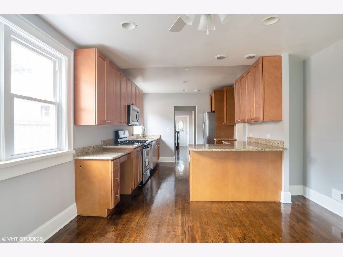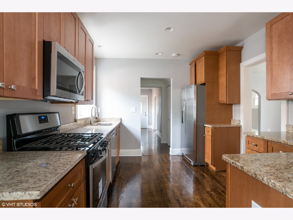 Completely remodeled brick home in 2019 with central AC and air forced heating system. All appliances, AC, Furnace, Water Heater, Washer and Dryer were installed in 2019. All windows were replaced and refinished hardwood floors throughout of the house. Master bathroom, full bathroom on second floor and basement were newly built. Lovely private great room on the second floor of the garage with AC and heating. Desired location and nice neighborhood. Highwood house price but Highland Park High School. Walking distance to elementary school, metra etc.
