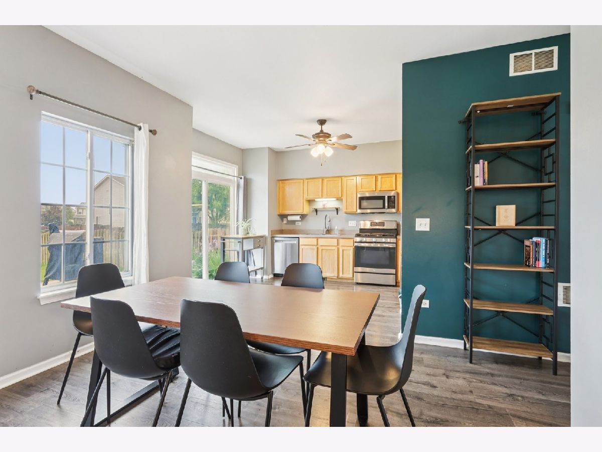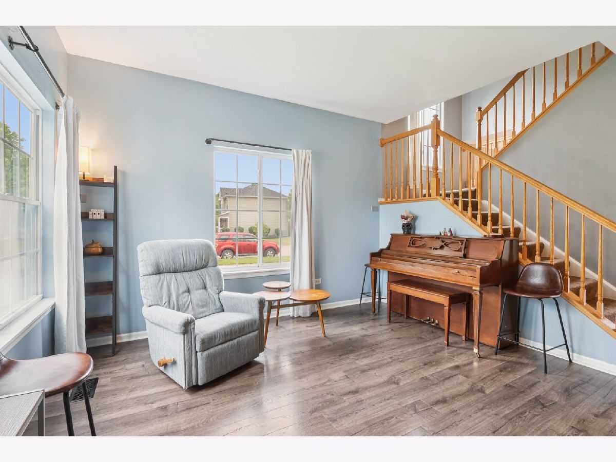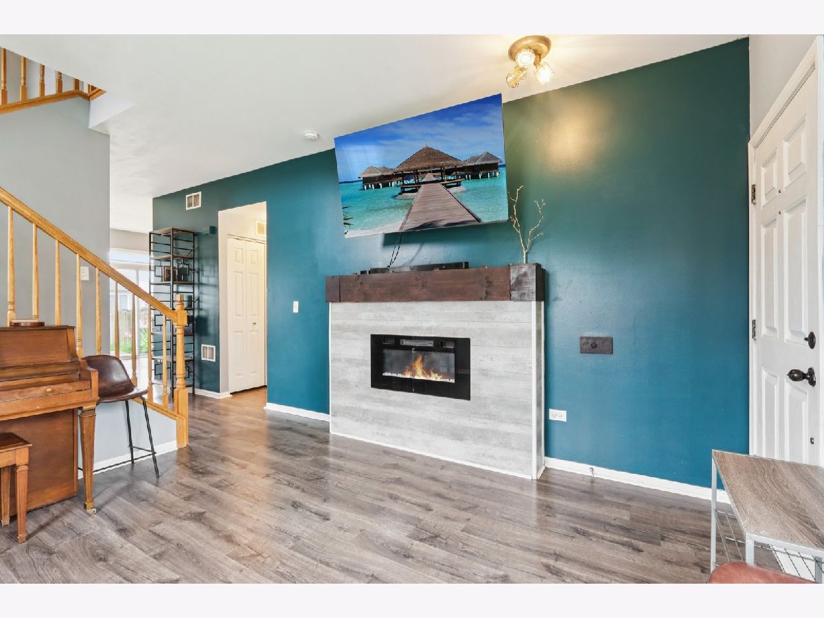 Charming 3 Bed / 1.5 Bath Duplex on a Corner Lot in Minooka! Step inside to beautifully updated wood laminate flooring on the main level (2021), where a cozy living room awaits with an electric fireplace and stylish storage mantle (2022). Enjoy an open-concept layout featuring a spacious family room, dining area, and modern kitchen with stainless steel appliances NEW in 2023-2024. A sliding glass door leads to a fully fenced backyard-perfect for entertaining-with a patio and firepit (fence new in 2020). The main floor also includes a convenient powder room and access to the attached 1-car garage. Upstairs, the primary bedroom boasts vaulted ceilings, a walk-in closet, and direct access to the shared full bath-tastefully updated in 2021. Two additional bedrooms and a second-floor laundry add everyday convenience. Updates include: washer/dryer (2020), A/C, furnace, and water heater (2022-2023). Great location-minutes from Ridge Rd shopping, dining, and entertainment-and part of the highly rated Minooka Community High School District!