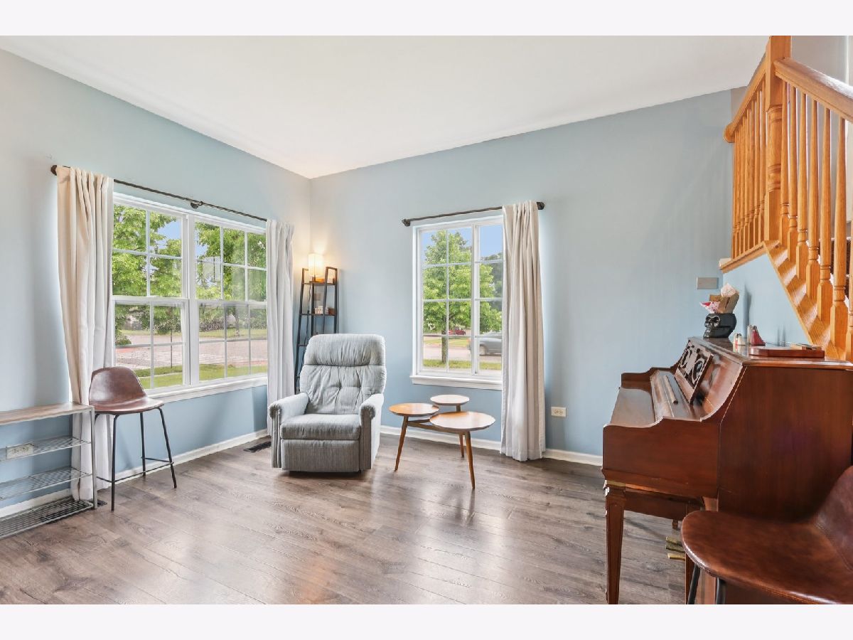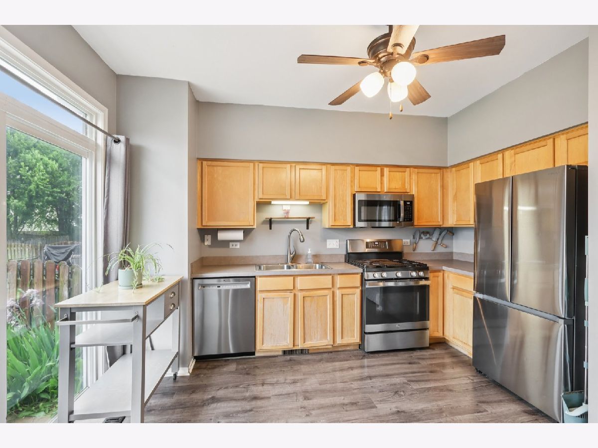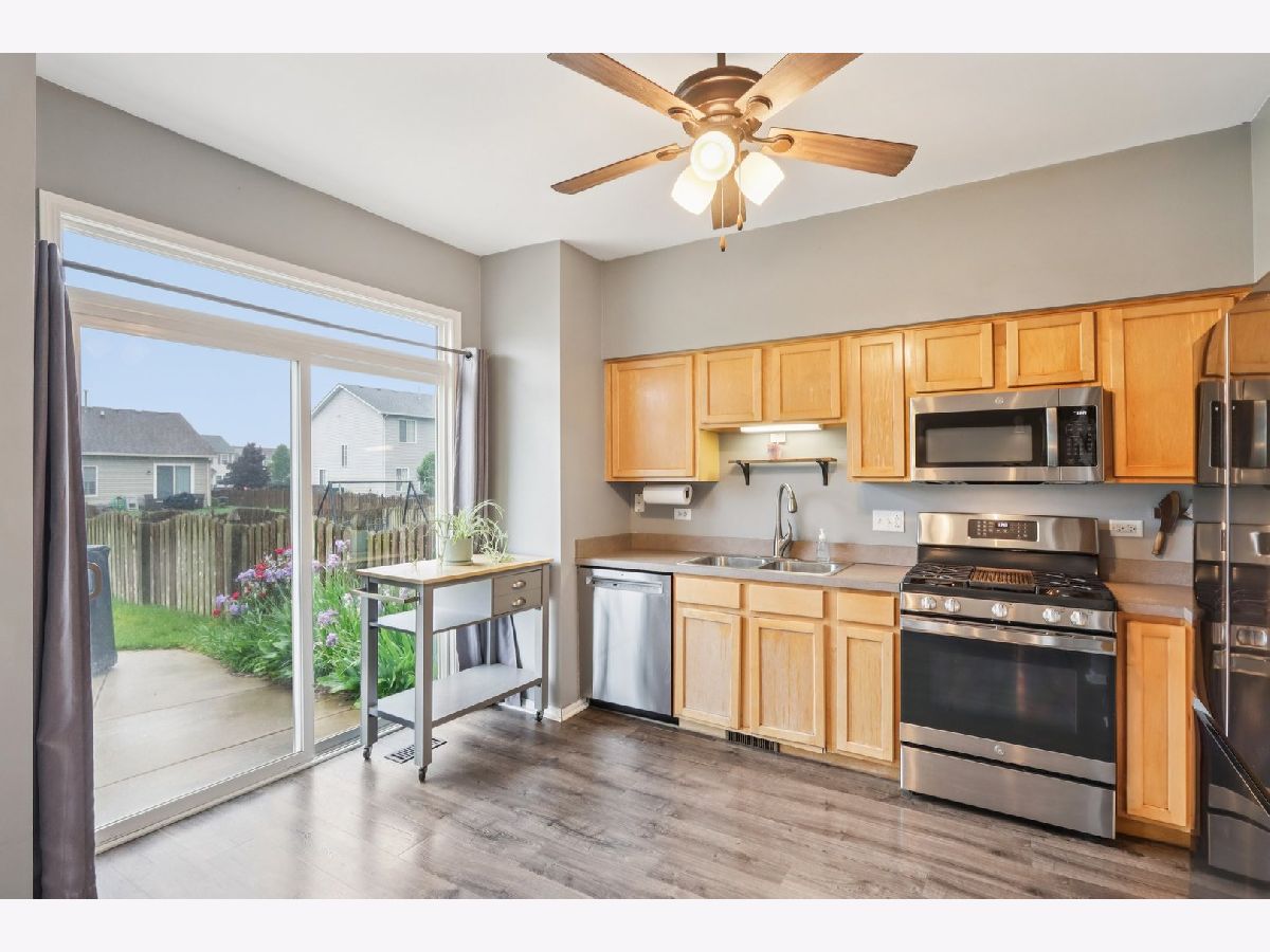 Charming 3 Bed / 1.5 Bath Duplex on a Corner Lot in Minooka! Step inside to beautifully updated wood laminate flooring on the main level (2021), where a cozy living room awaits with an electric fireplace and stylish storage mantle (2022). Enjoy an open-concept layout featuring a spacious family room, dining area, and modern kitchen with stainless steel appliances NEW in 2023-2024. A sliding glass door leads to a fully fenced backyard-perfect for entertaining-with a patio and firepit (fence new in 2020). The main floor also includes a convenient powder room and access to the attached 1-car garage. Upstairs, the primary bedroom boasts vaulted ceilings, a walk-in closet, and direct access to the shared full bath-tastefully updated in 2021. Two additional bedrooms and a second-floor laundry add everyday convenience. Updates include: washer/dryer (2020), A/C, furnace, and water heater (2022-2023). Great location-minutes from Ridge Rd shopping, dining, and entertainment-and part of the highly rated Minooka Community High School District!
