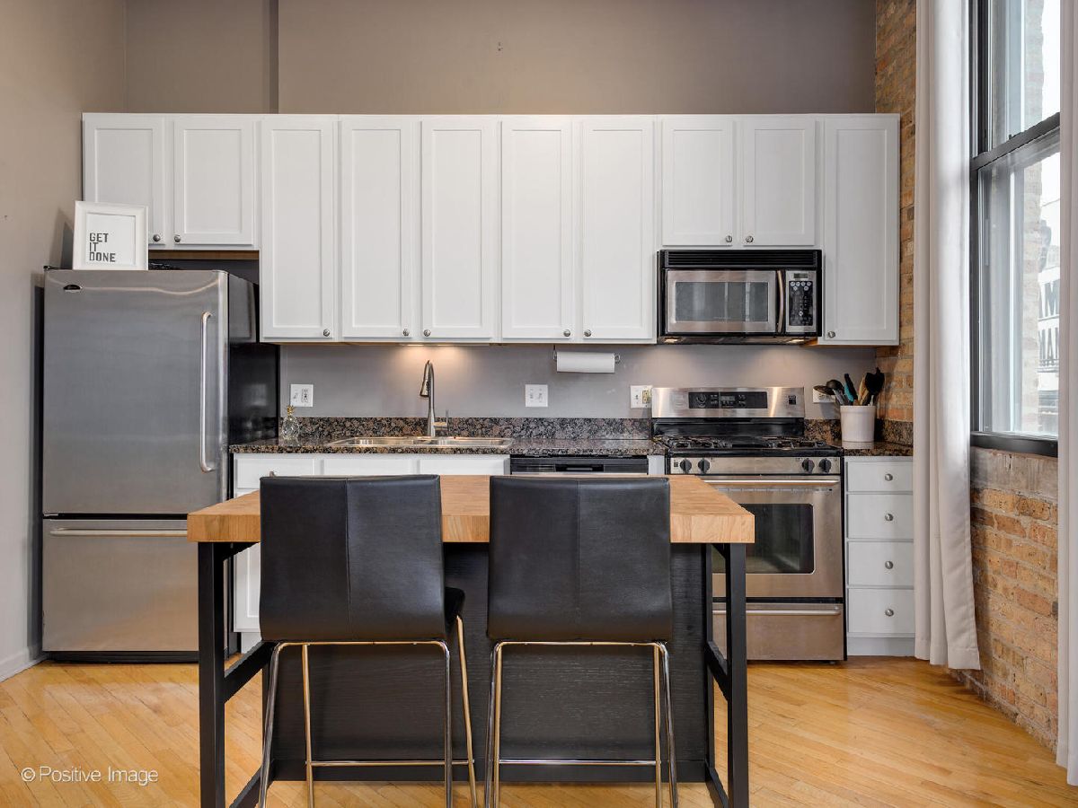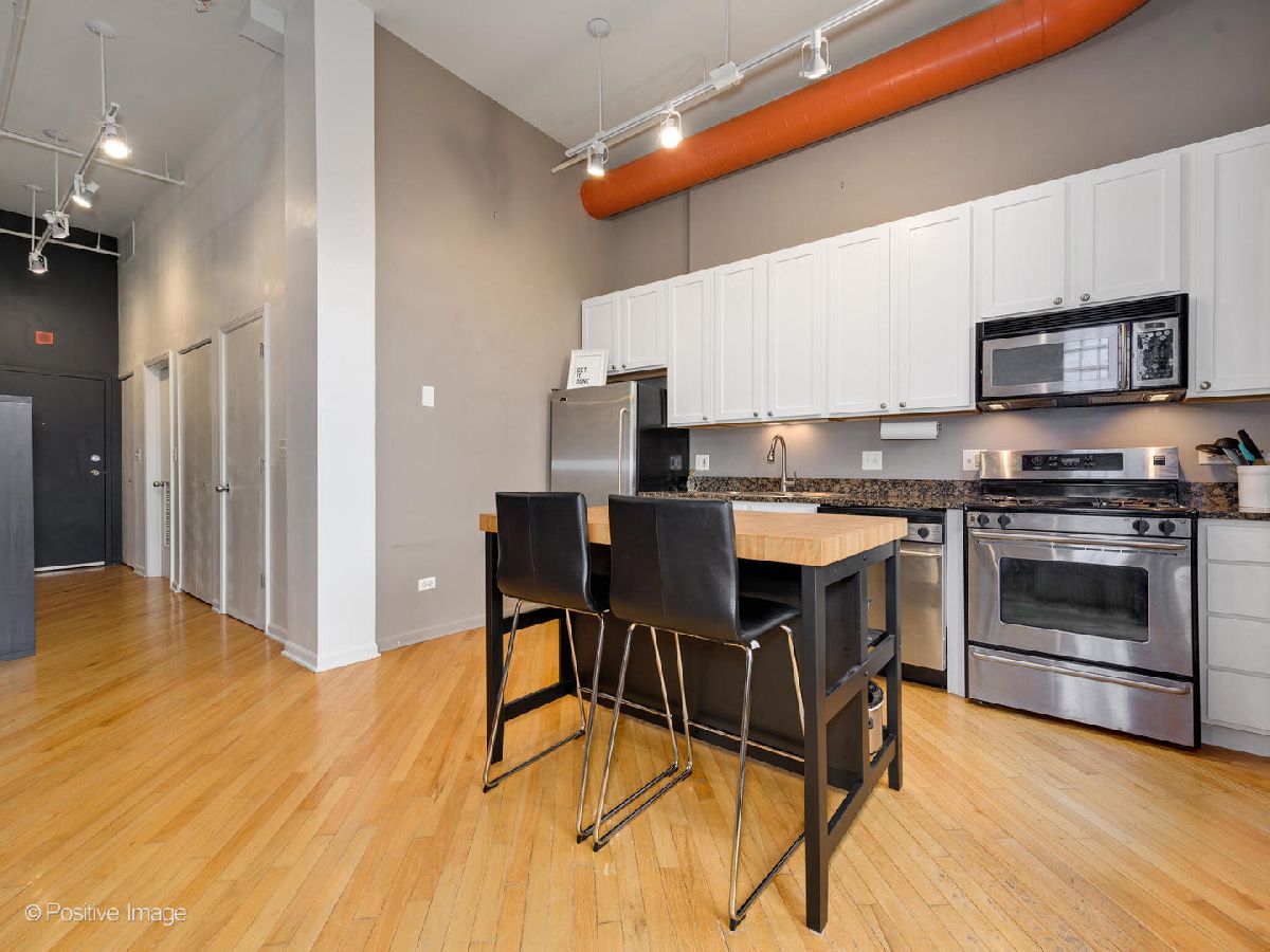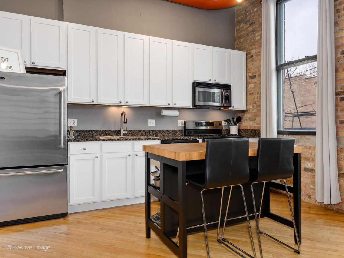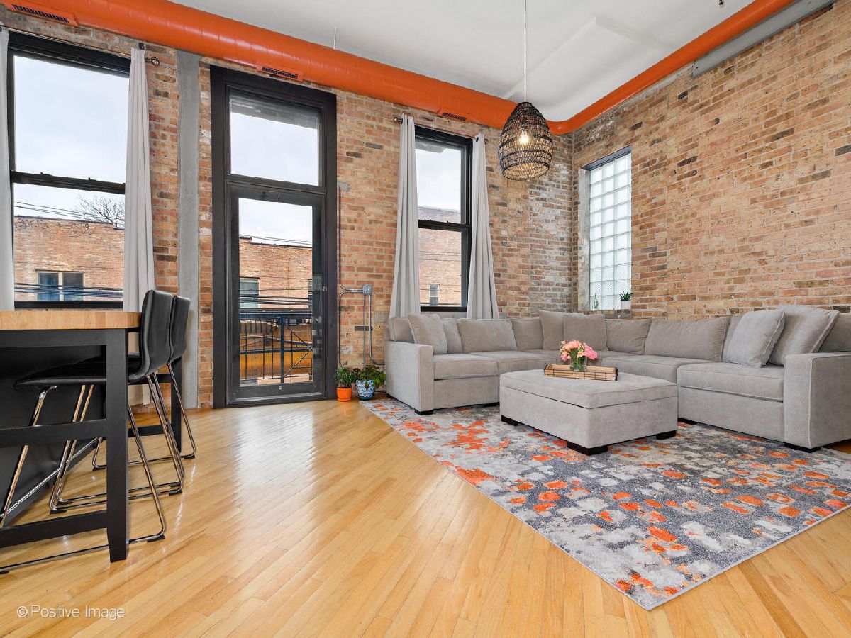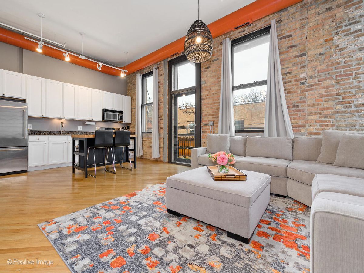 Loft living at its finest! Tons of character in this 1 bed / 1 bath at Indigo Lofts in prime Wicker Park location. Soaring 12 foot ceilings, washer/dryer IN UNIT & a balcony! Lofted walls along exposed brick & ductwork for an industrial feel, with tons of light pouring in from the southwest exposure. Double soundproof windows installed in 2018 (extremely quiet unit)! Hardwood floors throughout, light & bright kitchen w/ granite, gas fireplace in living room & four closets! Additional storage unit. Pet-friendly, elevator building just minutes away from the Damen Blue Line and the expressway.