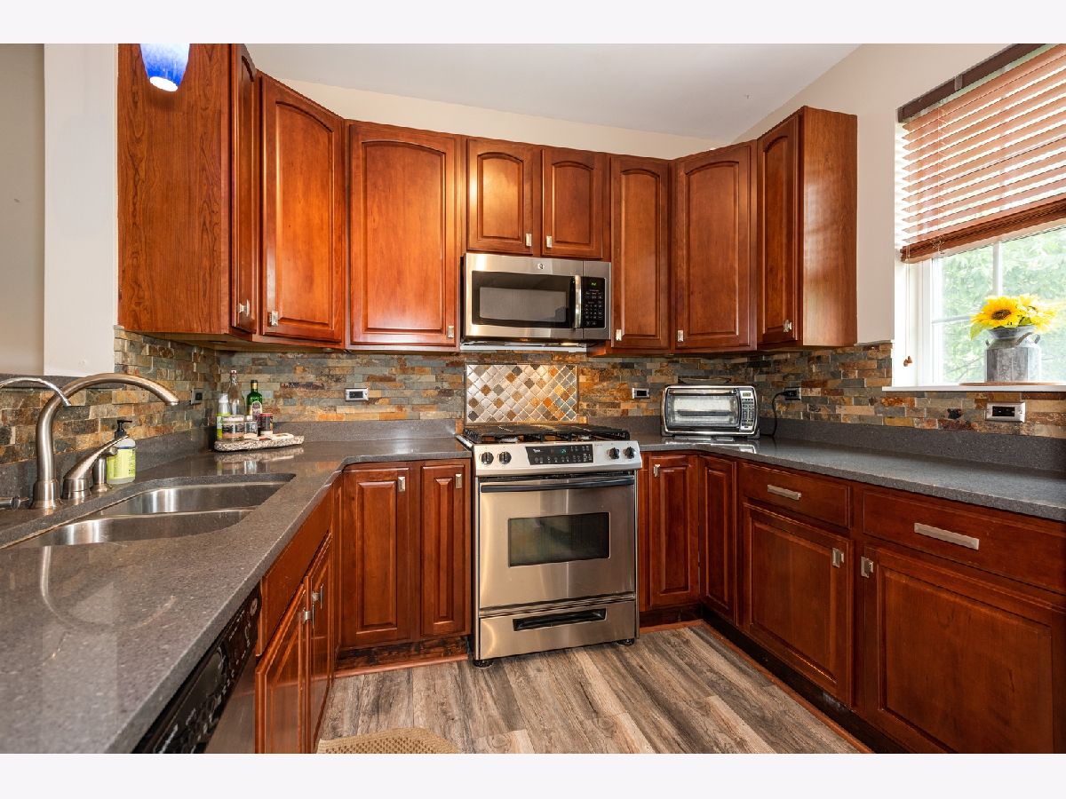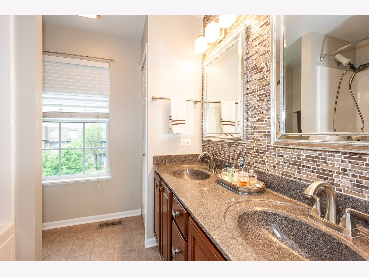 Stunning 3 bedroom, 2.1 bathroom town home nestled in a very private and quiet community with views of wetlands to the rear. Premium end unit with tons of windows and natural light. Home is completely upgraded, Wood Blinds, Cherry Cabinets, Quartz Counters, Custom Slate Back-splash, Stainless Steel Appliances, Hardwood flooring on main and lower level. Master & second bedroom upstairs are both en suite with beautifully updated bathrooms. Powder room located on main level. Laundry room is conveniently located on the second floor. English basement can be third bedroom, office or bonus family den. NEST thermostat and smoke detectors. Grill out on the long balcony overlooking wetlands & trees. Unit is convenient to guest parking in front & back. New Epoxy flooring in attached 2 car garage a plus! Excellent location, close to 355, I88 & 294, Oak Brook and Yorktown shopping, schools and other amenities. A MUST SEE!!!!