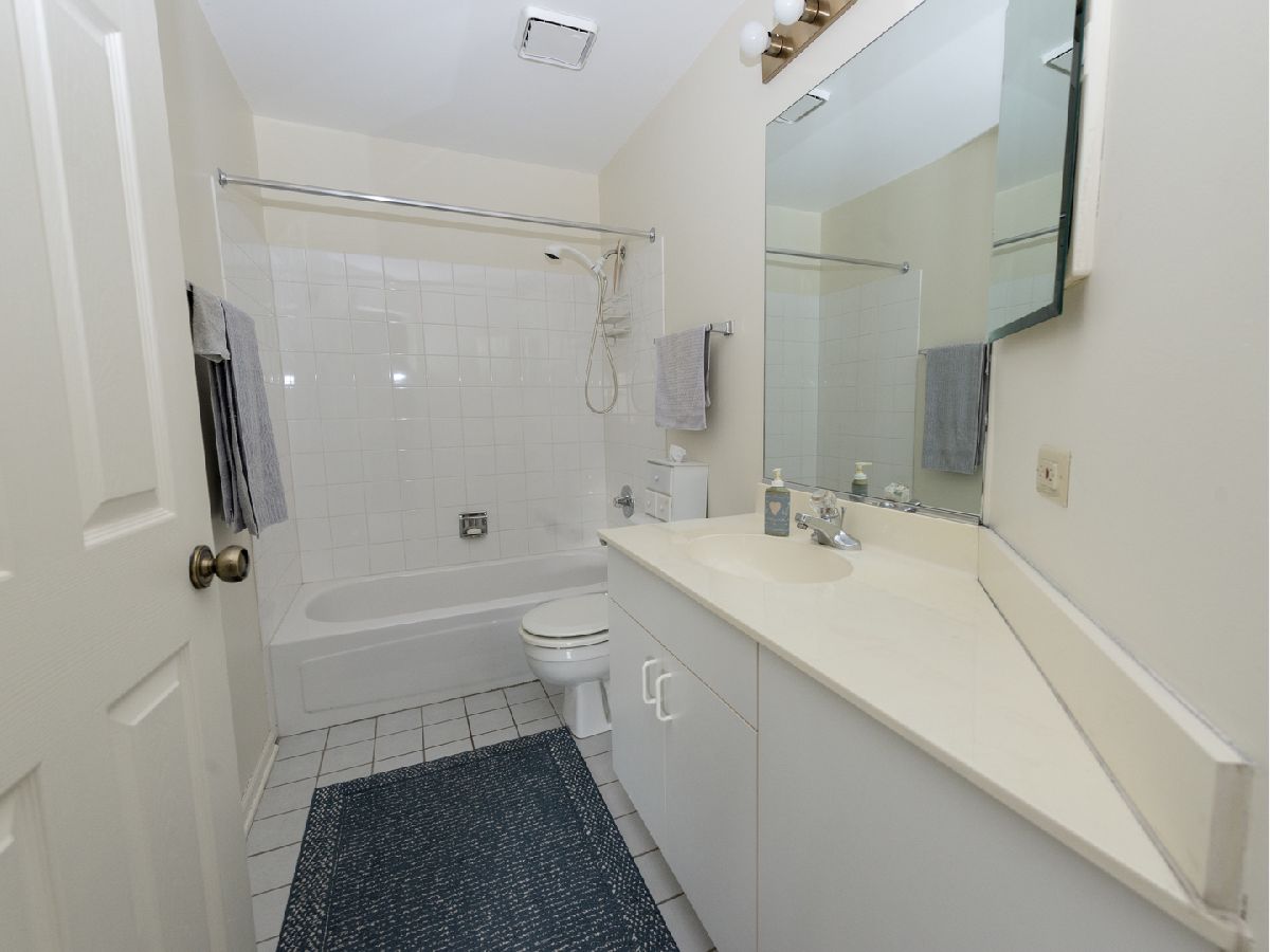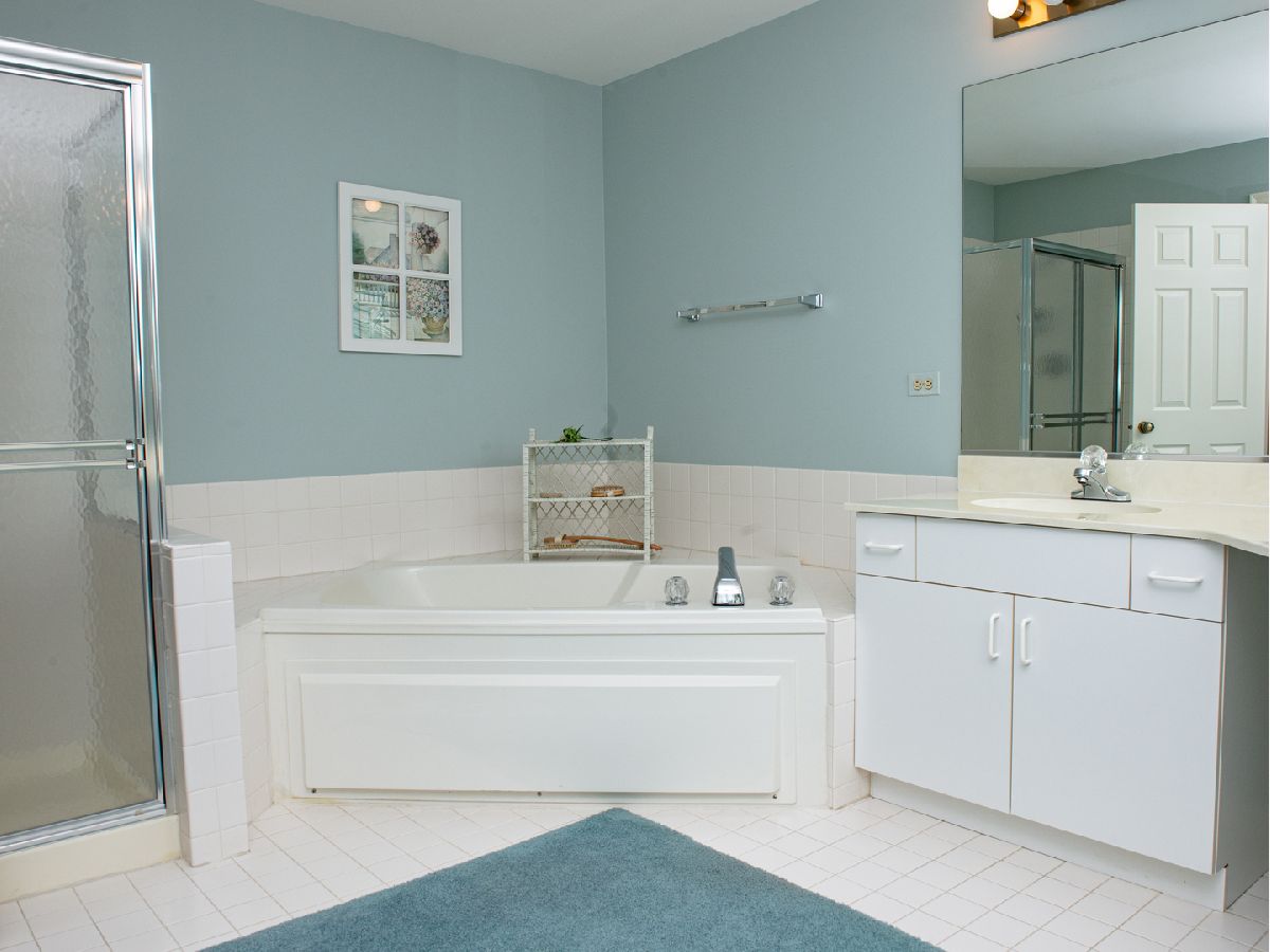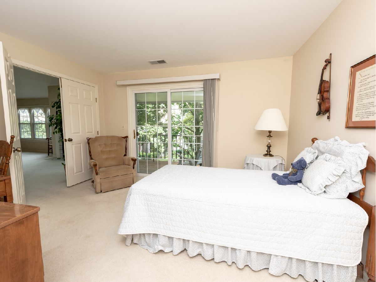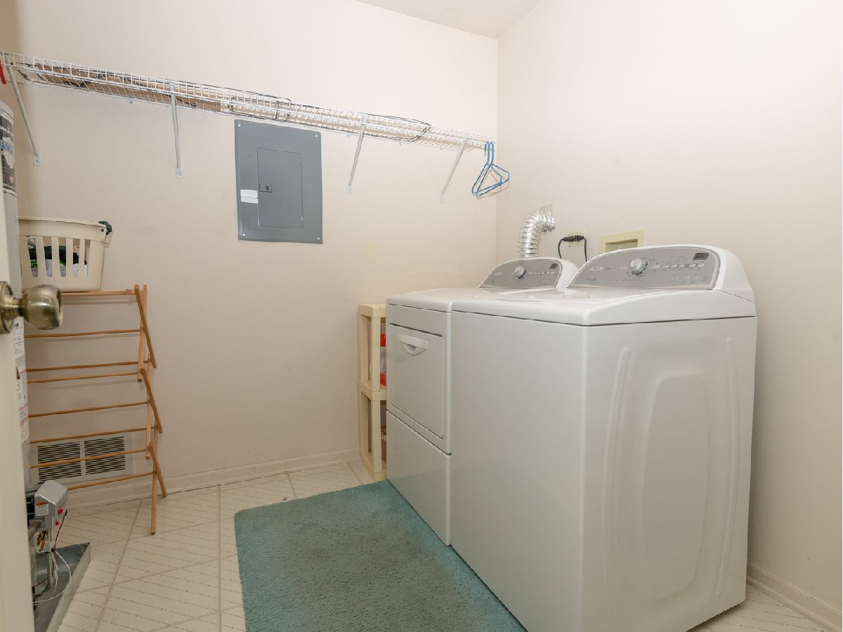 So much space in this top-floor, 3-bedroom unit! Skylights on the vaulted ceiling allow for loads of natural light. Eat-in kitchen with spacious pantry flows into the dining room. The living room features a fireplace and access to the balcony overlooking manicured grounds and walking path. The primary bedroom has two generous closets and en-suite bath with dual vanities and separate shower and jacuzzi tub. Additional full bath in the hallway with tub and shower. Balcony access in the third bedroom. Separate laundry room with full-size washer and dryer. Neutral carpeting throughout. Well-managed association, clubhouse, and outdoor pool. Fabulous location with close proximity to both Mt. Prospect and Prospect Heights train stations, restaurants, and shopping.