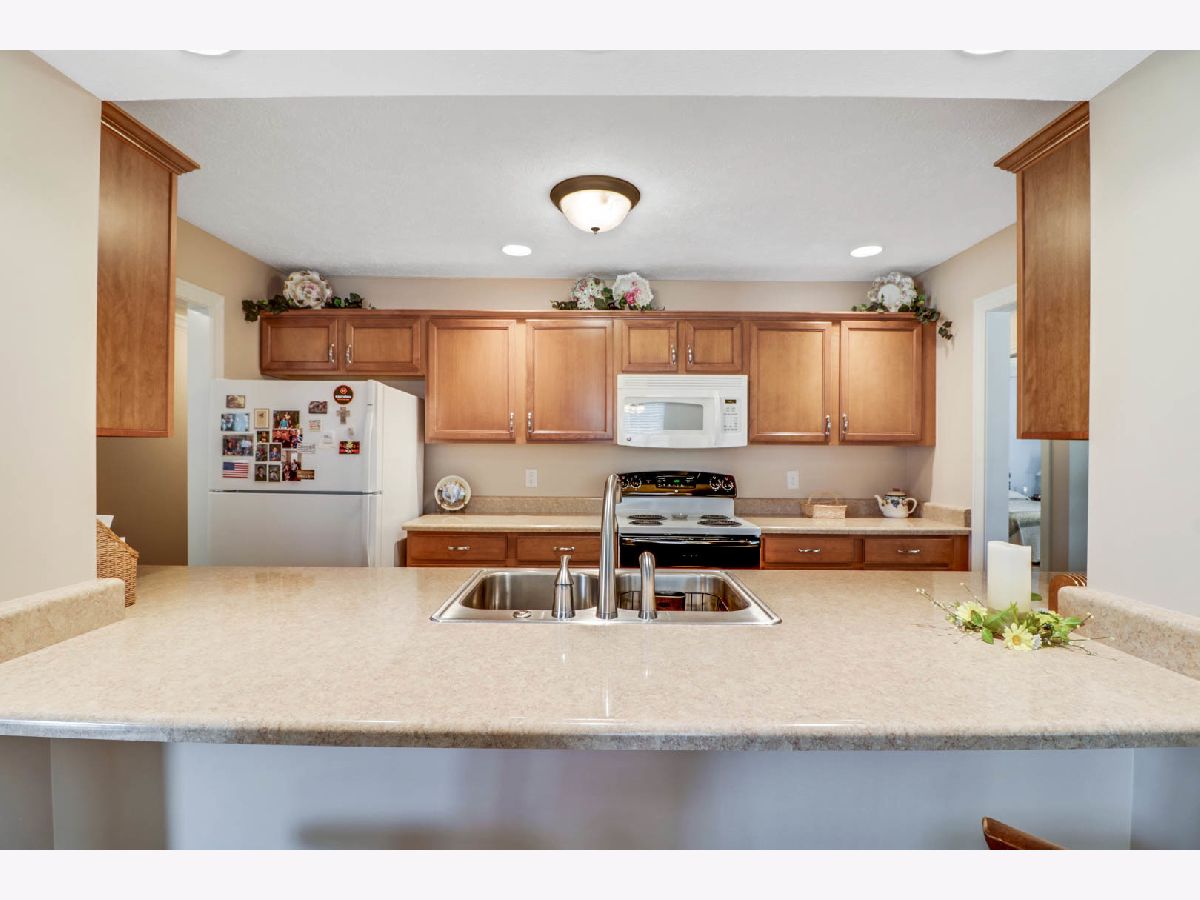 Welcome home to Evergreen Villas where comfort meets convenience. Well-maintained 2 bedroom, 2 bath condo. Updates include water heater 2017, washer/dryer 2018, carpet 2014, paint 2014, garage door and epoxy garage floor 2016. Association fees include lawn care, snow removal, sprinkler system, garbage/recycling.