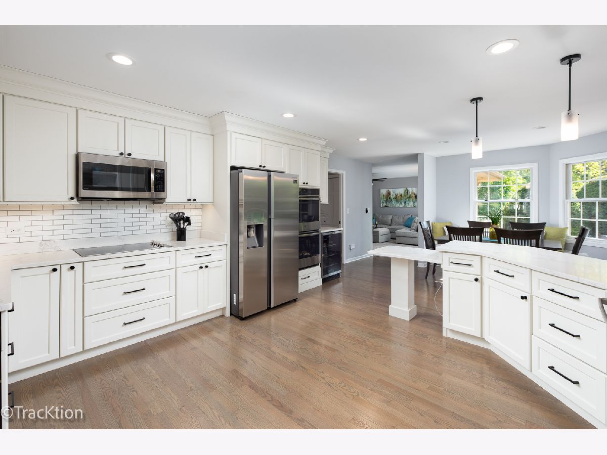 Introducing your dream home perfectly situated on a tree lined street in a prime Hillcrest location. This meticulously renovated home boasts a fully remodeled first floor featuring a staircase rebuilt to perfection bathed in natural light from the numerous large windows that surround it. The spacious chefs kitchen serves as the heart of the home exuding a modern and inviting atmosphere. Adorned with custom white Amish cabinets and all the bells and whistles it offers soft close cabinets, hidden spice rack, all updated SS appliances, quartz countertops, technology drawer, custom bench seating, large butlers pantry, refinished warm grey hardwood floors and lots of windows allowing plenty of sunshine. The large spacious family room and living room are thoughtfully designed with built-in features, electronic cabinets, gas fireplace, new carpeting and lighting all creating a cozy environment perfect for entertaining or relaxation. Storage is plentiful in the long hallway off the kitchen boasting a double closet storage area and a cute mud room with shelving and cubbies. Open to the mudroom is the quaint 4th bedroom or office lined with custom shelving and a coat rack. The second level presents 3 large bedrooms including a large master suite with a walk-in closet and master bath while the 2nd bedroom is huge 17x15 offering an ample walk-in closet. There is 1625 square feet in this enormous basement currently partially finished with a play area and bedroom but is waiting for your finishes. Enjoy the great outdoors for lunch or dinner on the paver brick patio or games and fun in the lush backyard. A perfect location just steps from Hillcrest school and park and a short walk to the train and vibrant downtown filled with restaurants, shops, festivals and live music! This home offers the perfect blend of modern design, comfort and style!