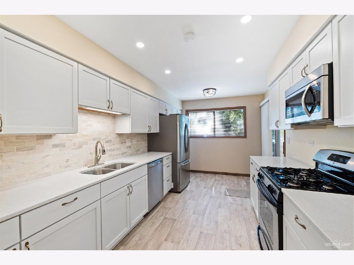 Exceptionally Styled Condo in Elgin! Located in a delightfully tranquil community only minutes from amenities, this 3BR/2BA first-floor unit dazzles with gorgeous updating throughout, mature trees, and incredibly neat landscaping. Beautifully fashioned, the luminous interior features an entertainment-ready floorplan, chic faux wood flooring, a warm neutral color scheme, and a large living room with a brick wall and sliding glass doors to the covered patio. Explore further to find a stylish kitchen featuring stainless-steel appliances, solid surface countertops, a gas range/oven, a dishwasher, a glass tile backsplash, a French door refrigerator, a built-in microwave, white cabinetry, and a dining area. Discover leisurely living in the primary bedroom, which has ample closet space and an attached en suite boasting a shower/tub combo. Brand new AC and Furnace installed in 2022. Other features: extra-deep 24' garage with storage closet, paved driveway, laundry area, near shops, dining, and schools, and much more! Come See
