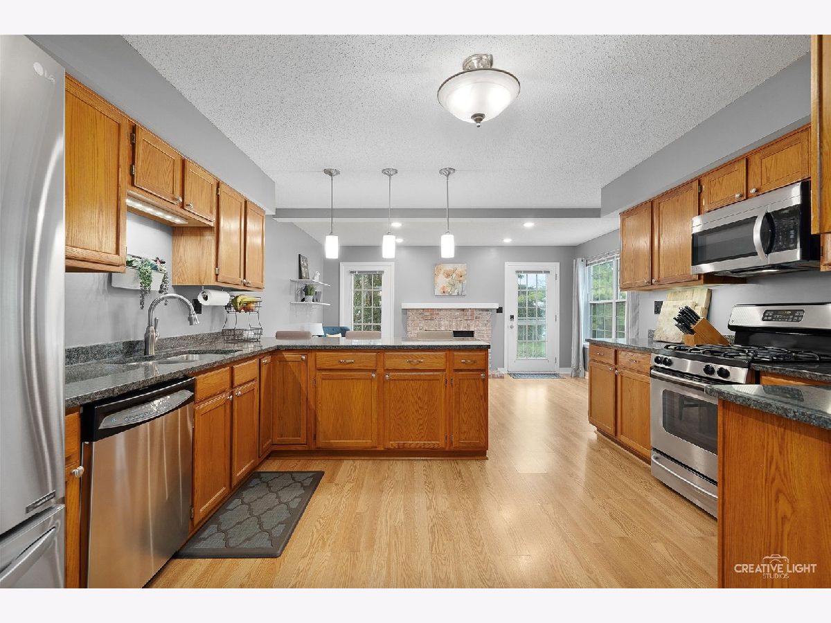 Welcome home to Batavia's Georgetown Community. As you step inside, the vaulted ceilings in the family room and wall of windows welcome you with floods of natural light. This TRUE 3 bedroom townhome features updated bathrooms, lighting, and carpet. The kitchen, with granite counters and stainless steel appliances, has an adjacent eating area with a brick front fireplace. Step outside to the patio that is set among beautiful green space. Upstairs you will find 3 bedrooms and 2 full updated baths. First floor laundry and a spacious 2 car garage complete this beautiful home. Conveniently located near Batavia high school and all Randall Rd has to offer!