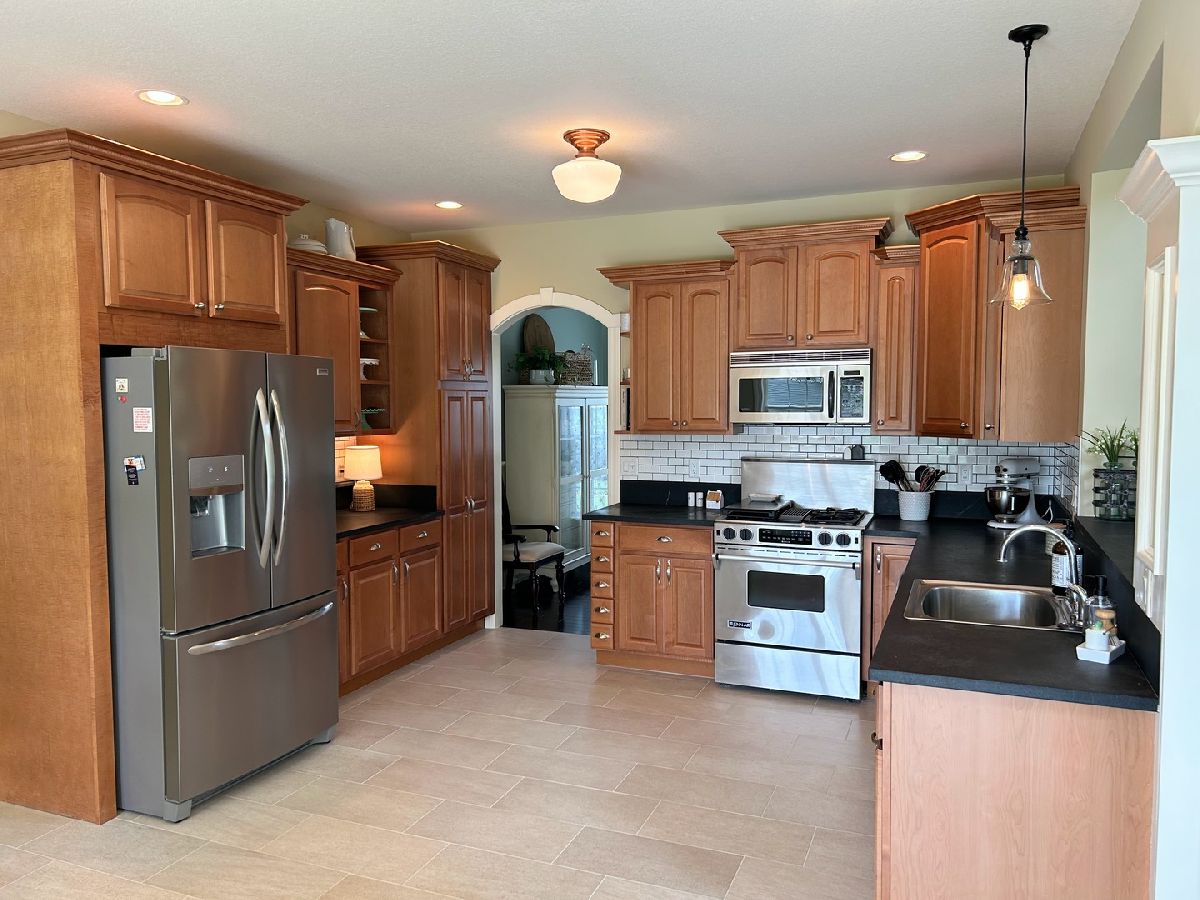 Stunning Custom Home priced to sell! You will be amazed by the beauty & quality throughout. Located in a large lot in desirable Wiltshire Estates, this home has so much to offer! The gourmet kitchen boasts maple cabinets, stainless steel appliances, new tile floor, and a lovely eating nook overlooking the spacious backyard. Family room with a wall of arched windows & high-efficiency inset wood stove, formal living room with gas log fireplace and built-in shelves, and a large dining room. The laundry room/mudroom resembles a magazine photo with custom Amish cabinets. The upstairs area offers 4 bedrooms and 2 bathrooms. The master bedroom suite has a sitting/extra room with an extensive closet/storage space. This room would also be perfect as a nursery, office, or for exercise equipment. The master bathroom was tastefully renovated in 2023. There are 2 bedrooms that also have lofts (your kids or young guests will love this!). The 4th upstairs bedroom makes a great office space. Gorgeous upgraded finishes include archways, granite, soapstone countertops, newer hardwood floors throughout the first floor, and intercom. The finished basement has a media room, a recreation room, and a hobby room with shelving and cabinets. There is also a storage area and half a bath with a roughed-in shower. A brand new high-efficiency furnace was just installed in September 2024. This home is located in a cul-de-sac, the lot is .66 acres with mature landscaping and a professionally installed 2-tier custom brick patio in 2021. Another unique feature is the garage space. The home has a 3 car attached garage AND an oversized 2 car detached garage built in 2013 with an upper loft area for extra storage. This additional garage building is perfect for boats, recreational vehicles, or a workshop! This home has plenty of space to accommodate everything and everyone! Seller related to listing Broker.