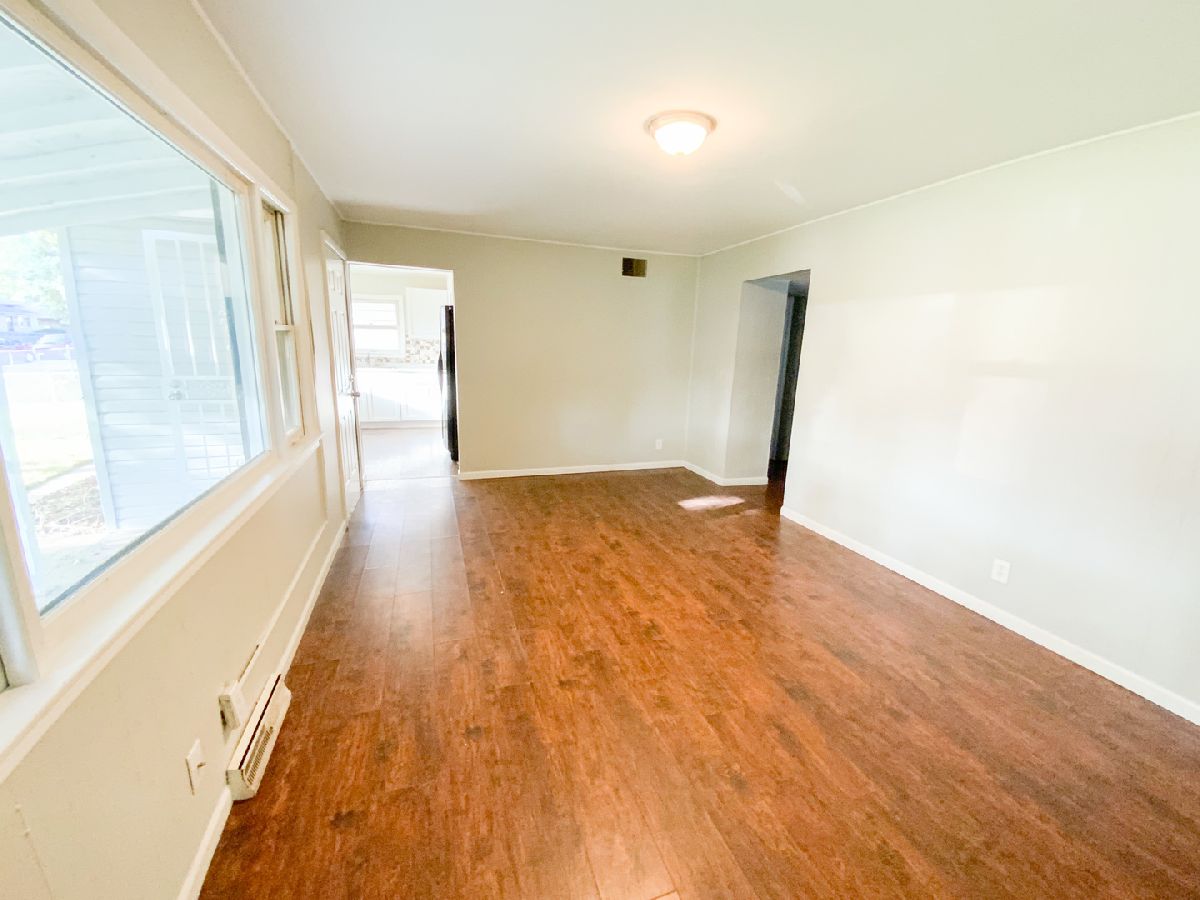 CUTE 4 bedroom Ranch home with updated floors throughout. The bathroom has a great deep soaking tub. Great sized bedrooms, laundry room, bright kitchen and lighting throughout the home. All on one level! Cozy front porch with gated front yard and private backyard with patio. Oversized 2 car garage with the potential of being a 3 car garage with space to still spare for storage! Definitely a must see!