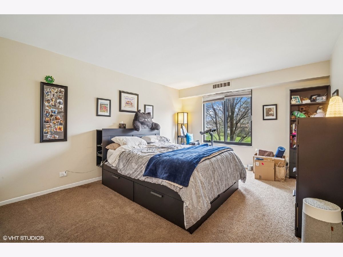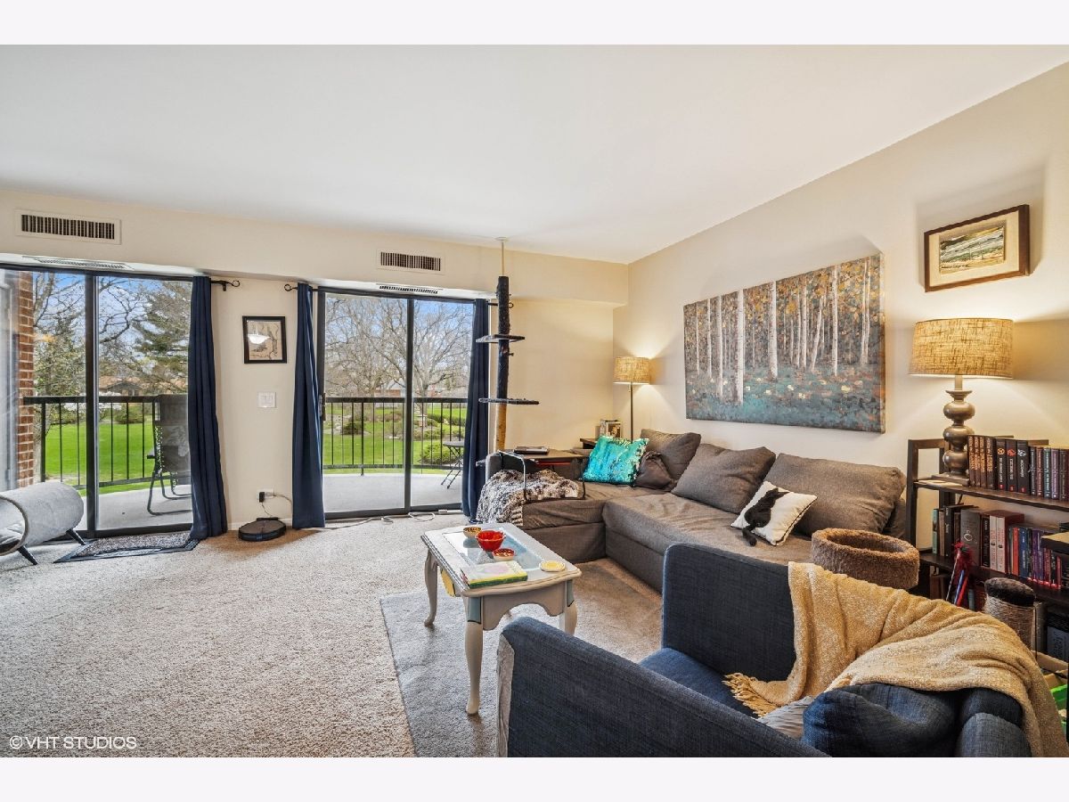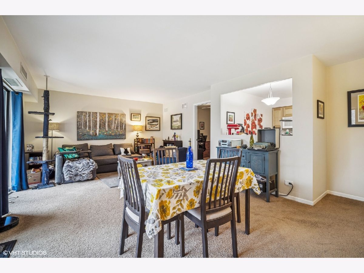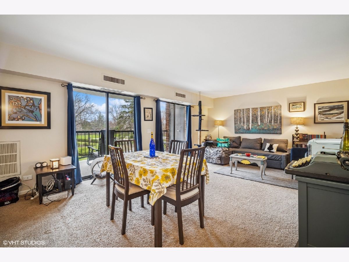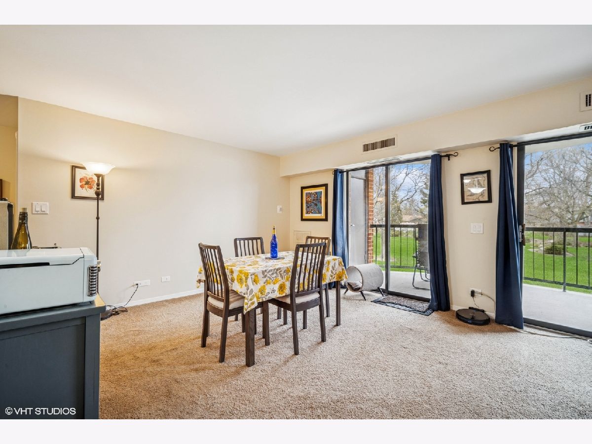 Welcome to maintenance-free living in the esteemed Dana Point community! Nestled in Arlington Heights is this 1-bedroom, plus a den and 1-bathroom condo that offers an exceptional blend of style, comfort, and convenience across 975 square feet. Step inside and be greeted by a bright, inviting space that spans the living room, dining area, and bedroom, creating a warm and inviting atmosphere. The kitchen is a delight, with a breakfast bar that is perfect for casual dining and entertaining, as it opens to the living area. Step out onto your expansive private balcony to enjoy serene, park-like views and breathtaking sunsets. Dana Point is renowned for its exceptional amenities. Enjoy Dana Point's extensive, lushly landscaped grounds, swimming pool, tennis courts & fitness center, party room, and storage area, all set within beautifully maintained grounds. This condo also includes convenient features like an elevator, on-site laundry, and central AC with electric heat. Parking is a breeze with garage access, space 14A included, plus ample on-site parking and unassigned parking. For the active and social, the community offers a gym, sauna, and communal tennis court. Additional conveniences include a bike room. Ideally located just minutes from downtown Arlington Heights, this condo is perfect for those seeking modern living with unbeatable convenience. Embrace a lifestyle of comfort and ease in a community that truly has it all.