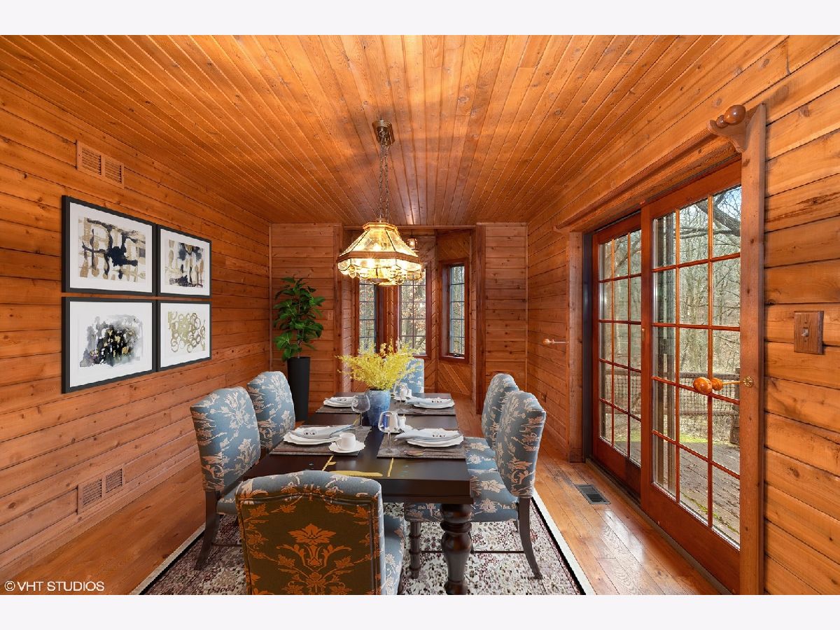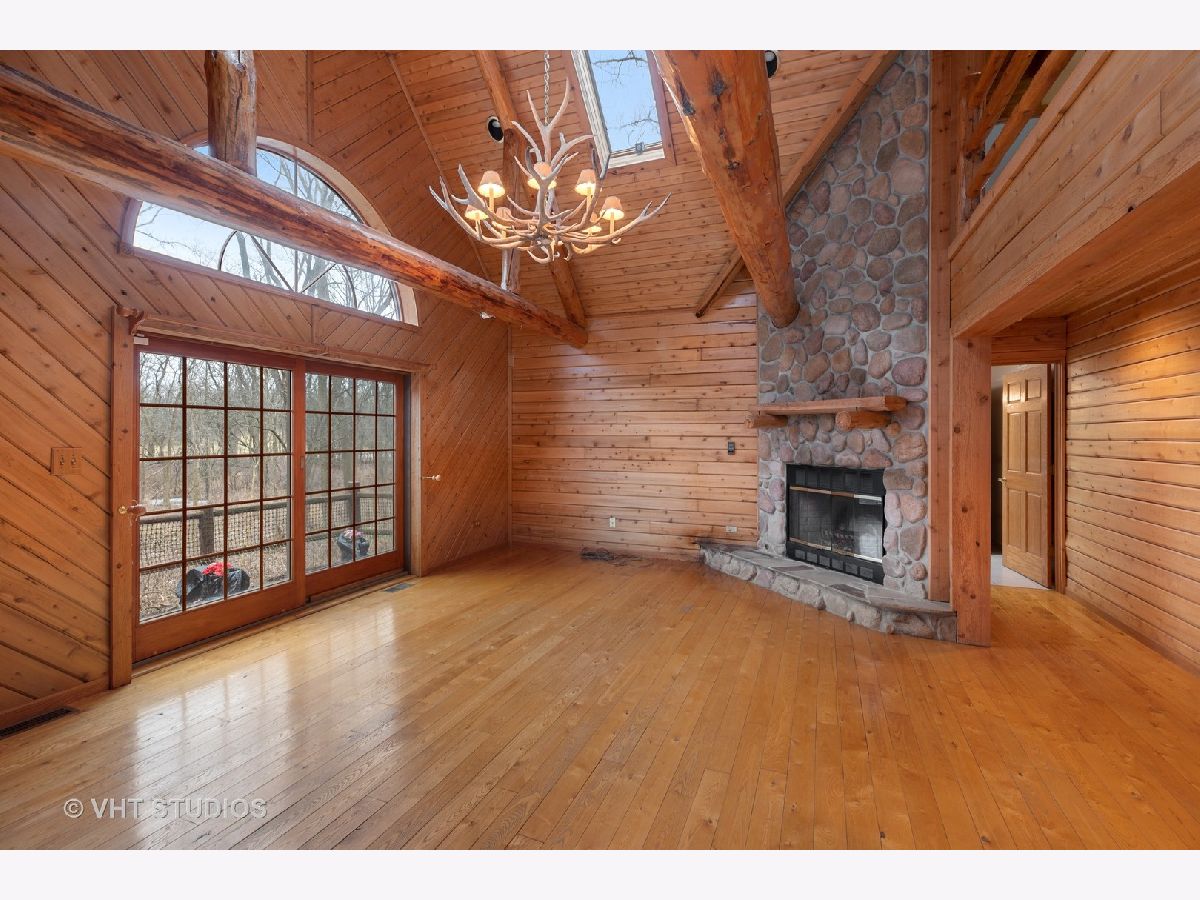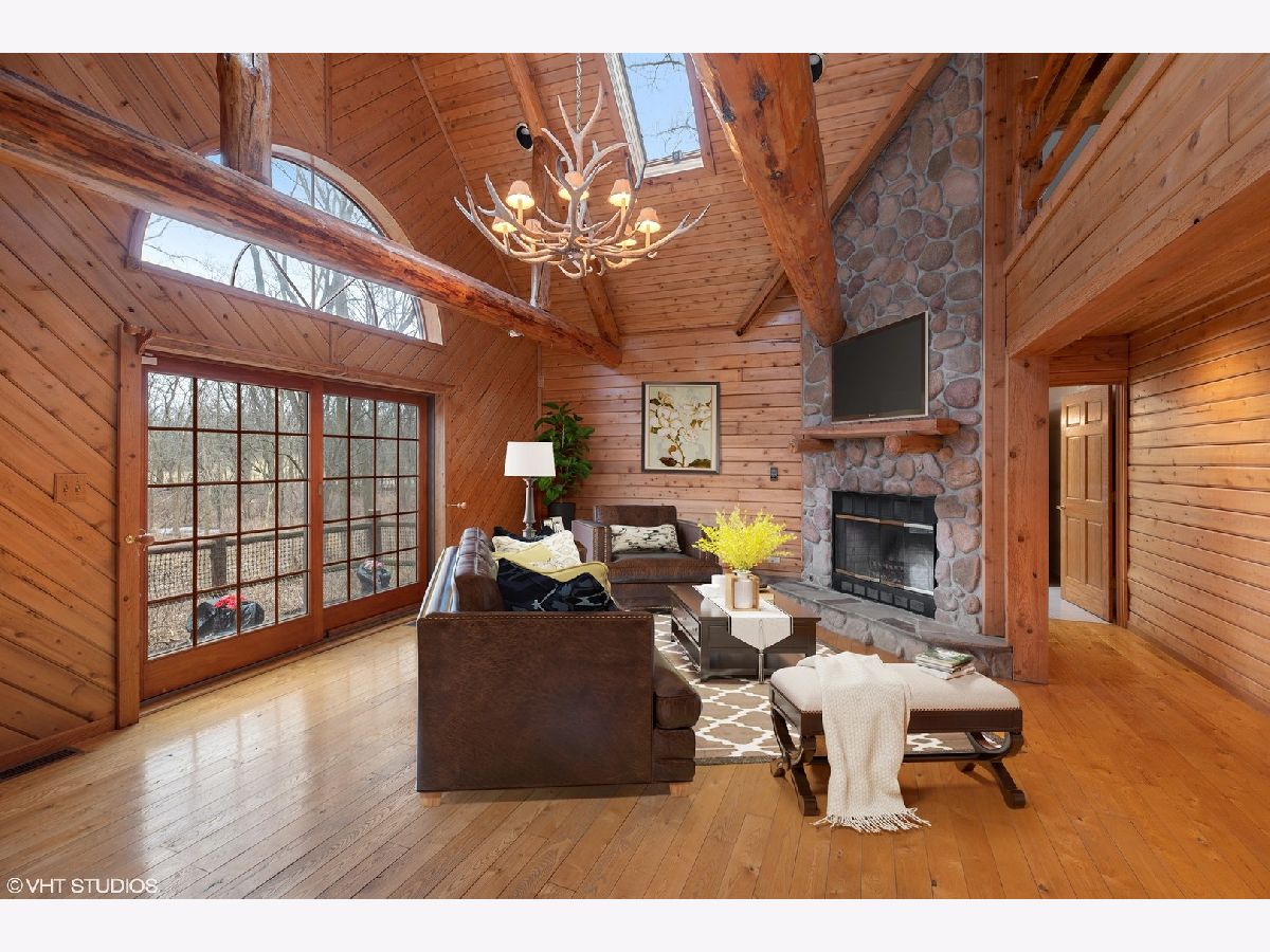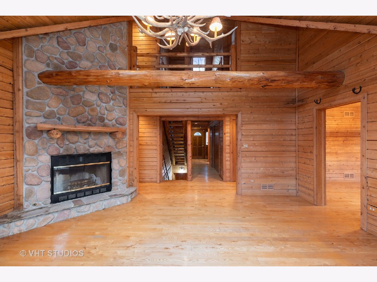 Lovely spacious log home on one acre with a fully finished walk out basement. Close to all transportation, close to golf, nature preserve, Governors State University and its Performing Arts Center. So much to offer! Three complete floors of finished rustic living with a full walk out basement and wet bar! Large eat in Kitchen and separate dining room open to the large Great Room with stone fireplace overlooking the outdoor space. Tall ceilings and skylights along with great views give you that peace and nature when you come home. To complete the outdoor rustic living feel there is a 55 foot wrap around porch. So much to see and so much to love! Mature trees, natural setting, quiet neighborhood so close to everything!