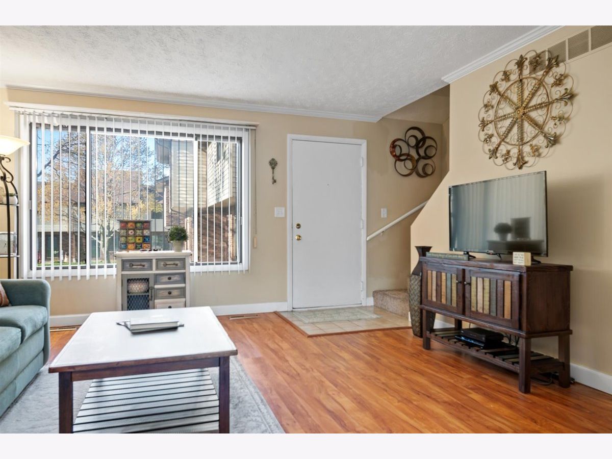 This 2 story condo is nestled on the south side of Vernon Crossing complex with covered parking close by. This unit has an open floor plan with convenient 1/2 bath on the first floor, and large window facing the courtyard for beautiful views of the in-ground pool. Finished sq ft in the basement for additional living can be used for home office, extra common area or workout room. The large master includes a walk-in closet, on-suite full bath with access to the hall for bedrooms 2 and 3. The central courtyard includes a private swimming pool. Association fee includes water, garbage removal, exterior maintenance. The complex is conveniently located near Constitution trail, shopping and restaurants.