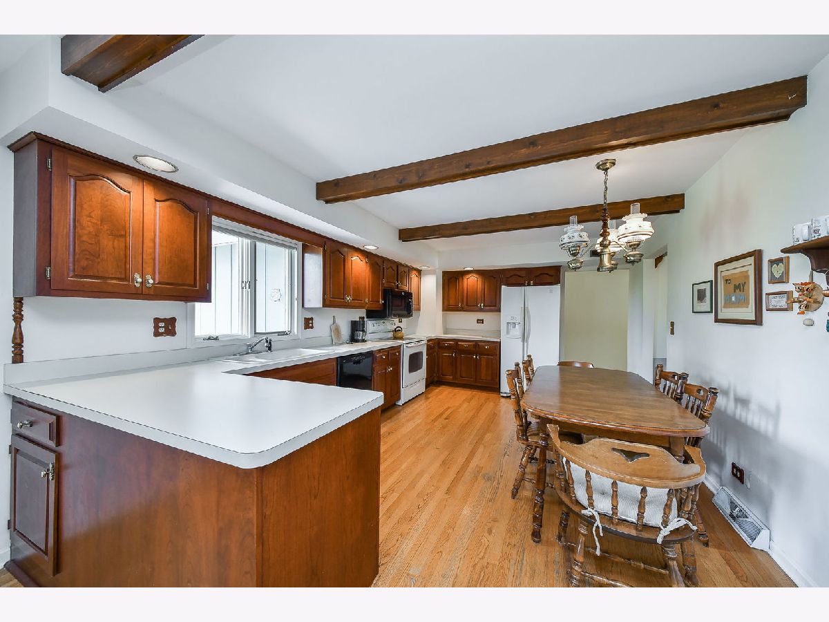 Situated in one of the most sought-after neighborhoods in Naperville's acclaimed District 203 and just moments from the vibrant energy of downtown, this charming ranch home offers sweeping views of the Cress Creek Golf Course and a lifestyle of comfort, convenience, and connection. Lovingly maintained by its longtime owners, it combines timeless character with modern updates in an inviting, functional layout. The welcoming front porch is the perfect spot to sit and catch up with neighbors or unwind at the end of the day. Step inside to a spacious living room that easily accommodates gatherings of family and friends, flowing gracefully into a formal dining room highlighted by a cheerful bay window-a lovely setting for holiday celebrations and dinner parties alike. The oversized kitchen, complete with hardwood flooring, opens seamlessly into the family room, creating an ideal space for entertaining on a larger scale. Updated cabinetry provides ample storage, while features like a beamed ceiling, recessed lighting, a double sink, electric stove, and microwave elevate both style and utility. A sliding glass door leads to a cement patio and a beautifully landscaped backyard, where mature trees and open views of the golf course offer a sense of serenity and space. The family room centers around a cozy brick fireplace, complete with gas logs and a gas starter-perfect for gathering on chilly winter evenings. Down the back hall, you'll find direct access to an oversized basement with exceptional potential, previously used as a home office, and ready to adapt to your needs-whether recreation, work, or storage. The primary suite offers a peaceful retreat with carpeting, a walk-in closet, and an updated en suite bath featuring a walk-in shower. Two additional bedrooms are also carpeted, with one enjoying prime views of the golf course. The hall bath is tastefully updated and includes a tub-shower combo and a skylight that fills the space with natural light. Completing the home is a two-car garage with additional storage space, providing practical convenience to match the home's thoughtful design. This is a rare opportunity to own a ranch-style residence in a golf course community, perfectly positioned near everything that makes Naperville so desirable-top-rated schools, parks, shops, and dining.