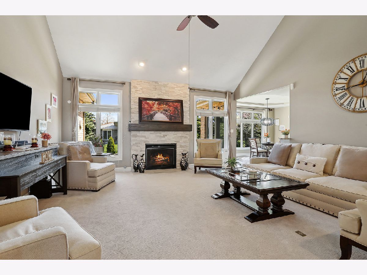 ****MULTIPLE OFFERS RECEIVED & SELLERS WILL REVIEW ALL OFFERS RECEIVED BY 12 NOON ON SUN 4/21/24 AND CHOOSE ONE****BEAUTIFUL 3074 sq ft ALL FACE BRICK FLAT RANCH W/FULL FIN BASEMENT (ADDITIONAL 3074 SQ FT) that's been UPDATED THRUOUT in the PRESTIGIOUS EVERGREEN VIEW!! Step inside to an oversized HARDWOOD FOYER w/a sitting room (LR) to the left & BEAUTIFUL DR w/COLUMNS, SCULPTED (TRAY) CEILING & BEAUTIFUL HARDWOOD FR..Ahead a NICE BIG 18X18 FAM RM W/FULL WALL GORGEOUS STONE FIREPLACE w/TALL WINDOWS on both sides & VAULTED CEILINGS. The UPDATED KIT w/refreshed STAGGERED CABS, newer BACKSPLASH, SS APPLS & GRANITE C-TOPS with BOTH a BREAKFAST BAR and A NICE BIG EATING AREA! Off the kitchen is a nice BIG 13X18 OFFICE w/a BUILT-IN GRANITE-TOPPED DESK W/SHELVES & BOOKCASES above. The BEAUTIFUL MASTER SUITE on one end of the home by itself HAS 2 CLOSETS (one a 5x8 WALK-IN CLST) and a HUGE MASTER BATH w/oversized JACUZZI, sep SHOWER & HIS & HER SINKS and is on the opposite end from the additional 2 BDRMS on the main flr along with a 2ND FULL BATH W/CERAMIC FLR & TILES & NEWLY UPDATED HALF BATH. MAIN FLR LAUNDRY RM w/NEWER WASHER & DRYER & CABINETS ABOVE+UTILITY SINK. When you head DOWN TO THE BASEMENT you'll be WOWED by the NEWLY UPDATED BEAUTIFULLY FIN basement w/a HUGE REC ROOM AREA, a BIG 21x15 BDRM, A 3/4 BATH, A MINI-KITCHENETTE/BAR W/GRANITE TOPS plus A HUGE 26X39 STORAGE ROOM. The BASEMENT HAS HIGH 9 FOOT CEILINGS. POTENTIAL FOR RELATED LIVING. HOME FEATURES: WHITE TRIM & WHITE SOLID DOORS, ALL NEW GLASS IN WINDOWS (2023), NEW LIGHT FIXTURES INSIDE & OUTSIDE, BEAUTIFUL HARDWOOD FLRS, NEW CARPET (2020), & VAULTED AND TRAY CEILINGS THRUOUT! NEWER WATER HEATER (2 YRS),NEW HUMIDIFIER (2023) & NEWER RADON MITIGATION SYSTEM (11/22). A BEAUTIFUL ALL FACE BRICK RANCH IN NORTH ORLAND IN THE DESIRED CARL SANDBURG HS DISTRICT. DON'T HESITATE TO SEE IT!!!