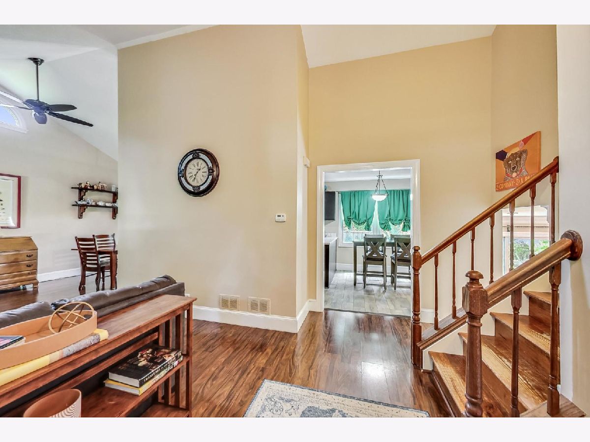 We're thrilled to showcase a stunning single-family home now available in the charming community of Buffalo Grove. Nestled within an exceptional school district renowned for its quality education from early years through high school. Surrounded by lush trees, picturesque parks, and top-notch recreational facilities, residents enjoy a vibrant lifestyle with easy access to golf courses, shopping destinations, and a diverse dining scene. Don't miss the chance to call this wonderful neighborhood home! As you enter this lovely home you find beautifully vaulted ceilings, an open living room and dining space, and a breakfast area just off the kitchen with a view of the lush private greenery in the backyard. As you make your way to the family room you are greeted with a cozy fireplace and views of your patio and green views. Your mudroom is right off the garage entryway and boasts a brand new washer/dryer and custom cabinetry for laundry organization. The basement provides extra storage, a wine cellar for the wine lover, or can be converted into an office space. The basement has built-in shelving and a great space to be transformed into a game or recreation room for movies or play. You will find updated mechanicals as well. On the second floor, you will find a bright and open primary suite with vaulted ceilings, a walk-in closet, and an updated primary bathroom, along with 2 bedrooms and a full hall bath. List of updates and features: New water heater, 2024, new washer dryer June 2024, new roof to house shed and gazebo 2023, new furnace and AC 2017, new primary bed + bath, 2017, updated second bathroom, updated powder room, patio 2023, custom tiled family room floor, stainless steel appliances, custom baseboards, crown molding, and door molding, closet organization in all bedroom closets. finished basement and storage room with wine cellar, updated kitchen Enclosed dog run, two car garage, Handmade, armoire in primary bedroom satellite ready (DIRECTV), custom fireplace built-in wooden bookshelves in family room, closet, organizers