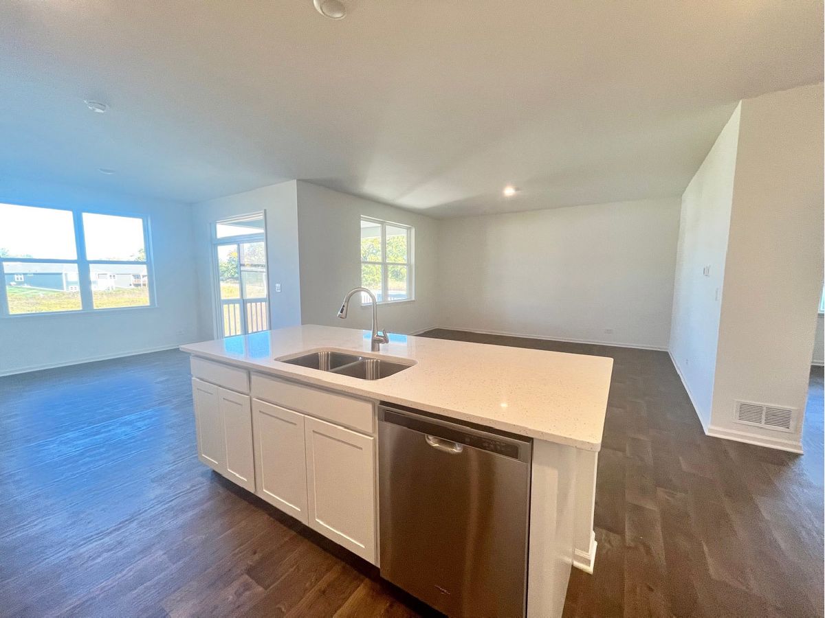 Beautiful, brand new, move-in ready ranch home located on a cul-de-sac within the picturesque Sanctuary of Bull Valley. This Bristol plan features 2 generous-sized bedrooms, plus a flex room, perfect for an office, formal dining or sitting room. 2 full baths. Enjoy the spacious open-concept kitchen with a large island perfect for entertaining! Plus, there is a large, covered deck with amazing views right off the dining area. White cabinets with crown molding, quartz countertops, and stainless-steel appliances complement this bright and open home. A bright and spacious lookout basement and 2-car garage round out the home. Enjoy the low-maintenance lifestyle with no lawn care or shoveling. The association includes professional landscaping, lawn upkeep, and snow removal. All this and you are just minutes from shopping, parks, the historic Woodstock square, and the Metra Station. All Chicago homes include our America's Smart Home Technology which allows you to monitor and control your home from the comfort of your sofa or from 500 miles away and connects to your home with your smartphone, tablet or computer. Home life can be hands-free. It's never been easier to settle into new routine. Set the scene with your voice, from your phone, through the Qolsys panel which you can schedule it and forget it. Your home will always await you with your personalized settings. Our priority is to make sure you have the right smart home system to grow with you. Our homes speak to Bluetooth, Wi-Fi, Z-Wave and cellular devices so you can sync with almost any smart device. Builder Warranty 1-2-10. Exterior photos of actual home, interior photos of a actual home and model. Model photos may vary from actual home as built.