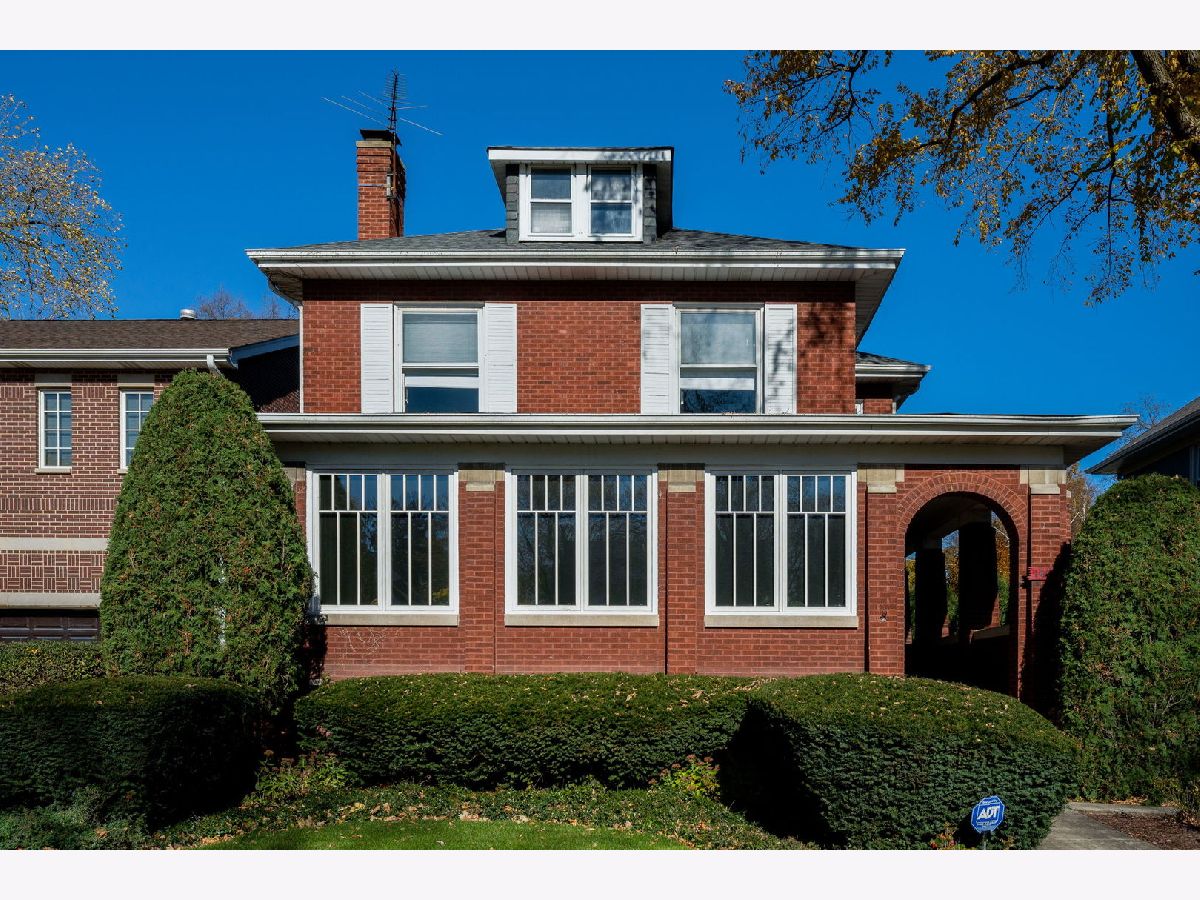 Wonderful Sun filled brick 2 story home with spacious eat-in Kitchen and adjacent family room with bookcases and cabinets. Wonderful views of back deck and yard. Charming covered brick entry porch leads to entry tiled vestibule with closet. Foyer opens to LR and DR and hallway to Kitchen. LR woodburning fireplace flanked by bookcases. 8.5' Ceilings. Off living room is sunny sunroom with newer windows and bookcases, great for reading or using as work space. Formal Dining Room opens to kitchen and family room for easy entertaining. Back mud room area with closet and stairs leading to driveway, yard and garage. Off family room is another door to deck for easy grilling and space for dining. Gracious carpeted staircase leads to second floor with an ample landing. Second floor addition master has ensuite bathroom, private deck, huge closets, 2 skylights and overhead fan. Huge original master bedroom has large closet and wonderful southern exposure. 2 more second floor bedrooms. Spacious second floor bathroom has tub and separate shower. Beautifully finished basement with carpeting and side entrance. Large basement rec space and ping pong table area make for easy entertaining. Adjacent unfinished teen room for music or hobbies provide more space. Storage room with shelving. Furnace room has handy work bench. Convenient basement full bath has shower & makes basement very useable space. Bright laundry room with newer W & D and shelf and cupboard storage. Walk to Leahy Park's tennis courts and soccer fields. Canal Shores very close by, Orrington School, St. A's, NU, Evanston Hospital and Lighthouse Beach! Metra and El! Great Location! 2 car garage. Space Pak. Must see this wonderful home!