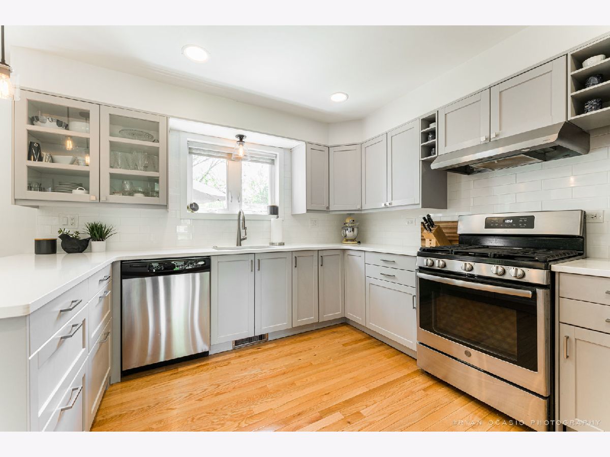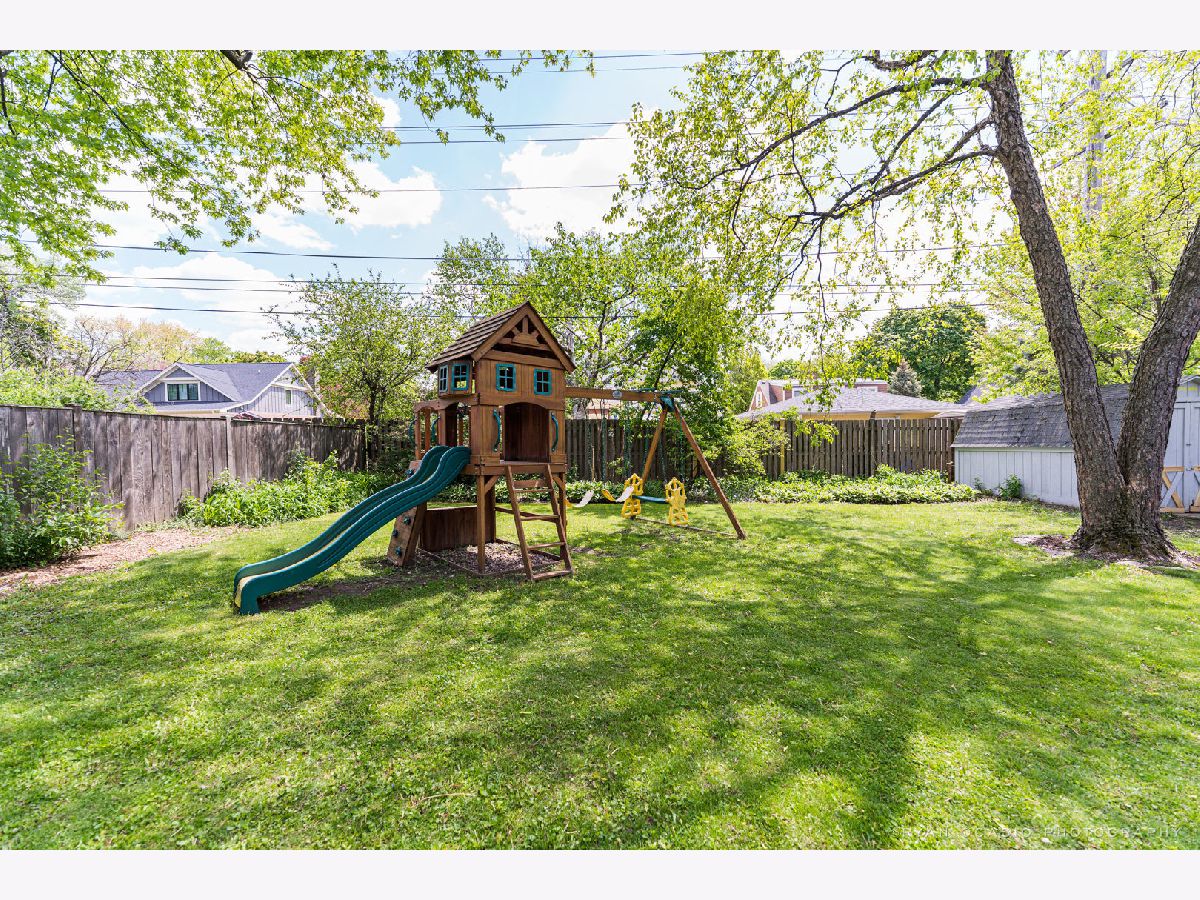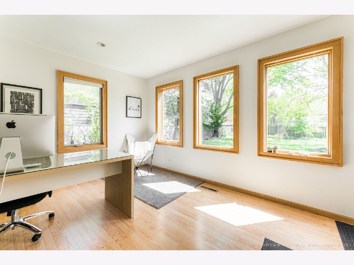 Love this well decorated home with a cool mid century vibe. Living room features floor to ceiling windows with pretty views of neighborhood homes and hardwood floors. Remodeled kitchen is a jewel with gray cabinetry and quartz counters with seating. Dining area is convenient, attractive space. Mud room combines with great office space, and its big windows make for sunny mornings. Three bedrooms with a nice sized master. Big bath is updated with current amenities. Lovely yard is a favorite feature, and is mostly fenced for privacy. Private deck looks out onto the yard and is a great dinnertime spot. Basement runs the length of the house to offer great big spaces for both recreation and storage. Two car garage. New roof and gutter 2019. After 14 years of loving their house, and making it better and better, the sellers are turning the keys over to some lucky new owners, who will quickly appreciate that the friendly neighborhood is great for walking to Lowell Elementary School, the train station and the children's park just two blocks away. Prairie Path and great breakfast spot at the bottom of the hill. This is a winner and a keeper.