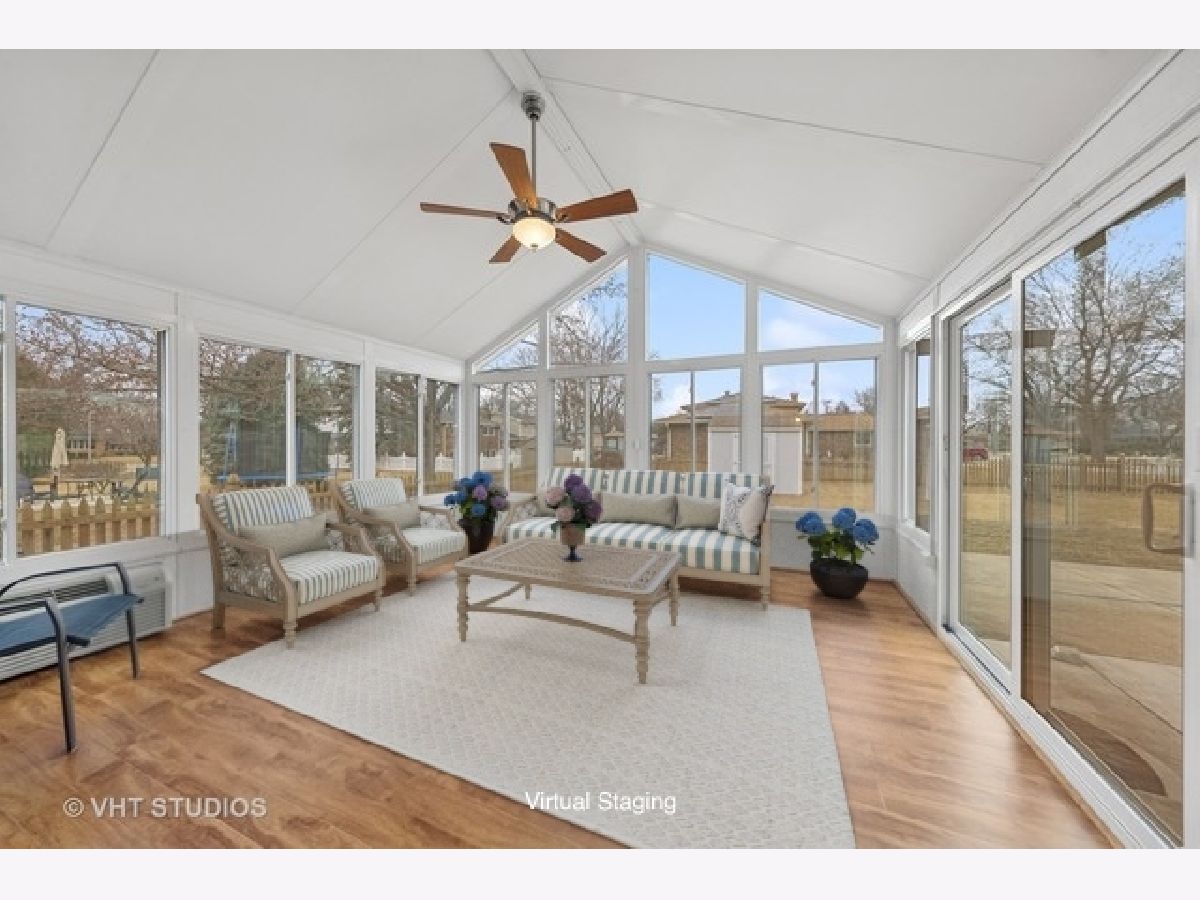 Wonderful expanded Gallagher & Henry Newcastle - lovingly maintained by original owner. Awesome extended kitchen brings an abundance of cabinets and storage along with a large center island. Pantry closet contains the washer & dryer. The eating area has ample table space for your largest gatherings. Open concept to a spacious family room with fireplace and shelving makes this a favorite gathering. Now add more room through the sliding glass door to a relaxing 3-season room. All bedrooms have ample closet space and ceiling fans. Enjoy your fenced yard with new patio, shed & firepit. Updates include: Roof 2018, furnace, a/c, water heater 2021, windows 1990. Carpeting and home professionally cleaned. Unfinished basement for storage & workshop. Gas grill, stand-up freezer, snowblower can stay. Cement crawl. Approx a block away are two parks where you can watch 4th of July fireworks - plenty of shopping - close to expressways. The perfect location!
