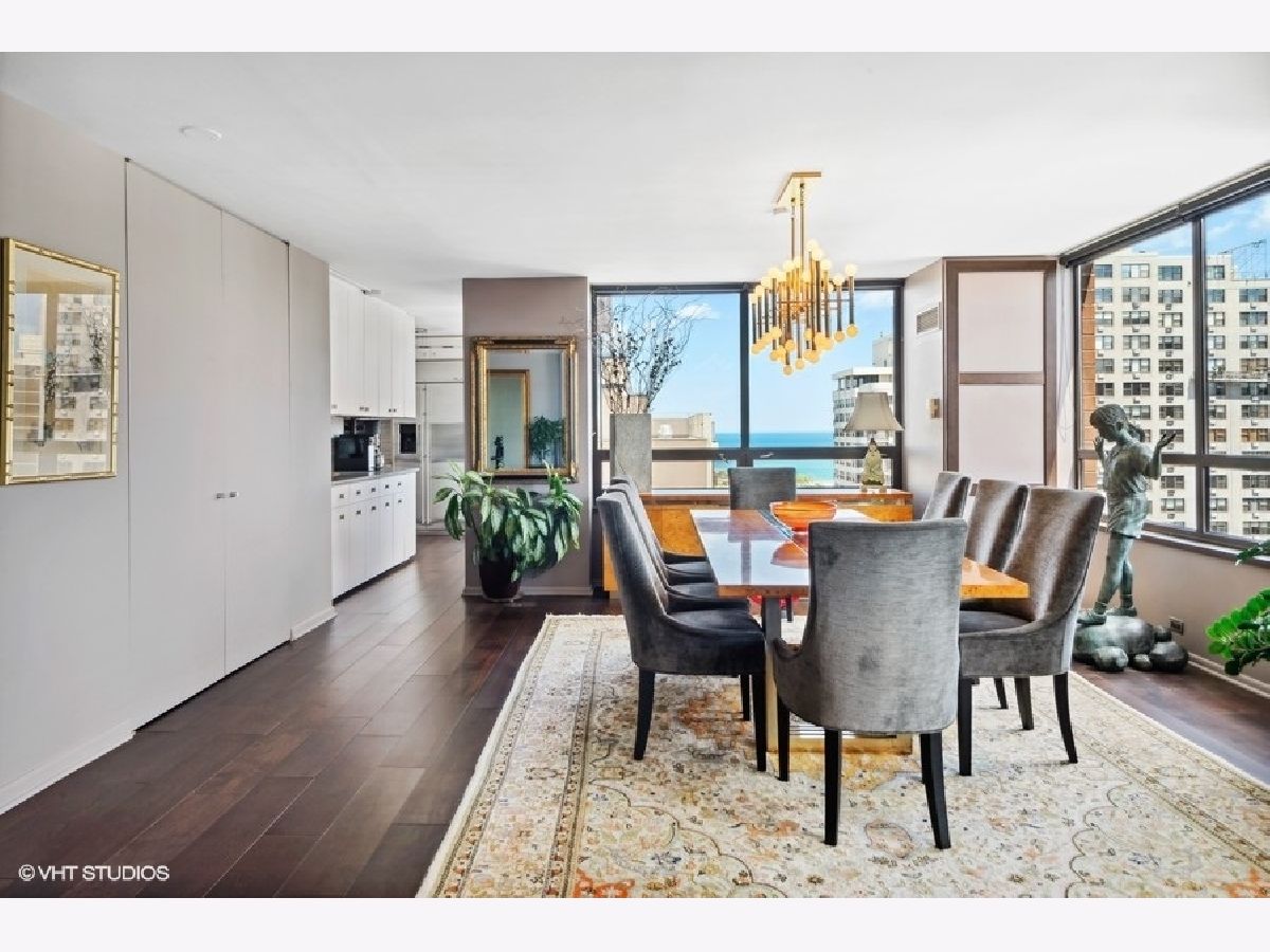Welcome to 1410 N. State Parkway, a lovely boutique, 50 unit building, located on one of the iconic tree-line blocks in the Gold Coast. With only 2 units per floor and only 27 floors, there is a wonderful community feeling and a longtime staff that provides greater services than a larger building. A beautiful foyer leads to the living/dining area where a wall was removed to open up the space. With large windows to the East and North and and angled window bringing in the South, it is Light, Bright and Airy. The North window faces the Cardinal's mansion and captures a sweeping panoramic lake view. Offering 2000sf with gracious room sizes. Beautiful engineered floors were added to the apartment in 2019, with the exception of the primary and second bedrooms. The recent kitchen updates included new Caesarstone counters, sink, faucet and lighting as well as a built-in granite tabletop to enjoy morning coffee. Other additions: Bosch washer dryer, double oven, dishwasher and induction stovetop with exhaust fan. The adjacent balcony is perfect for watching the sunset sky and grilling. The primary bedroom has great closet space: one wall of beautiful built-in cabinets for hanging as well as drawers, and two additional closets, one which opens to the kitchen for late night snacks. The third bedroom is open to the hallway with a glass divider and can easily be returned to a functioning bedroom. The two full baths were totally retiled and a new primary bath vanity was added. The powder room floor was replaced with marble inlaid with brass. Recent building updates include a renovated lobby, lobby area on each floor, air conditioning chiller, a fire alarm system with automatic closing fire doors between the units on each floor, a new garage floor and elevators for the valet parking. Dogs to 40 lb welcome. Long time support staff and 98% owner occupied. This is a walker's paradise with a 94 walk score. and easy access to public transportation. Guest valet parking is $7 for up to six hours. A pleasure to show! NOTE: Assessment shown is the base plus internet and cable There is an ongoing Capital Reserve Contribution of $558.33/mo to build back up the reserves --Assessment Breakdown: Unit: $1750.52; Everywhere Internet: $40.52; Cable (Direct TV) $96.94; Capital Reserve Contribution - $558.33 ; TOTAL: $2446.29 Parking is $270/month per car-- two cars