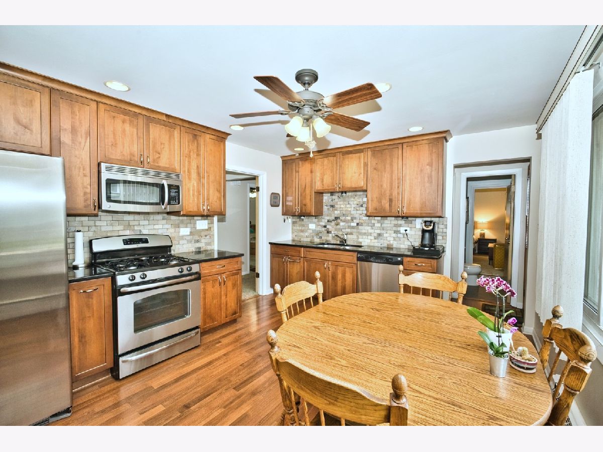 Welcome to Mount Prospect, 3 Bedroom 2 Bathroom Ranch Home with 2 Car Garage, Central Air, Updated Eat in Kitchen with New Cabinets, Granite Countertops, Stainless Steel Appliances, Tile Backsplash, Updated Bath Room, Primary Bedroom with Bath, Bedrooms with Large Closets, Ceiling Fans, Large Living Room, Spacious Dining Room, Side Door leads to Wood Deck, Full Basement, Large Cement Driveway, Newer Roof and Windows, Close to Shopping and Randhurst Shopping, Walk to River Trails Park and Pool, John Hersey High School and More....