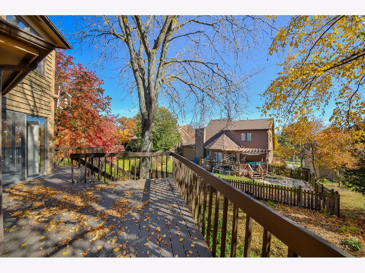 Welcome to this beautifully maintained, one-owner home in the serene Belleau Woods subdivision. As you enter the two-story foyer, you'll be greeted by an open and airy Living Room with a soaring vaulted ceiling that invites natural light. The Dining Room, which opens to a wrap-around deck through sliding glass doors, is conveniently located off the updated Kitchen. The Kitchen features granite countertops, stainless steel appliances, recessed lighting, an island, and an eat-in area with deck access through additional sliding doors. The Family Room offers built-in shelving, a brick wood-burning fireplace, and another set of sliding glass doors leading to the deck. Upstairs, the oversized Primary Bedroom includes a spacious ensuite with a tub, separate shower, dual sinks, and a walk-in closet. Two additional bedrooms and a laundry closet complete the second floor. The basement offers a large unfinished recreation space with garden windows, a carpeted office area, and a generous storage/furnace room. Notable features of this home include a sprinkler system, brick and cedar exterior, concrete driveway, a new hot water heater (2024), a new roof (2022), and furnace and A/C (2016). Feeds to Award Winning District 200 schools & located near Cantigny Golf Course, Cantigny Junior Links, Forest Preserves, the Prairie Path, and I-88. This lovely home is ready for its next owners to make it their own.