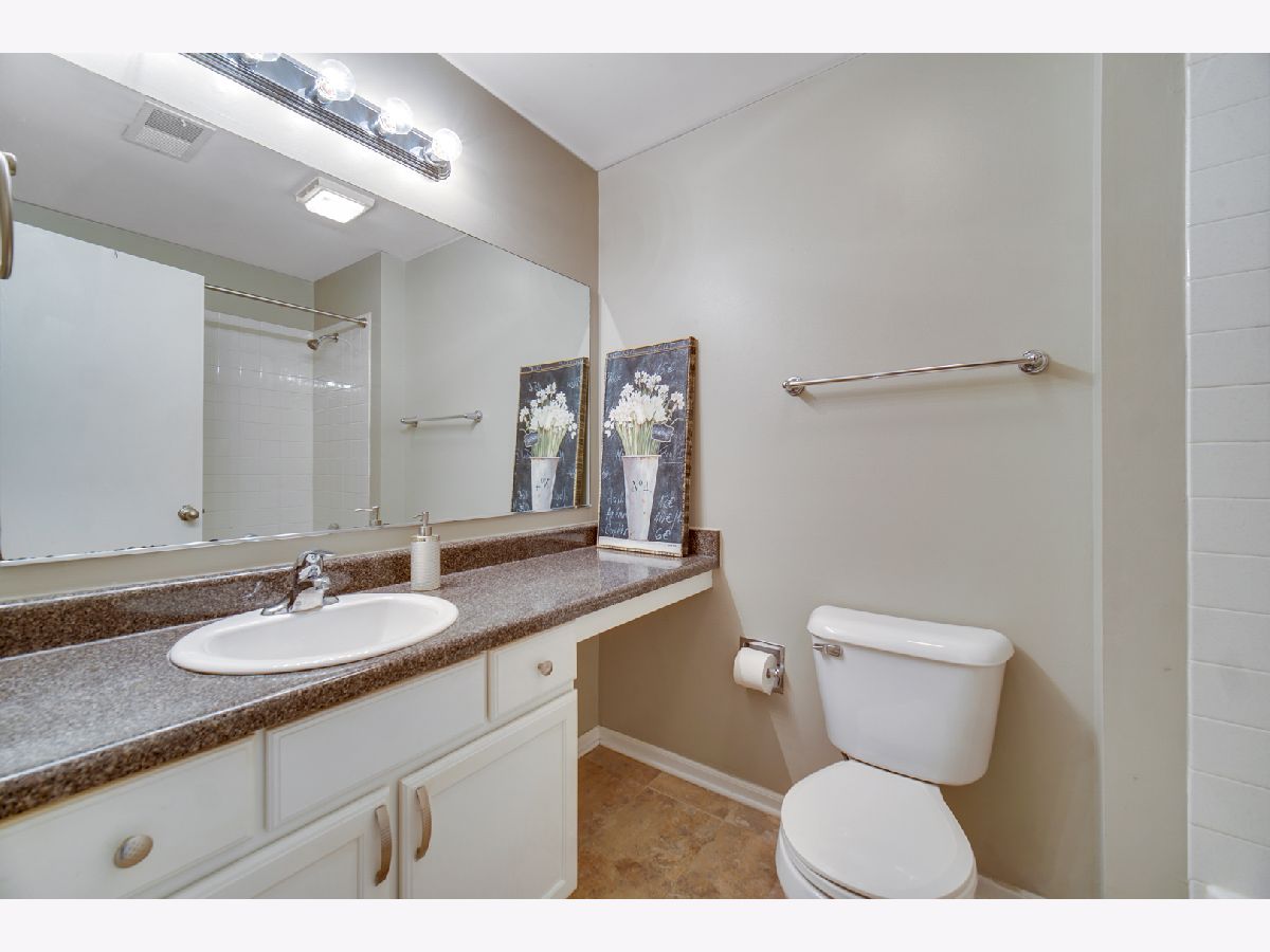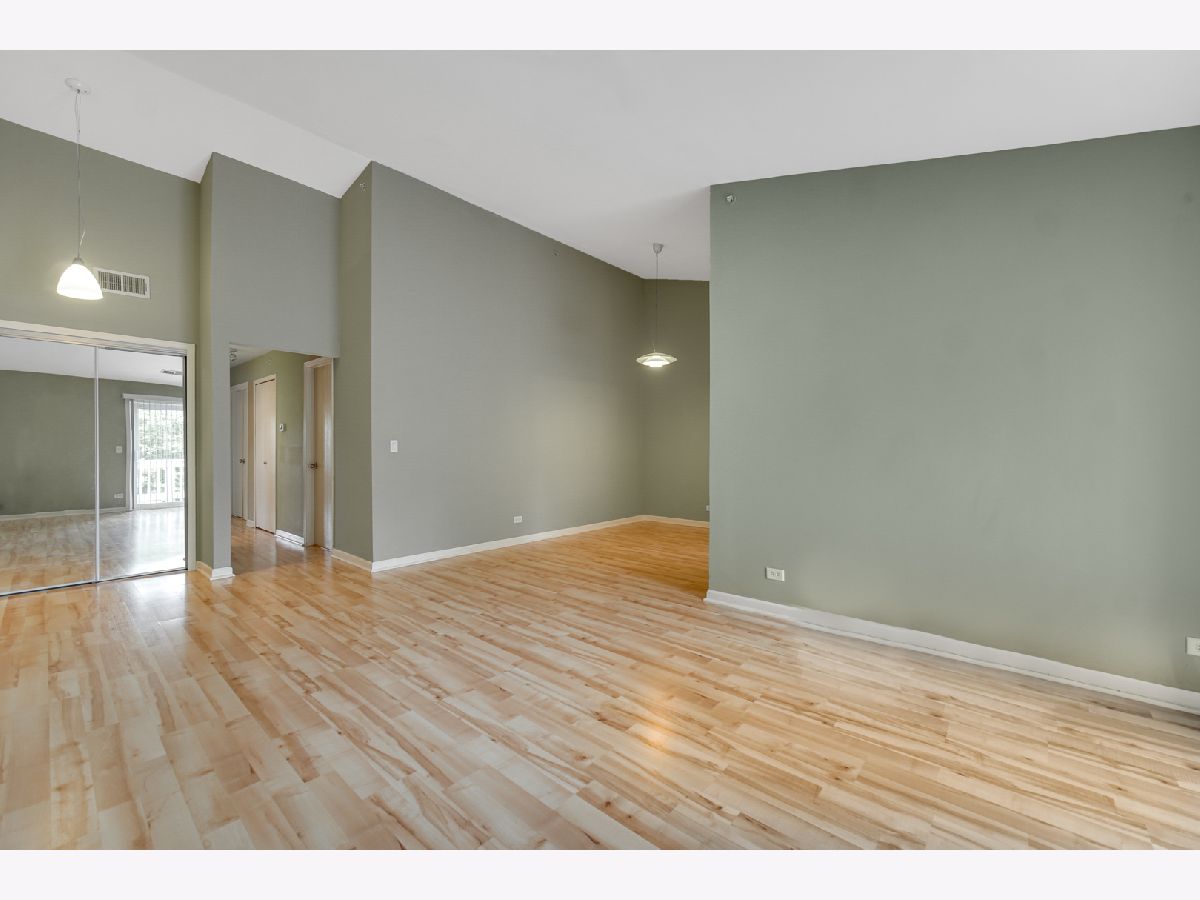 This is the place to call HOME! Spacious 2 bedroom 2 bath condo with high vaulted ceiling which only 2nd floor units allow for. Warm and welcoming entrance with neutral color laminate floors leads you into a specious living room and formal dinning room with gorgeous light fixture. Beautifully remodeled custom kitchen with stone countertops and upscale stainless steel appliances also have a space for a breakfast table overlooking large balcony. Master bedroom features expanded bath with natural stone tile, custom shower and modern his and hers vanities with a mosaic backsplash. 2nd bedroom is also a good size. Both bedrooms have custom closet organizers for your convenience. Hallway leads to a 2nd full bath and your own laundry room. Really nothing to do but unpack. Wonderful community, great schools and convenient location just couple minutes from expressway makes it a perfect buy!