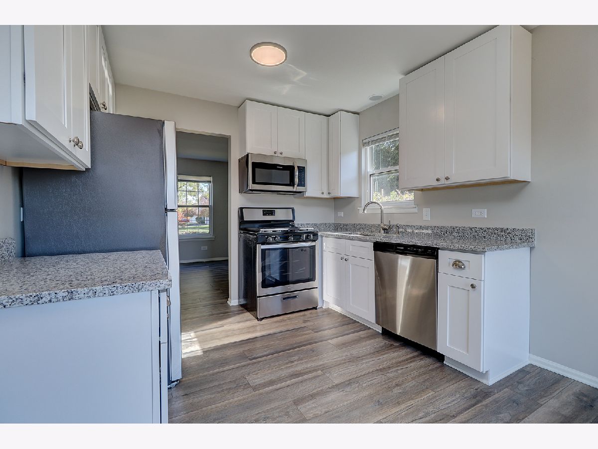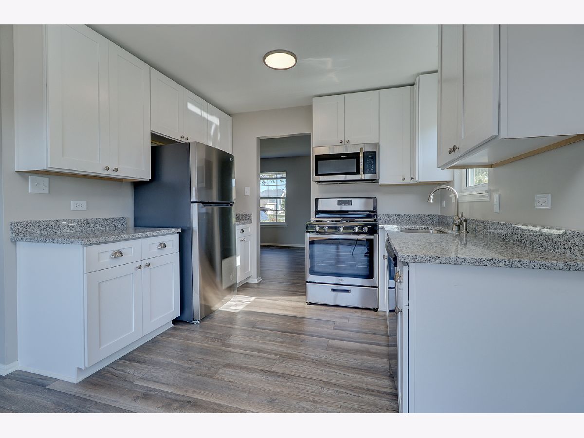 Beautifully updated home with new vinyl plank flooring on the first level. Eat in kitchen with new white cabinets, granite countertops and Stainless steel appliances. 3 bedrooms all offering walk in closets, new carpeting. Freshly painted. huge deck and large private yard. 2 Car garage! HVAC 2 years old. Move in ready available now! Plainfield schools! Close to shopping, highway.
