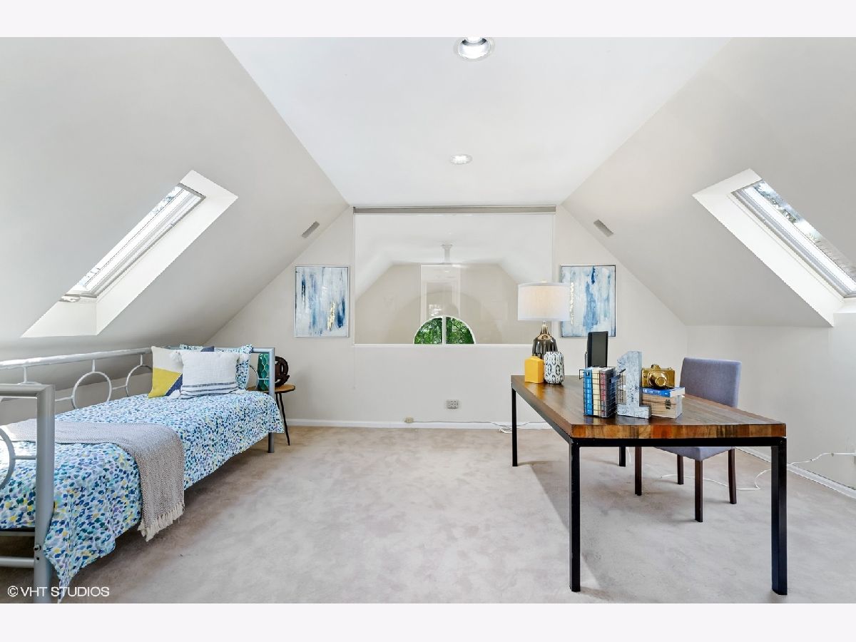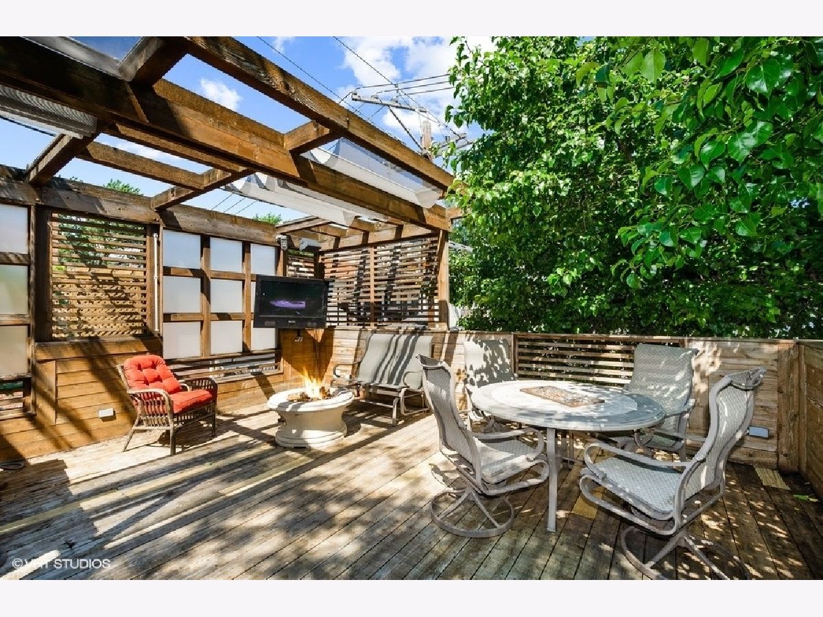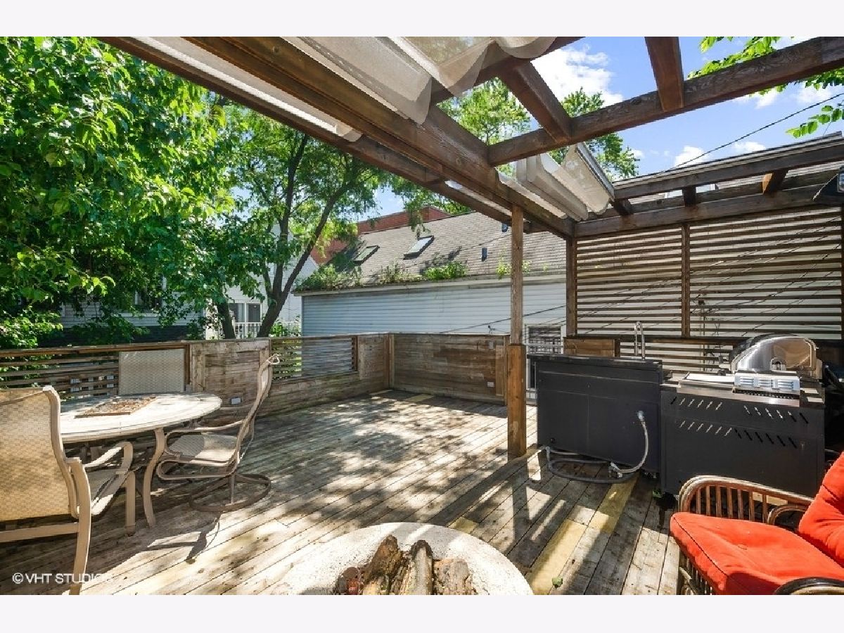 Flooded with light, high ceilings and generous room sizes, do not miss this home in highly coveted Lakeview/Burley elementary school. Expansive feel in every room in this extra wide floorplan. A unique side entrance leads to an oversized front living room and dining room with plantation shutters on all the windows. Just beyond enjoy expansive kitchen that opens to versatile family room with a wall of windows. Skylights steam light into the staircase and illuminate the center of the home. Primary bedroom retreat with 2 story ceilings and a wall of built ins and fireplace. Primary bath has large jet tub, dual vanity, and separate shower with 2 showerheads. 2 more large bedrooms on the same floor have 10 ft ceilings and good closet space. Laundry room on 2nd floor and abundant storage closets. Top floor has updated full bath with steam/rain shower and double vanity that is attached to sprawling 4th bedroom and hallway. Lofted/enclosed den is perfect for home office or could be a 5th bedroom. Outdoor space includes a large garage roof deck with pergola, and already has water, gas and electricity accessible. 2.5 car garage and yard round out this great home. No lower level, only crawl space. Never make coffee again with Dopio on the corner. Plus, Whole Foods, Jewel, Belmont Red Line, Southport Brown Line, multiple bus lines, and tons of restaurants within a few blocks. Simple carpet replacement and fresh paint will turn this into your best market find. Investment power starts today!