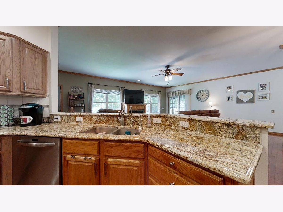 Picture perfect curb appeal with quality finishes and water views in Mahomet's sought after Sandy Ridge subdivision! This 3 bedroom, 2 bathroom ranch has everything you're looking for starting with a spacious open concept living room featuring 9ft ceilings, gorgeous hardwood flooring, tons of natural light, cozy fireplace, and access to a relaxing sunroom complete with both heat and air. Entertain with ease in the large dining and kitchen area, which is highlighted by stainless appliances, beautiful oak cabinets, and granite countertops. The center island and large pantry add to the great functionality of the space. The split bedroom designs starts with the bright and airy master suite where you'll find a private full bath with double sinks, fantastic storage, separate jetted tub, beautiful tiled shower, and a walk-in closet. Two additional guest bedrooms boast plenty of natural light and great closet space. The shared second full bath and utility room with laundry sink complete the tour. Additional highlights: New HVAC, water heater, and roof in the last 5 years, wired speakers, & expanded parking with additional pad. Host your backyard cookouts on the patio, play in the large shaded yard, or head to the neighborhood pond to do a little fishing! Check out this incredible find today!