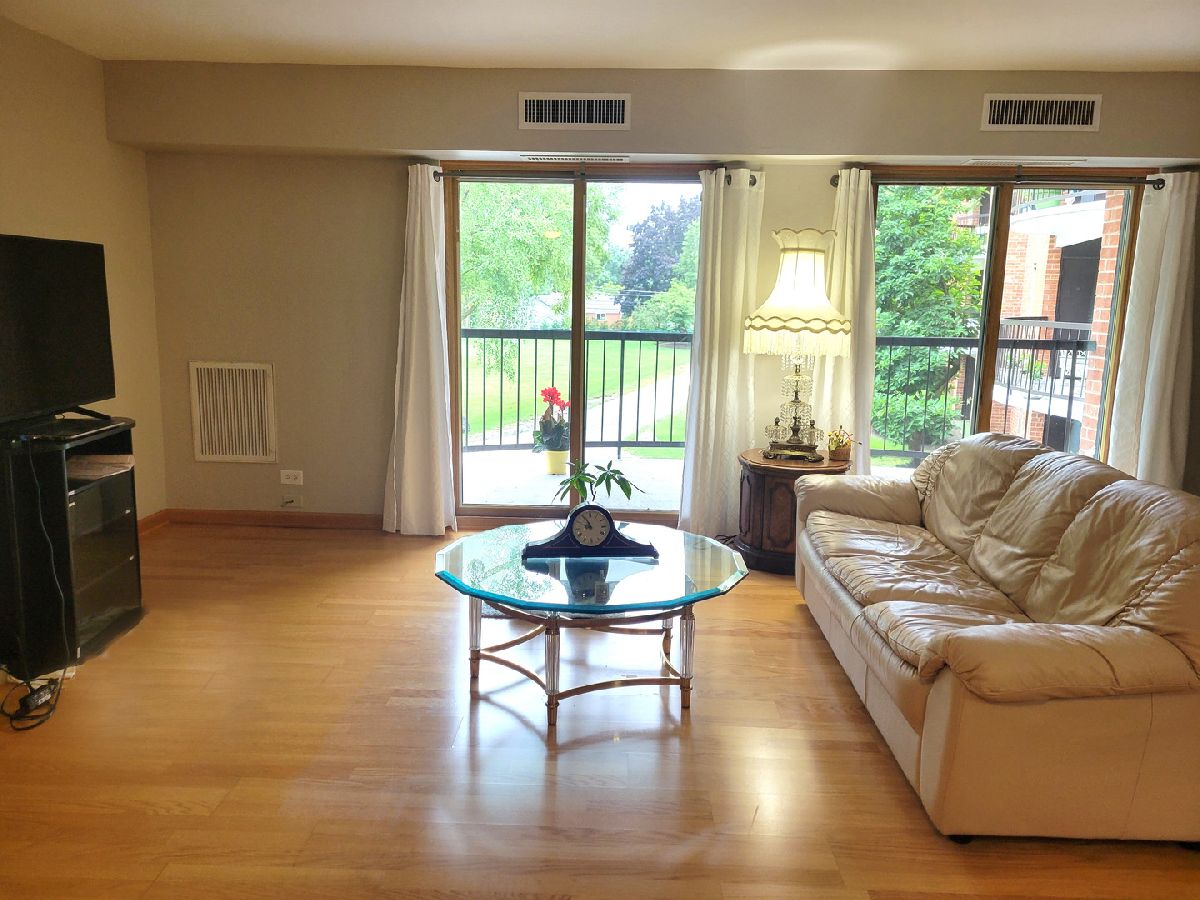 This 2 bedroom, 2 bath Dana Point home features beautiful wood laminate floors, open floor plan, oversized glass sliders which let in light and lead to a patio w/fantastic Western views. White cabinetry in the kitchen with plenty of them. Newer Refrigerator and microwave. Large primary bedroom features a walk-in closet, updated bathroom, and 2 new windows. Second bedroom is large and bright. This unit also includes a private storage unit, heated garage parking space with additional exterior parking. This building is sought after with elevator going all the way down to garage. The convenience of laundry in building. Association covers water, common insurance, exterior maintenance, lawn care, snow removal, and trash. Residents also have access to the clubhouse, outdoor pool, tennis courts, exercise facility, all included. Rentals allowed. Dana Point is centrally located, includes front door service with Pace and School Bus service! Close to Metra Station and Park.