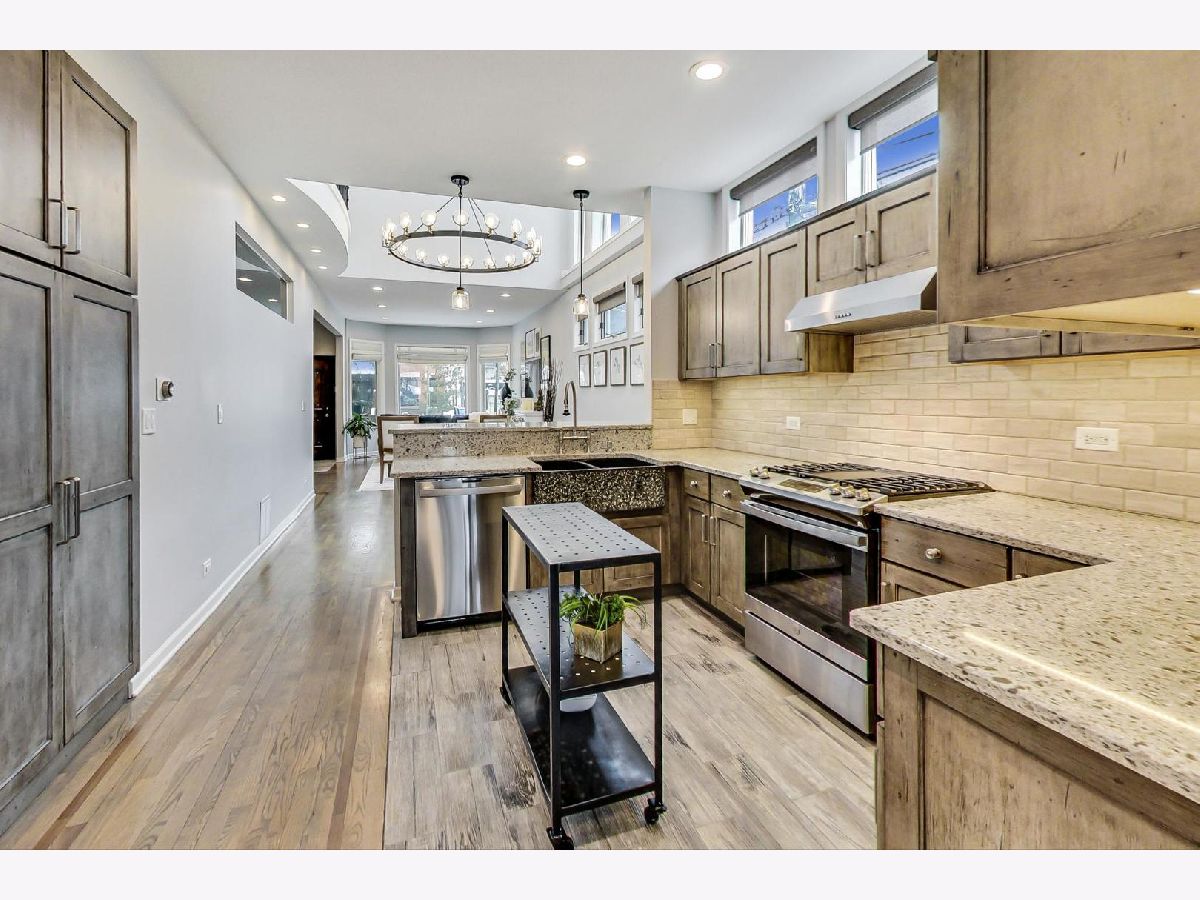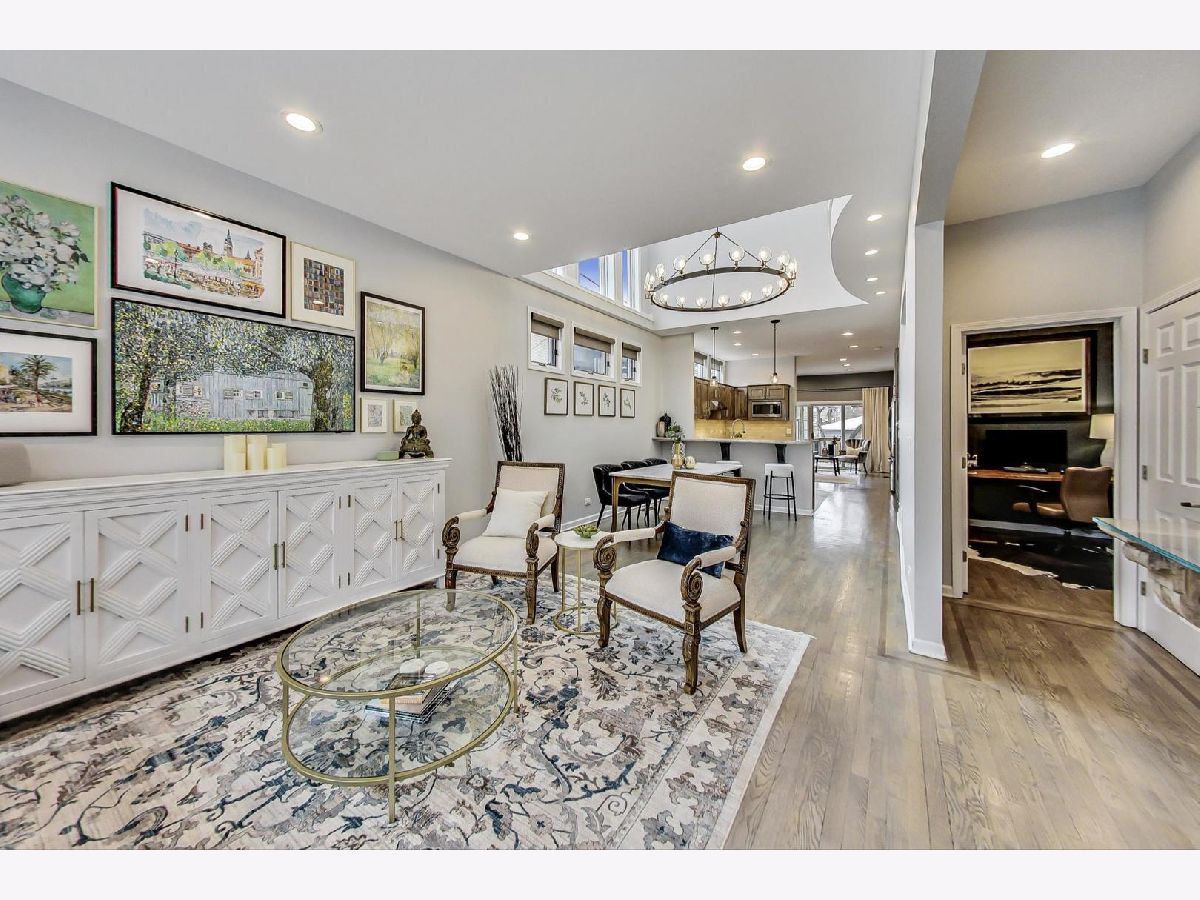 Stunning 2 story atrium with 19-foot windows frames the primary living space of this beautiful home with beaming natural sunlight flowing throughout the day! This is a beautiful 4 bedroom/2.1 bath SFH situated on a quiet tree-lined street in Lincoln Park with a lush newly landscaped back yard. A welcoming foyer brings you into a lovely bright living room with enormous bay windows. Formal dining with architecturally significant chandelier anchors the center of this well-designed home. 2016 kitchen with stainless-steel appliances (2020), subway tile backsplash, granite countertops w/breakfast bar & pantry, under counter lighting. A cozy rear family room features a built-in dry bar and flows right out to amazing outdoor haven. Brand new deck, paver patio, and landscaping (2021). Newly designed XL working laundry room (2020) plus a separate rear mudroom space offers amazing organization and storage. Powder room (2020) and main floor 4th bedroom rounds off the 1st floor. The second floor offers 3 generous sized bedrooms plus office loft. Features include a redesigned owner's suite with cathedral ceiling w/skylight, custom walk-in closet, private balcony, and stunning 2020 fully rehabbed bathroom with custom double vanity, walk-in spa shower, under floor lighting. Bonus room/loft with vaulted ceiling perfect for additional work or play - walks out to a darling balcony. 2 car garage. Mechanicals were new in 2020. Basement is large, clean, and very useful, with 5-foot ceilings. Its great storage/workspace and ready for you to take this house to the next level! Steps to Wrightwood Park, DePaul University, top restaurants & boutiques in this adorable Lincoln Park neighborhood!