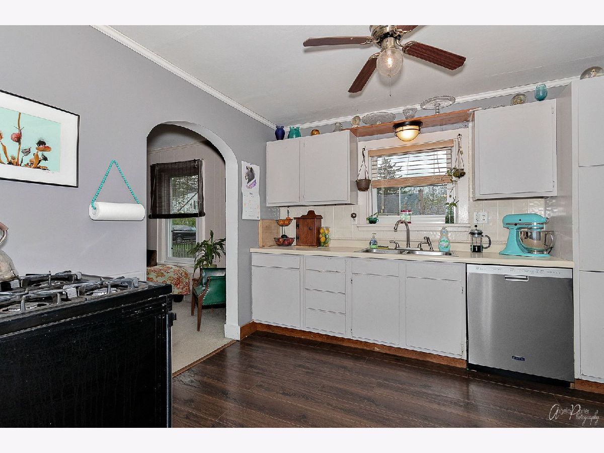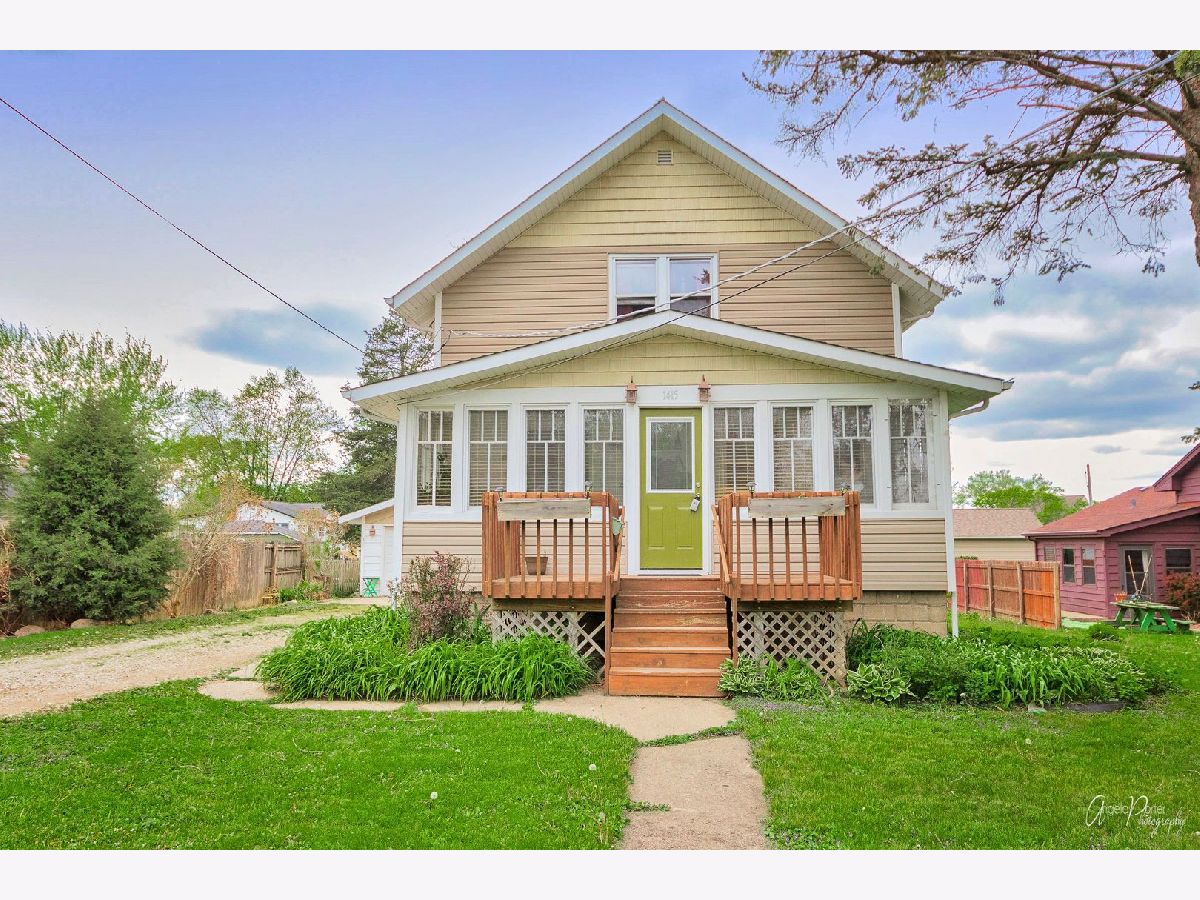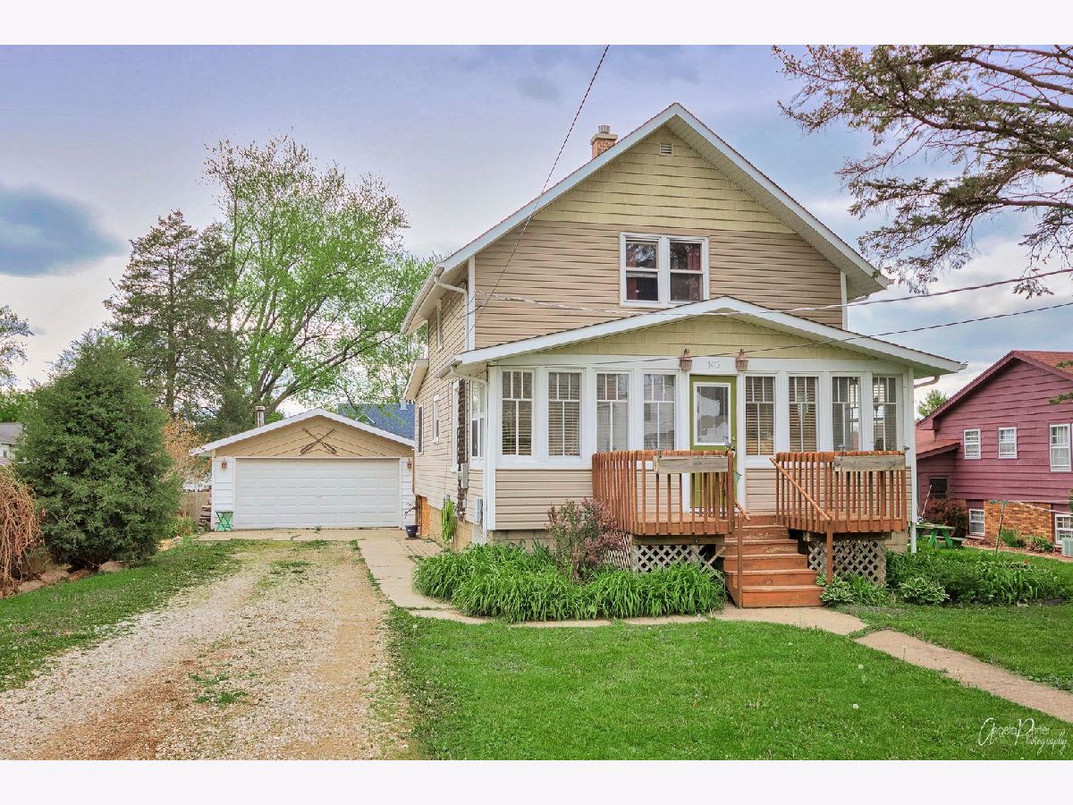 Lovely Two Story home with 2 car detached garage located in the heart of Woodstock. It has an adorable, enclosed porch with tons of windows for year round enjoyment. Large Living room with ceiling fans. Kitchen with wood laminate flooring and includes all appliances. Dining room with wood laminate floors. On the back of the home there is a three season room that is currently being used as an office. Two bedrooms upstairs along with the full bathroom. Decks greet you on both the front and back of this home. Home features new dishwasher(2019), newer windows and siding, Hot water heater in 2013 and Furnace around 2012. Basement has a dehumidifier and a workbench that are included. There is a wood burning stove and a bar in the garage. Firewood will be included. There is ton of storage underneath the deck. The lot features beautiful perennials to enjoy every year. There are schools, parks, Metra and the beautiful Woodstock square all located nearby. Home being sold as-is. Professional photos will be coming soon.