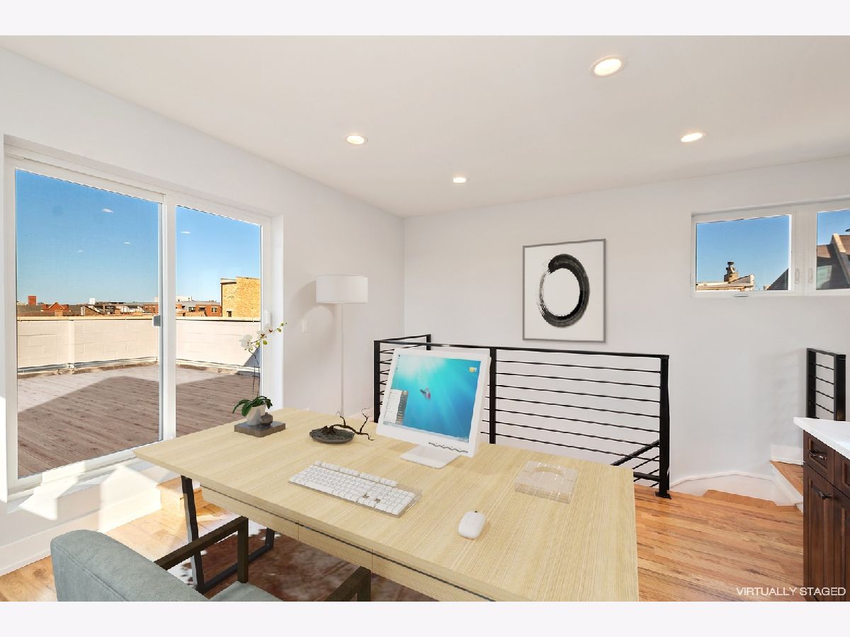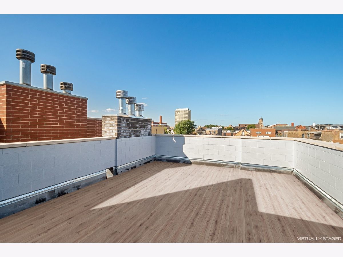 Vacant and easy to show! Unheard of price per square foot in fantastically booming West Town. Penthouse duplex unit with multiple outdoor spaces including double tiered private rooftop space. Both rooftop spaces are fully customizable at additional cost. Bring us your wildest dreams! Expanded upper level with wet bar, full bath and exterior access. Beautiful transitional kitchen with custom walnut cabinetry and quartz countertops. Gorgeous baths with oversized shower and heated floors in Master. Solid oak hardwood floors throughout, 9'+ ceilings and wood burning fireplace with floor to ceiling stone surround. In unit laundry. Added technology including: 5.1 surround sound entertainment centers, plasma point connections and centralized electronics. Covered/ car port parking included in price. . Available now for move in!