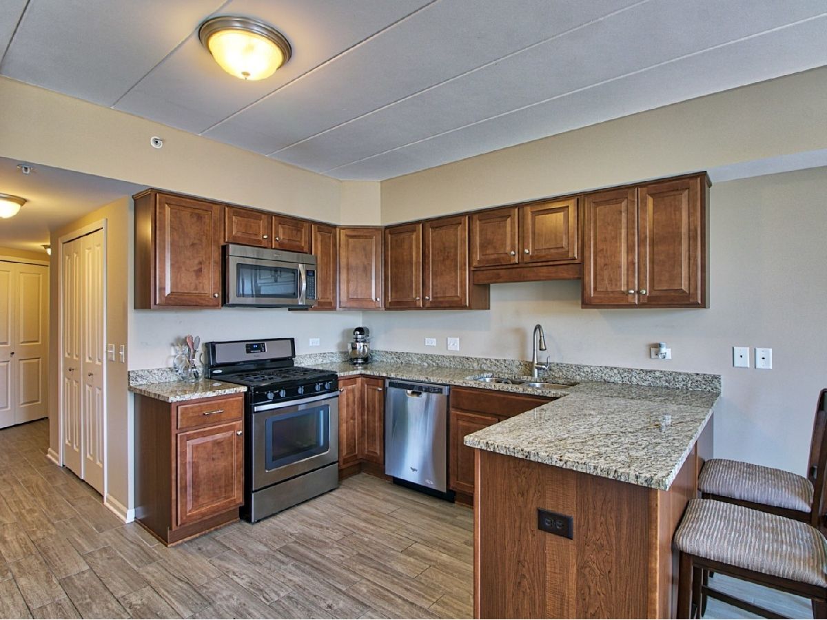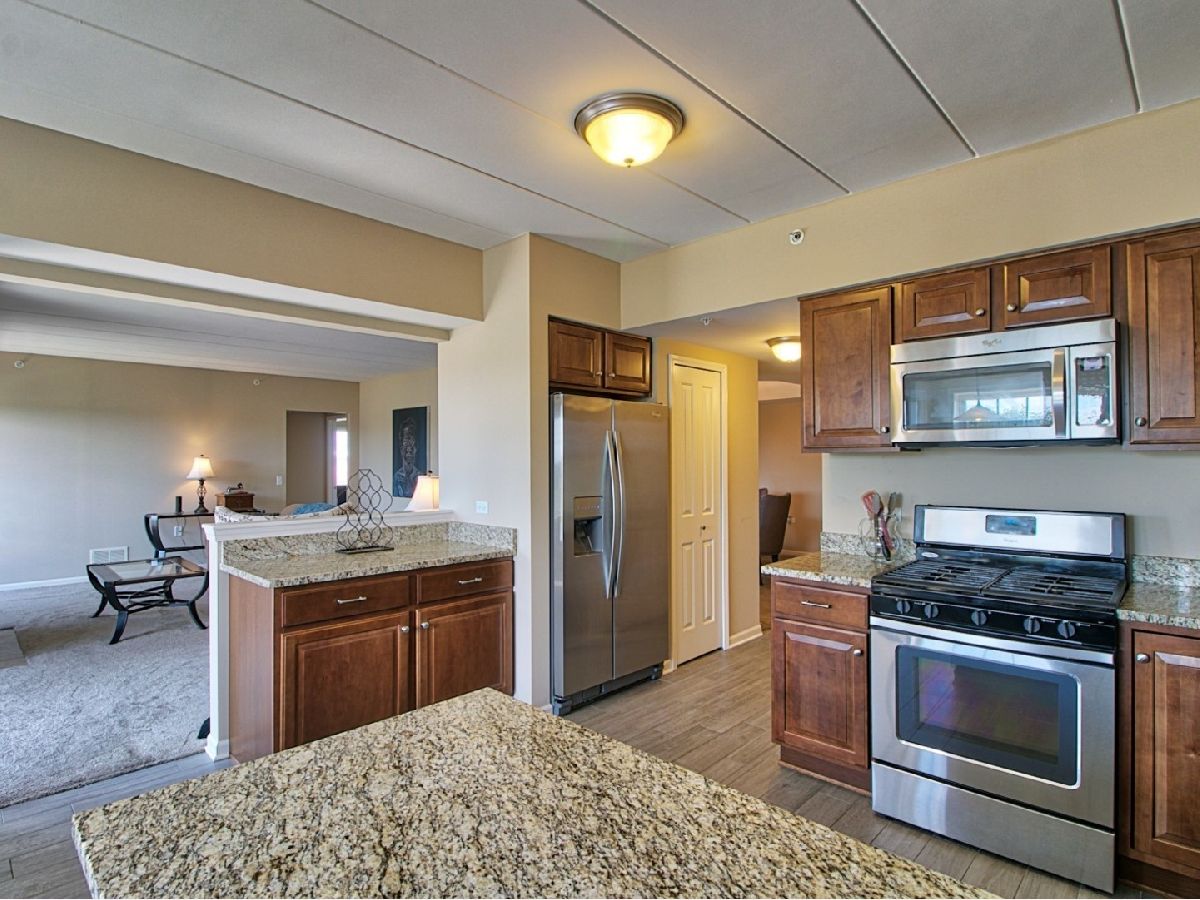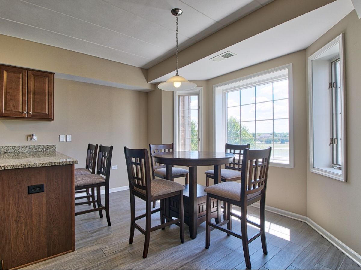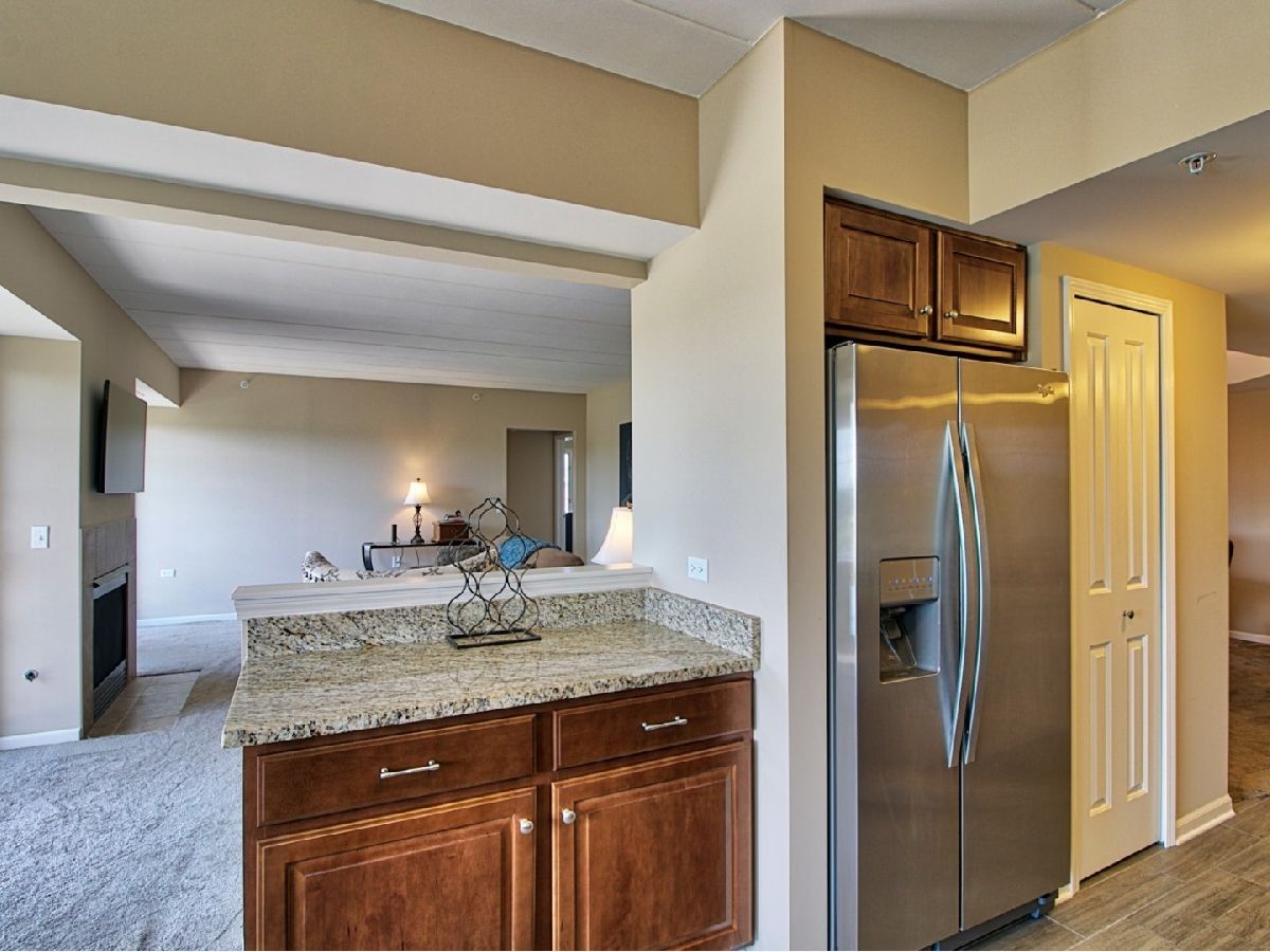 Wonderful 2nd floor condo in elevator building! 2 bedroom, 2 bath. Immaculate and updated. Formal dining room with decorative hexagon style ceiling. Spacious living room with fireplace. Double doors lead to the long balcony. Beautiful eat-in kitchen with stainless steel appliances, granite counters, and bay window breakfast nook. Large master suite with walk-in closet. Master bathroom featuring whirlpool tub, separate shower, granite vanity, and stone tile. 2nd bedroom with double closets. Updated 2nd bathroom. In unit laundry. Sound proof, flexicore building. Handicap accessible. Pet friendly. Heated garage space with storage unit. Minutes from I-355, shopping, and dining. Immediate occupancy. Rentable unit. Show and sell today!