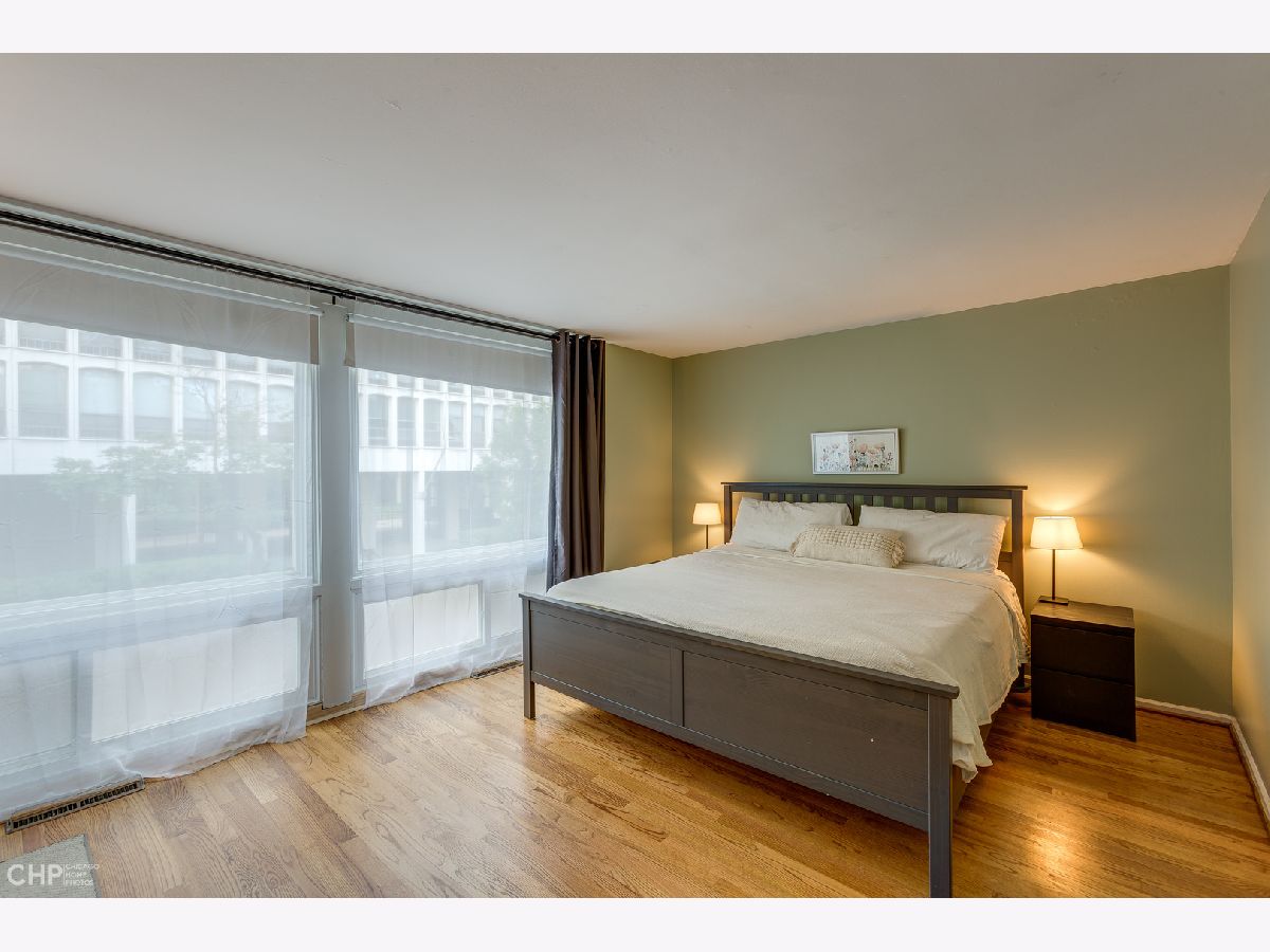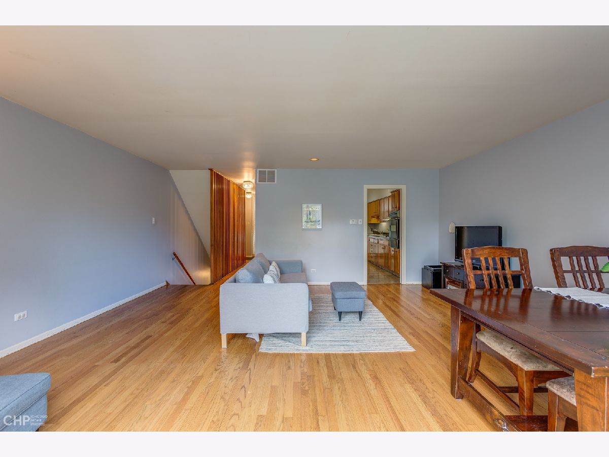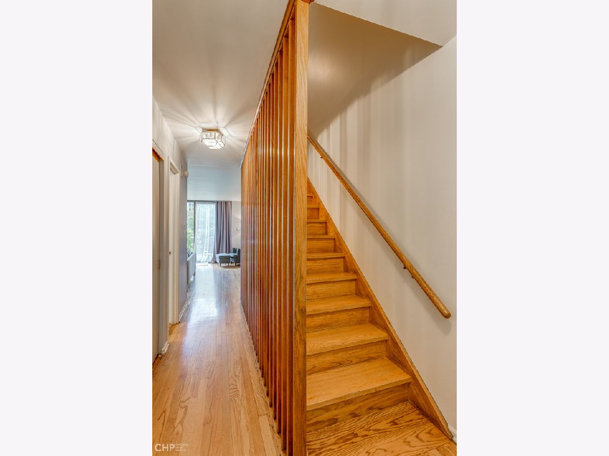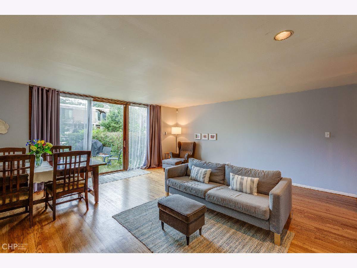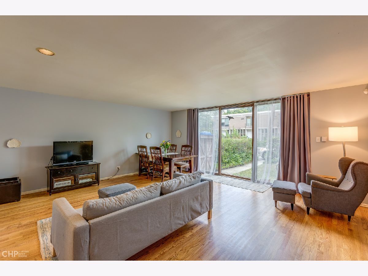 Perfectly located "F" mid-century townhouse in the heart of Hyde Park. This 3 bdrm/1.1 bath home has hardwood floors, central air, and a large lower level that could be perfect for home office or play area, with tons of space and closets for storage. The expansive living/dining room has floor-to-ceiling sliding glass doors with views of and access to the garden. One outdoor parking space is directly behind the garden. Roof is 5 yrs old, brand new furnace, recent windows throughout. Lots of updates throughout the townhouse with the remaining retro charm of the 60's. These townhouses were constructed during the urban renewal period of Hyde Park and designed by a team of architects including I.M. Pei who designed the original solid wood cabinets in the kitchen. Walking distance to the lake, shopping and the University of Chicago. Located within the Ray School district.