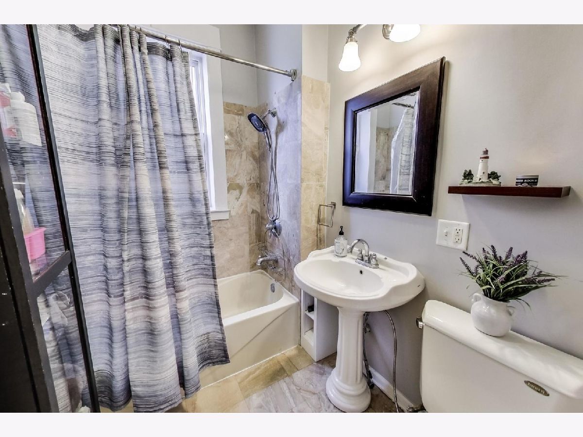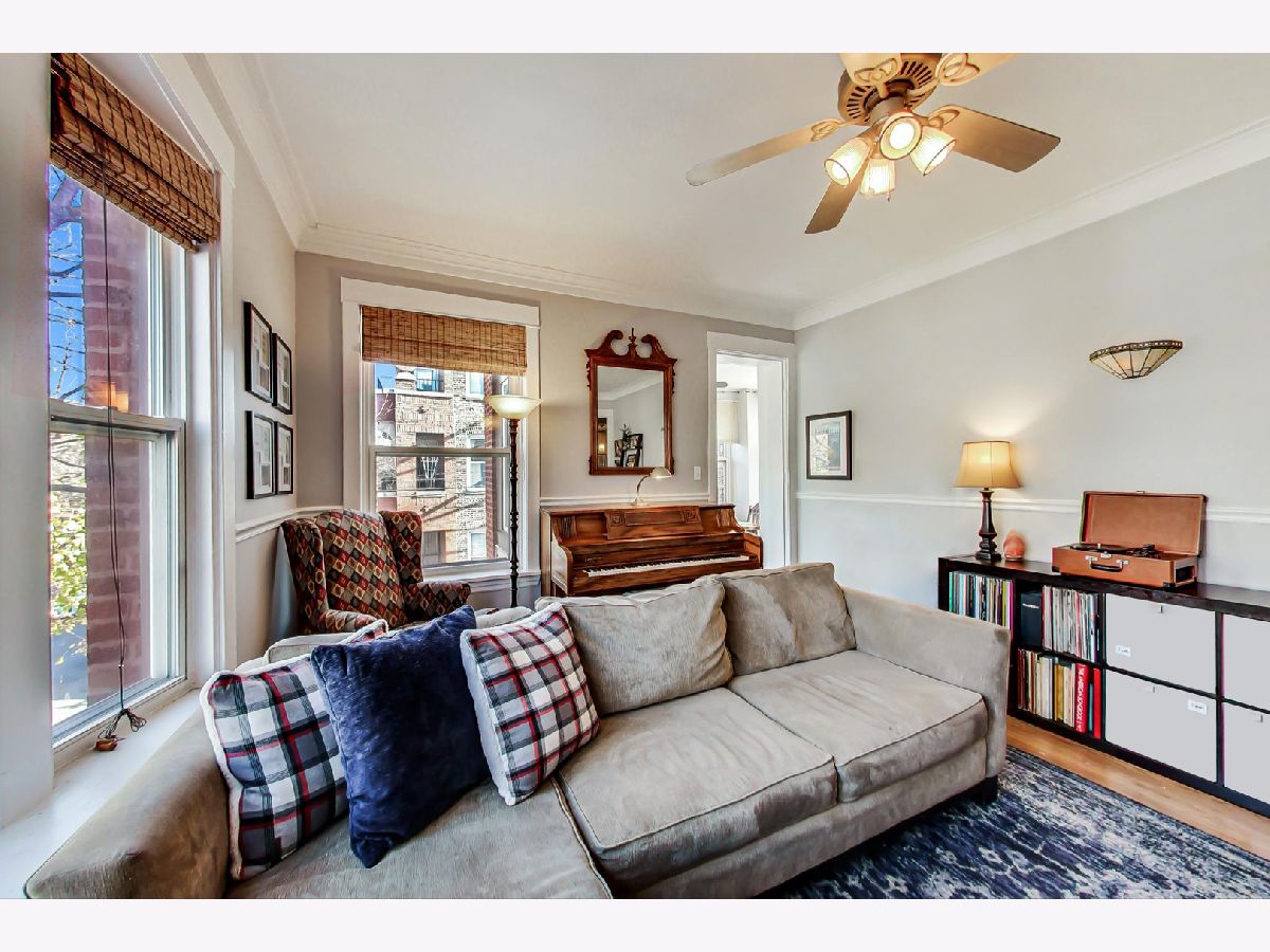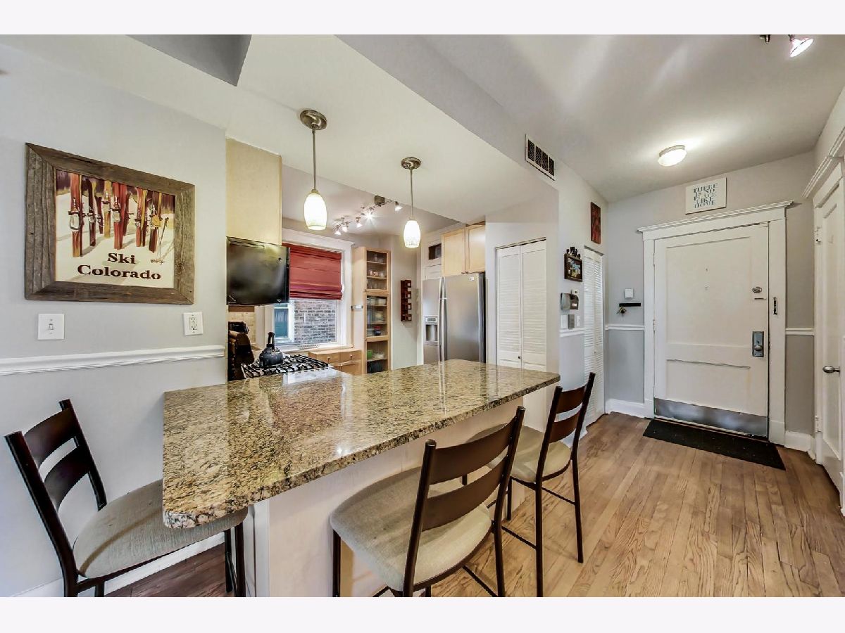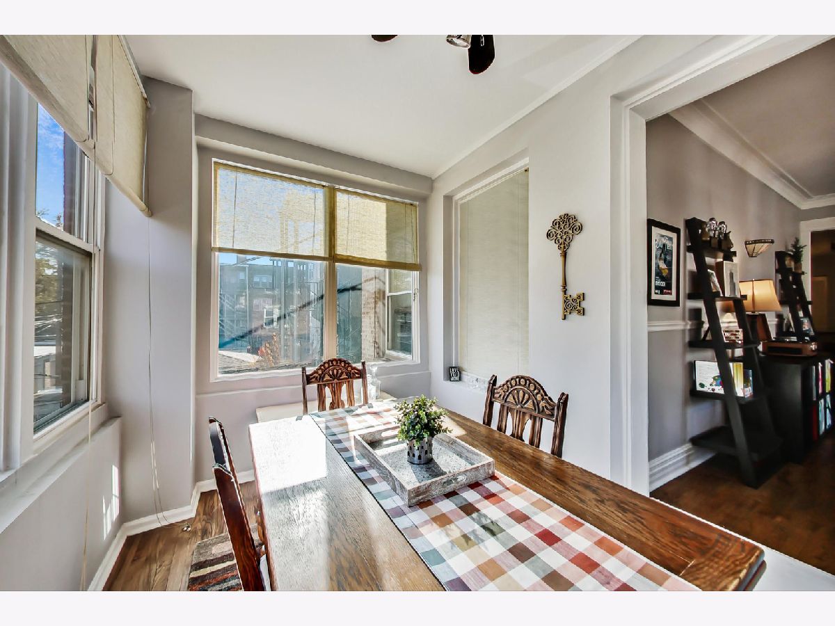 Charming, yet spacious 2 bedroom, 1 bath corner condo on the south edge of Rogers Park near Edgewater and Loyola. 2nd floor of an all-brick building. Amazing sunlight due to an abundance of windows on three sides and a fantastic floorplan. Formal foyer greets guests and welcomes them into your new home, complete with a large coat closet. The ample kitchen features maple cabinets with tons of storage and counter space, an island with seating for three, granite countertops, stainless steel appliances and a pantry. The large living room features a gas fireplace, tons of oversized windows which look out over a quiet, tree-lined, one-way residential street and opens to a large bonus sunroom currently used as a dining room, but would also make a fantastic home office. The primary bedroom fits a king bed with ample space for nightstands and a dresser along with a reach in closet, with additional storage space overhead, perfect for luggage storage or out of season clothes. The second bedroom can fit a queen sized bed and makes a great combo bedroom/office due to its length and has a huge walk-in closet. Off the hallway is a marble bath with a built-in toilet/bidet combo (no more Covid toilet paper worries) as well as the in-unit laundry closet. There is also a small outdoor space with a grill that is included with the condo. The condo is in fantastic shape with hardwood floors throughout that were refinished in 2016, newer paint, central heat with a new furnace in 2017 and central air. Everything you need at a great price. Preferred Rogers Park location on a tree-lined street near Devon, the lake, the Red Line and shops and restaurants. Easy, non-permitted street parking or off-street rental parking nearby. Well managed, proactive building with a new tear off roof in 2020. Plenty of storage space as a large, appx 8 x 10 storage unit in the basement is also included in the price. This is a great, not to be missed condo.