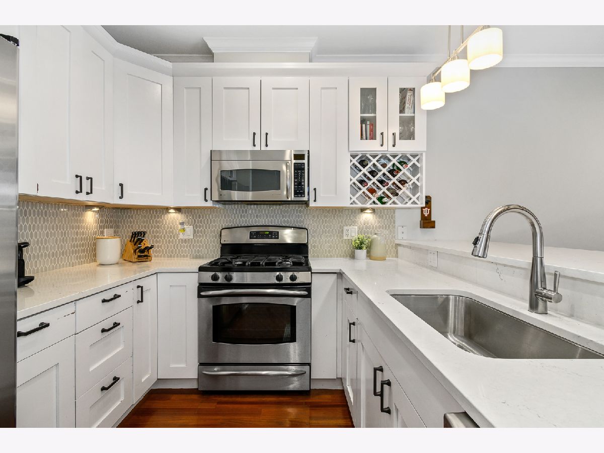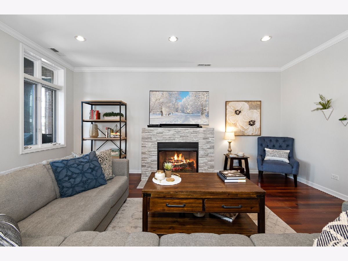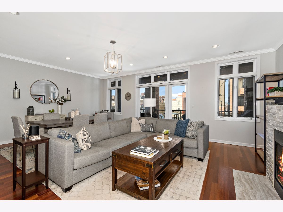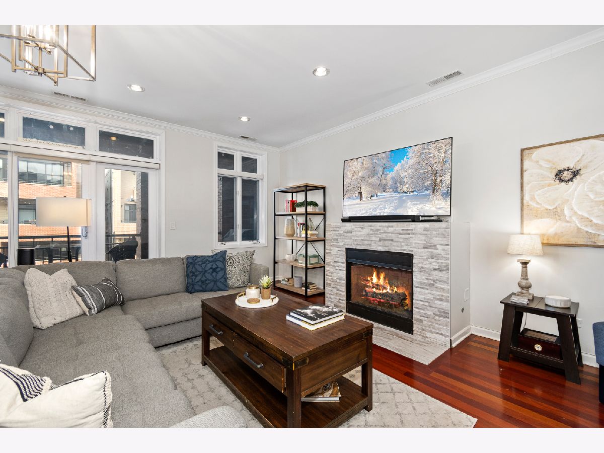 RED HOT West Town Ultra-Wide 3Bed/2Bath Condo. Completely move-in ready with tasteful updates throughout that truly checks all of the boxes. As you enter the unit your eyes are immediately drawn to the expansive living room/dining room combo showing off the ultra-wide floorpan featuring brazilian cherry floors, 9 ft ceilings, gas-burning fireplace with beautiful updated tiling and large windows overlooking your balcony over Chicago allowing for tons of natural light to flood the unit. Balcony on the front of the unit stretches the whole width of the building and provides plenty of room for an outdoor furniture setup + all of your grilling needs. Perfect for entertaining. As you move throughout the rest of the unit, you will be greeted by a modern kitchen with white cabinetry + black handles, built in wine rack, stainless steel appliances and newly updated quartz countertops & ornate backsplash. Continuing on, primary bedroom is incredibly spacious with plenty of room for a king bed + large walk-in closet & ensuite bath that includes steam shower and double vanity. 2nd & 3rd bedrooms allow for a designated guest room + a private office for your work from home needs. Oversized Garage parking with designated storage included in price. Easy commute to the Loop w/ Chicago Blue Line or jump on 90-94 in seconds! Step out your door to Eckhart park, Mariano's, Restaurants, Fulton Market, Nightlife, & Everything West town has to offer!