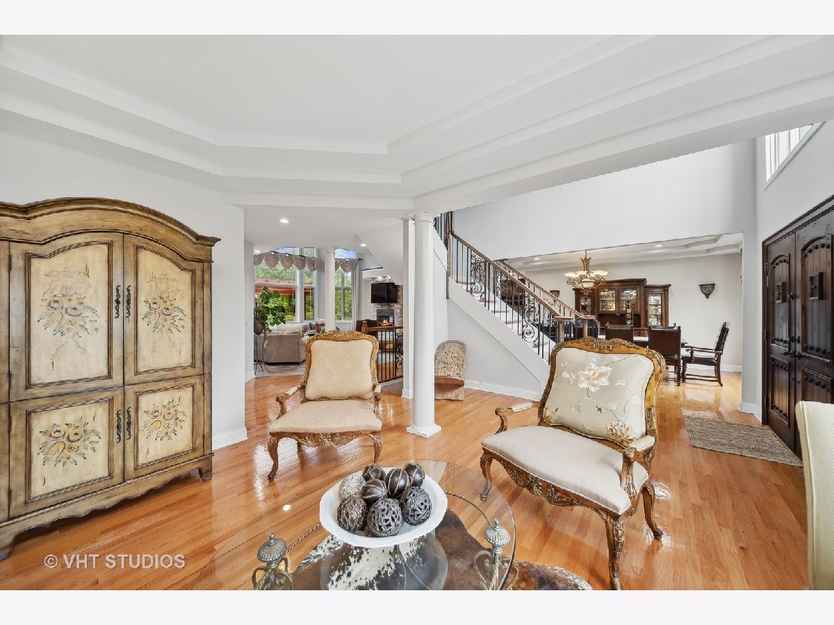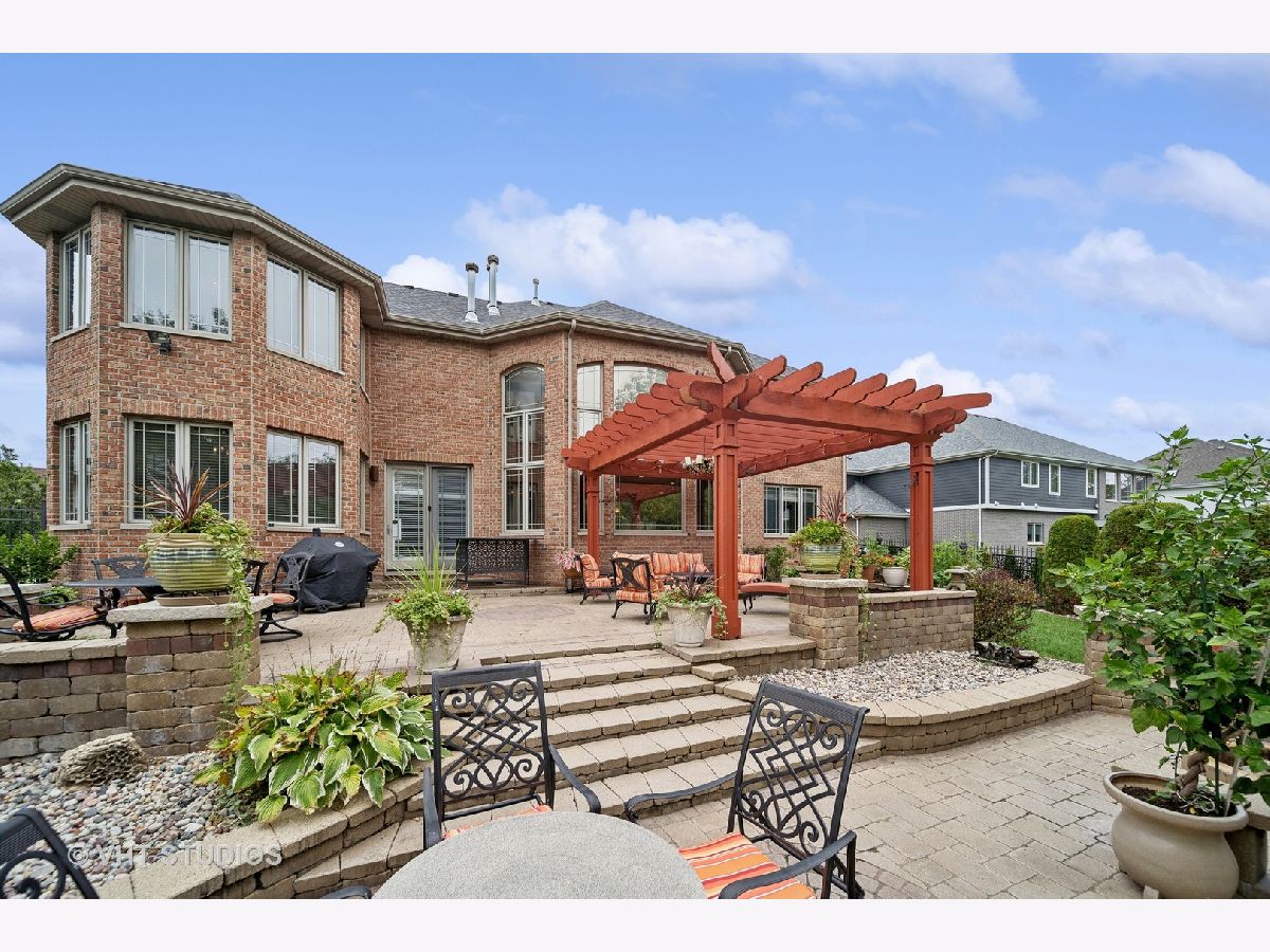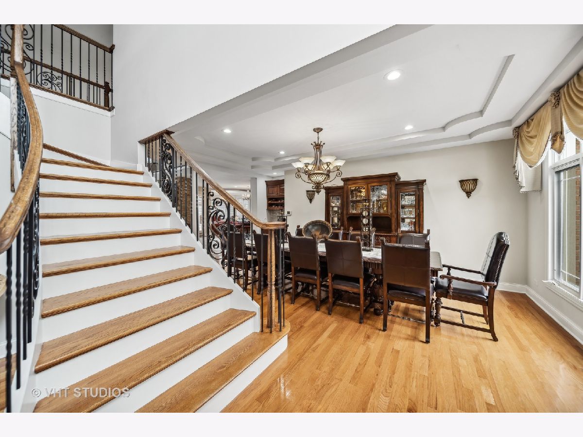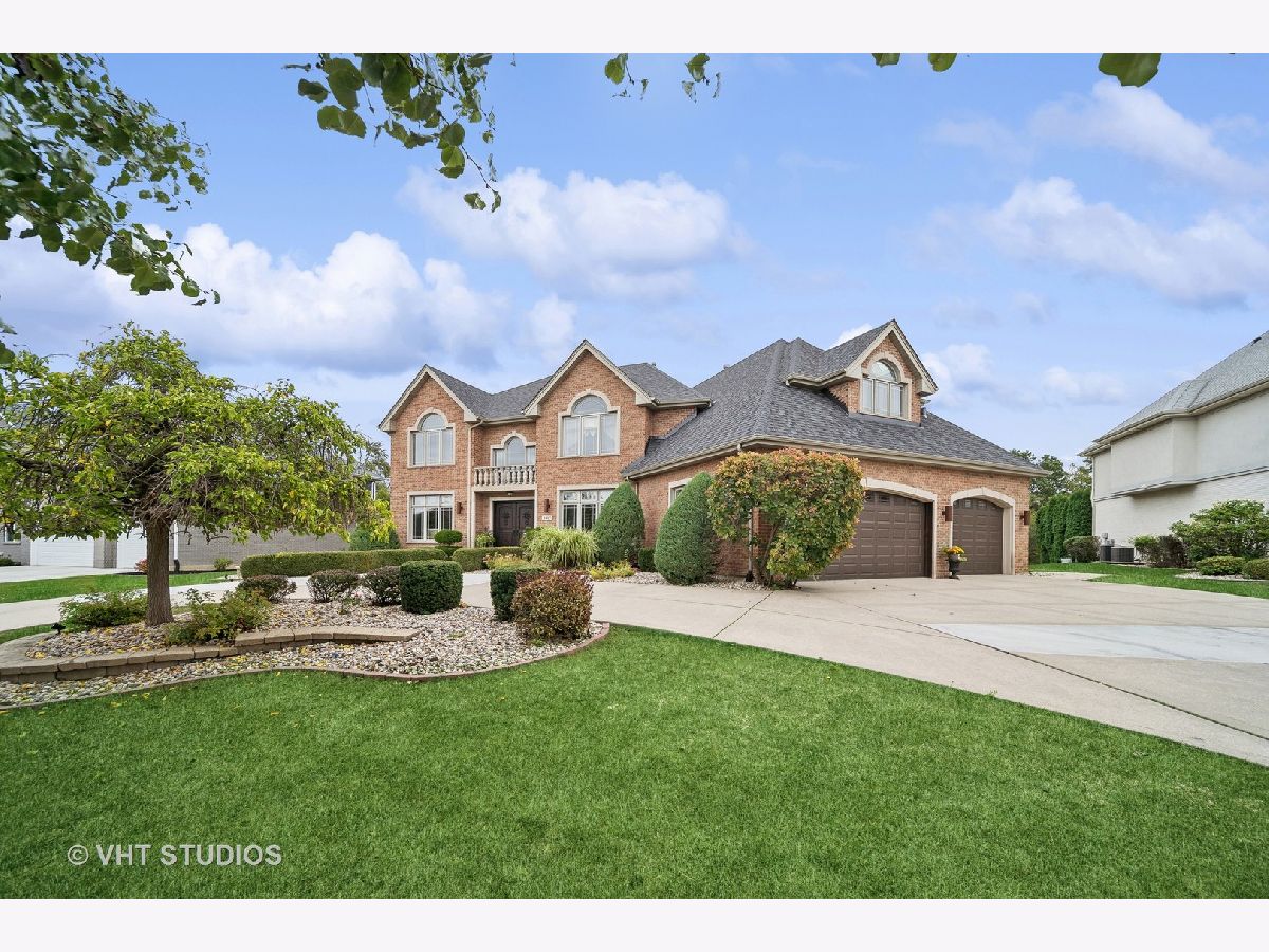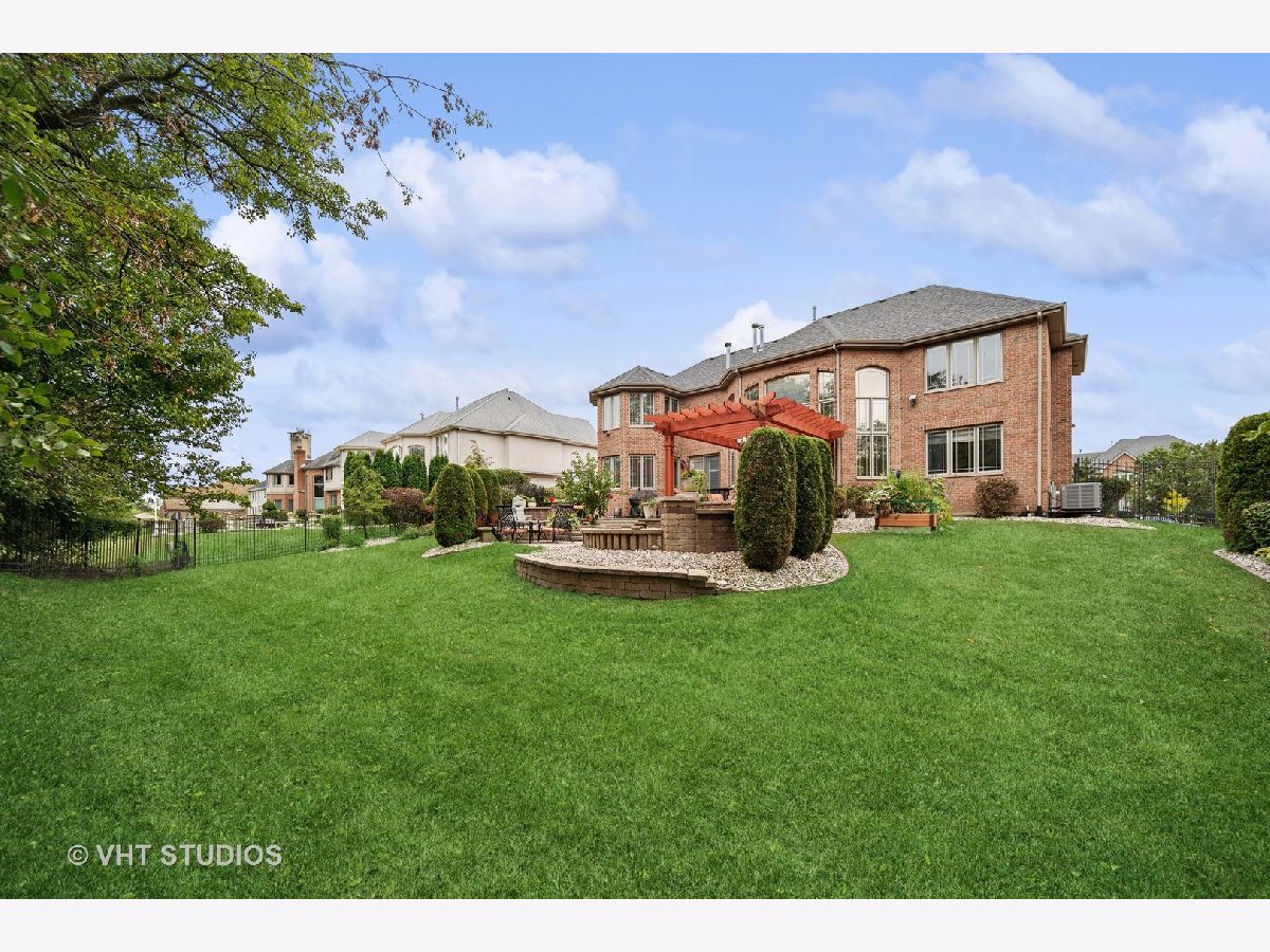 Hello Ballantrae. Welcome to your dream home in Flossmoor on a gorgeous, tree-lined, and picturesque block. This home stands out with impeccable updates and meticulous maintenance, such as oak hardwood floors, elegant ceramic tile details, tray ceilings, 6" molding and transitional window casing, recessed lighting, chandeliers, custom window treatments, new paint throughout, and a layout that will allow you to live with ease. The main level opens to an inviting foyer with a motorized chandelier from Scotland sets the tone. The dining room, perfect for hosting, boasts a tray ceiling and wet bar. Enjoy the formal living room and the family room with dramatic 17' ceilings, 14' arched windows, and a dual-sided gas fireplace. The kitchen is a chef's paradise with 42" cabinetry with custom crown molding, a double island with granite counters, a stainless steel appliance suite: French door refrigerator, external exhaust chef's hood with custom paneling, beverage center, six burner range with griddle and dual oven, dishwasher, built-in microwave and warming drawer. All appliances are less than four years old. This level also features a fifth bedroom, a full bathroom, and a full-sized laundry room. Upstairs, you have 4 generous bedrooms, including a luxurious primary suite with a gas fireplace, sitting area, walk-in closet, shoe closet, and a large ensuite with dual vanities and makeup counter, large jetted tub, water closet, towel warmer, and a focal French door glass paneled linen closet. A junior primary bedroom with an ensuite and two additional bedrooms connected by a shared bath with private vanity rooms complete this level. Entertain in style in your lower level with a dry bar that fits 8-10, an oversized family room, a game area, a workout area, a fully enclosed private office, and ample storage. The backyard is any homeowner's dream. It is professionally landscaped with concrete pavers, flower and vegetable garden, fire pit, large pergola, and multiple entertainment areas, enclosed with an aluminum fence with pet-guard detail. The roof is a complete tear-off, with new skylights, in 2024.