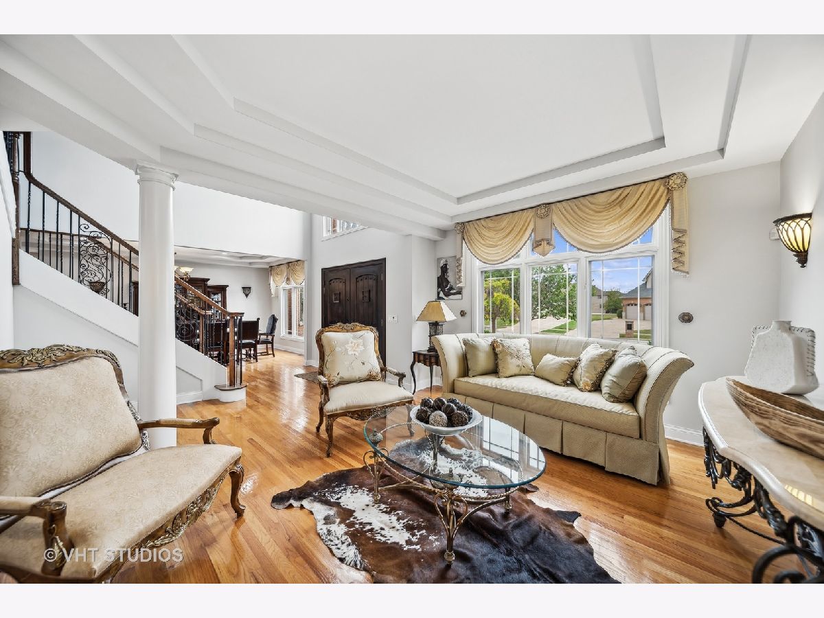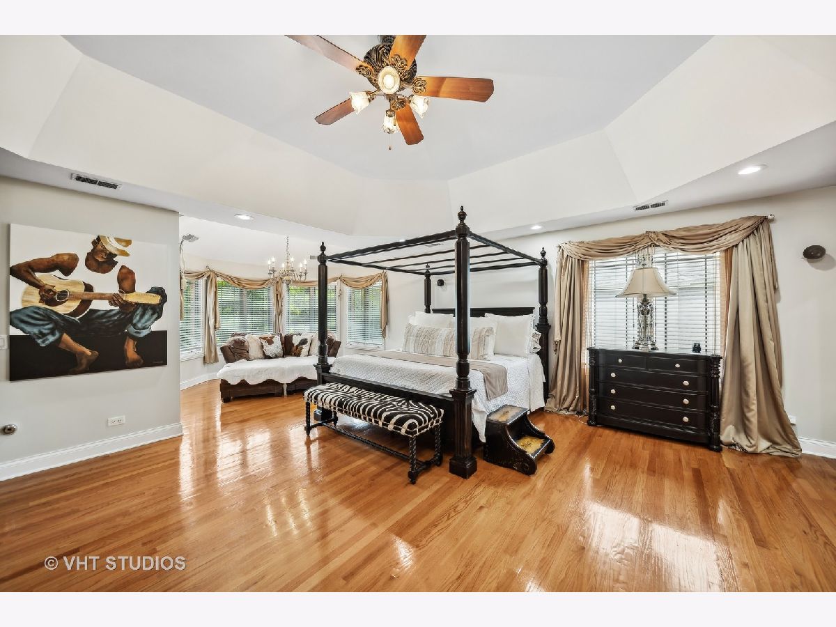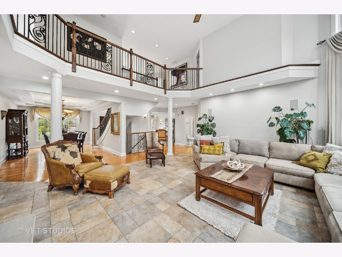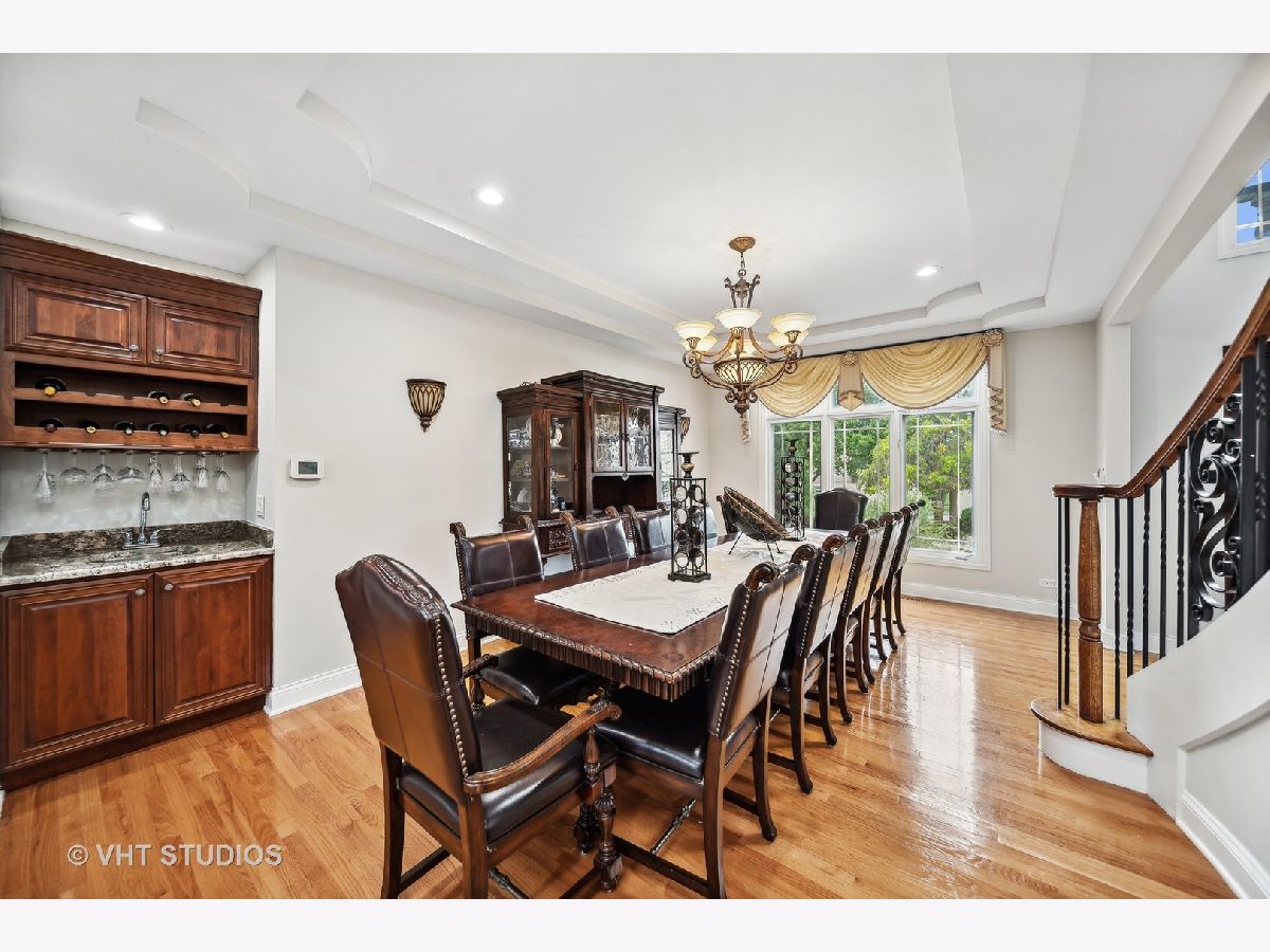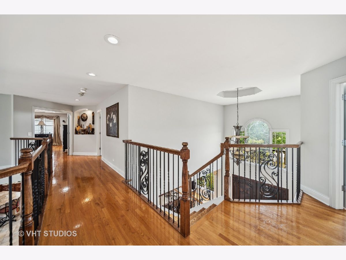 Hello Ballantrae. Welcome to your dream home in Flossmoor on a gorgeous, tree-lined, and picturesque block. This home stands out with impeccable updates and meticulous maintenance, such as oak hardwood floors, elegant ceramic tile details, tray ceilings, 6" molding and transitional window casing, recessed lighting, chandeliers, custom window treatments, new paint throughout, and a layout that will allow you to live with ease. The main level opens to an inviting foyer with a motorized chandelier from Scotland sets the tone. The dining room, perfect for hosting, boasts a tray ceiling and wet bar. Enjoy the formal living room and the family room with dramatic 17' ceilings, 14' arched windows, and a dual-sided gas fireplace. The kitchen is a chef's paradise with 42" cabinetry with custom crown molding, a double island with granite counters, a stainless steel appliance suite: French door refrigerator, external exhaust chef's hood with custom paneling, beverage center, six burner range with griddle and dual oven, dishwasher, built-in microwave and warming drawer. All appliances are less than four years old. This level also features a fifth bedroom, a full bathroom, and a full-sized laundry room. Upstairs, you have 4 generous bedrooms, including a luxurious primary suite with a gas fireplace, sitting area, walk-in closet, shoe closet, and a large ensuite with dual vanities and makeup counter, large jetted tub, water closet, towel warmer, and a focal French door glass paneled linen closet. A junior primary bedroom with an ensuite and two additional bedrooms connected by a shared bath with private vanity rooms complete this level. Entertain in style in your lower level with a dry bar that fits 8-10, an oversized family room, a game area, a workout area, a fully enclosed private office, and ample storage. The backyard is any homeowner's dream. It is professionally landscaped with concrete pavers, flower and vegetable garden, fire pit, large pergola, and multiple entertainment areas, enclosed with an aluminum fence with pet-guard detail. The roof is a complete tear-off, with new skylights, in 2024.