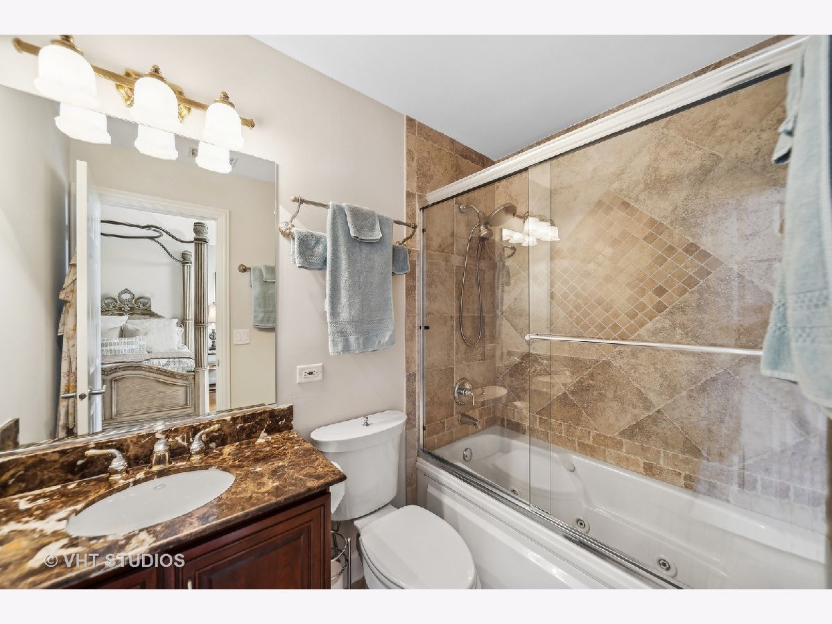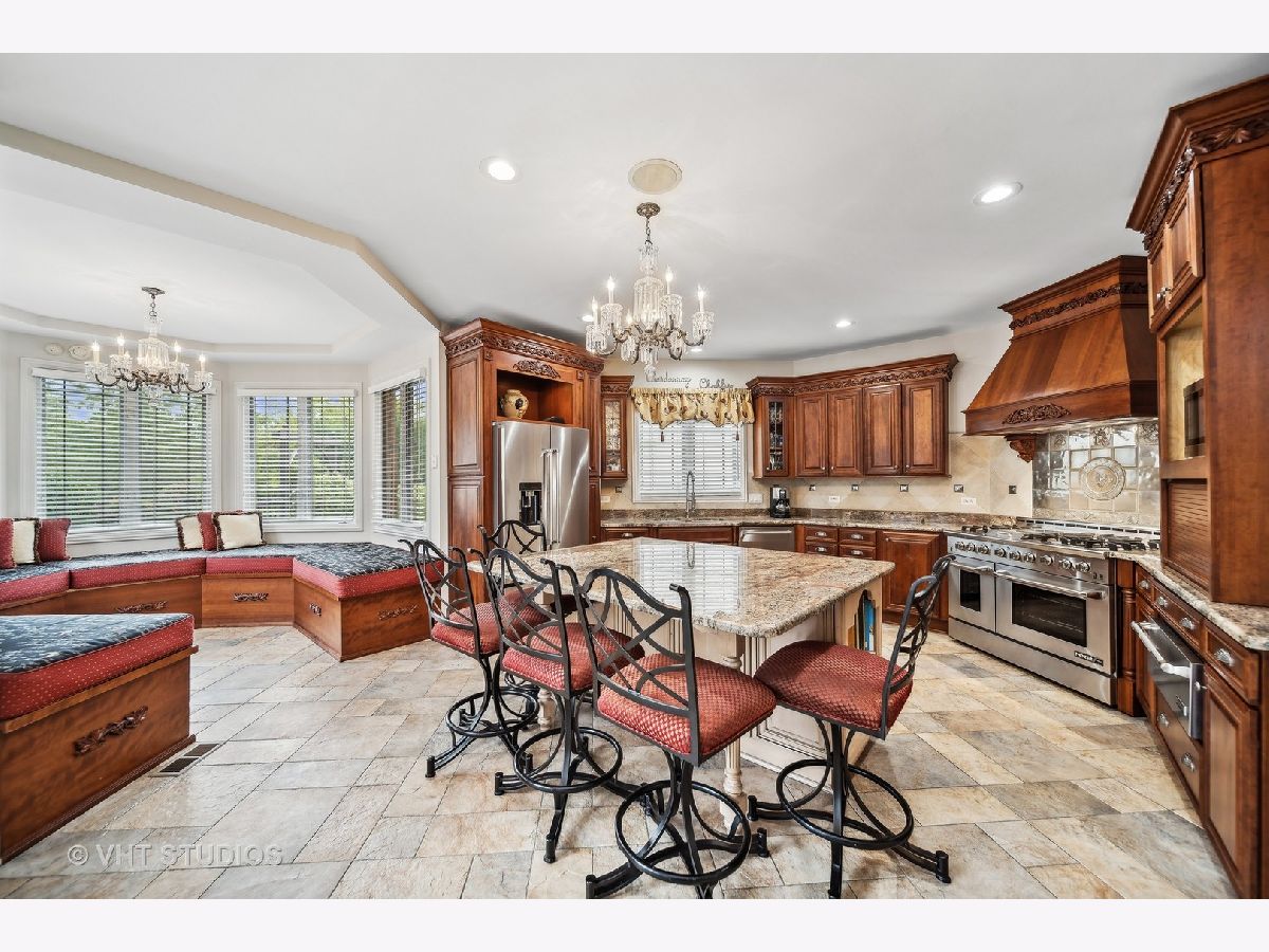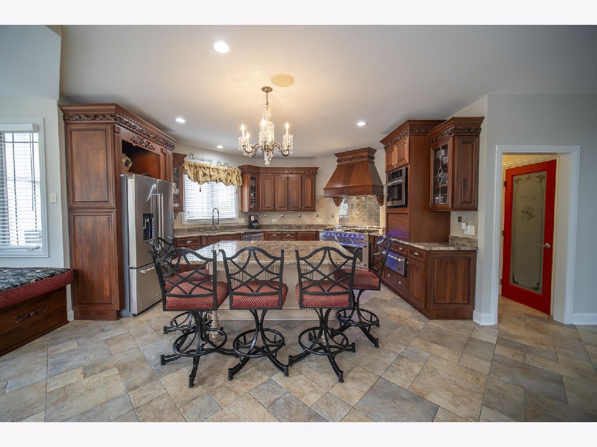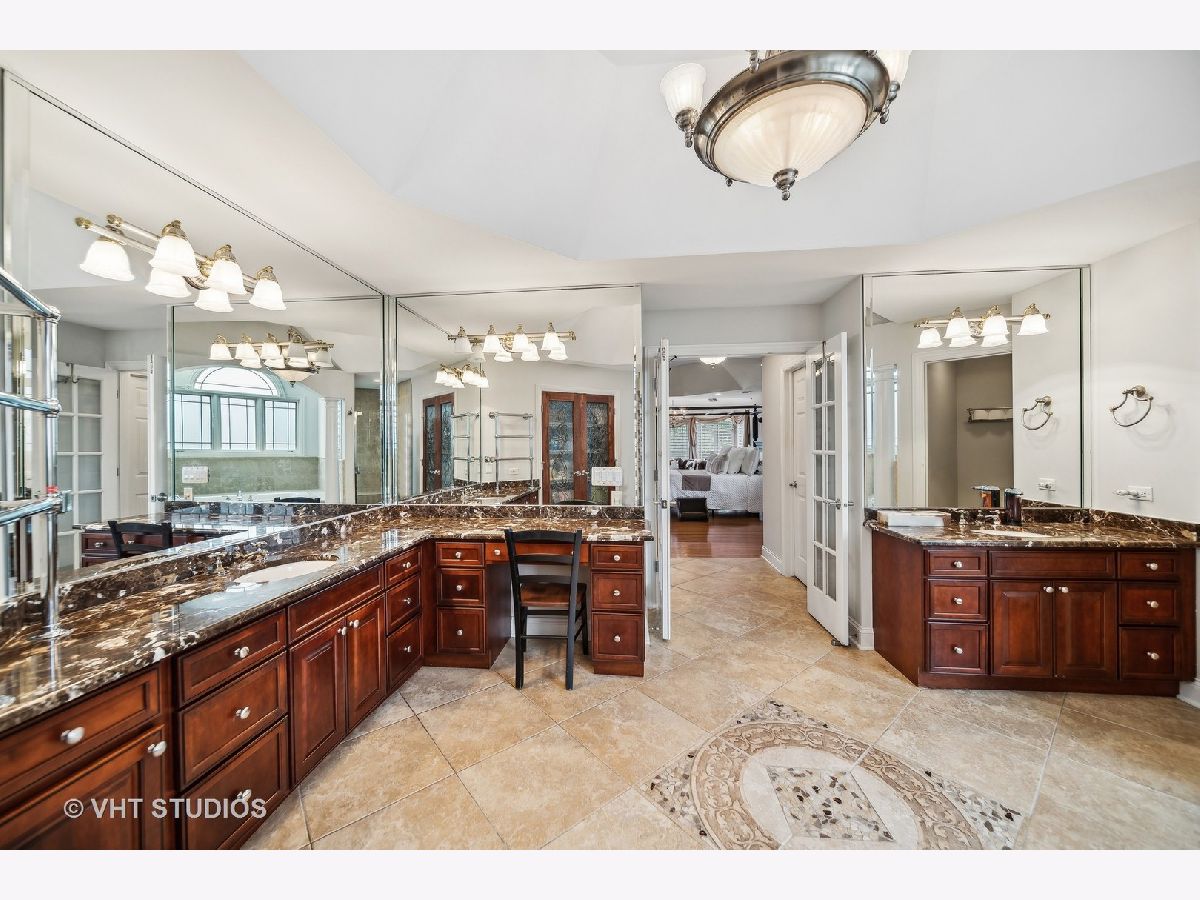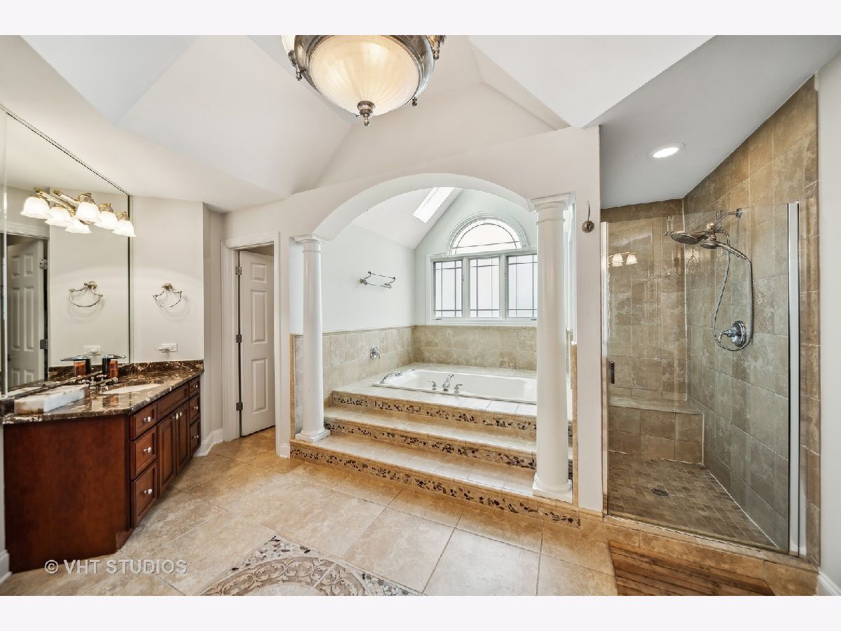 Hello Ballantrae. Welcome to your dream home in Flossmoor on a gorgeous, tree-lined, and picturesque block. This home stands out with impeccable updates and meticulous maintenance, such as oak hardwood floors, elegant ceramic tile details, tray ceilings, 6" molding and transitional window casing, recessed lighting, chandeliers, custom window treatments, new paint throughout, and a layout that will allow you to live with ease. The main level opens to an inviting foyer with a motorized chandelier from Scotland sets the tone. The dining room, perfect for hosting, boasts a tray ceiling and wet bar. Enjoy the formal living room and the family room with dramatic 17' ceilings, 14' arched windows, and a dual-sided gas fireplace. The kitchen is a chef's paradise with 42" cabinetry with custom crown molding, a double island with granite counters, a stainless steel appliance suite: French door refrigerator, external exhaust chef's hood with custom paneling, beverage center, six burner range with griddle and dual oven, dishwasher, built-in microwave and warming drawer. All appliances are less than four years old. This level also features a fifth bedroom, a full bathroom, and a full-sized laundry room. Upstairs, you have 4 generous bedrooms, including a luxurious primary suite with a gas fireplace, sitting area, walk-in closet, shoe closet, and a large ensuite with dual vanities and makeup counter, large jetted tub, water closet, towel warmer, and a focal French door glass paneled linen closet. A junior primary bedroom with an ensuite and two additional bedrooms connected by a shared bath with private vanity rooms complete this level. Entertain in style in your lower level with a dry bar that fits 8-10, an oversized family room, a game area, a workout area, a fully enclosed private office, and ample storage. The backyard is any homeowner's dream. It is professionally landscaped with concrete pavers, flower and vegetable garden, fire pit, large pergola, and multiple entertainment areas, enclosed with an aluminum fence with pet-guard detail. The roof is a complete tear-off, with new skylights, in 2024.