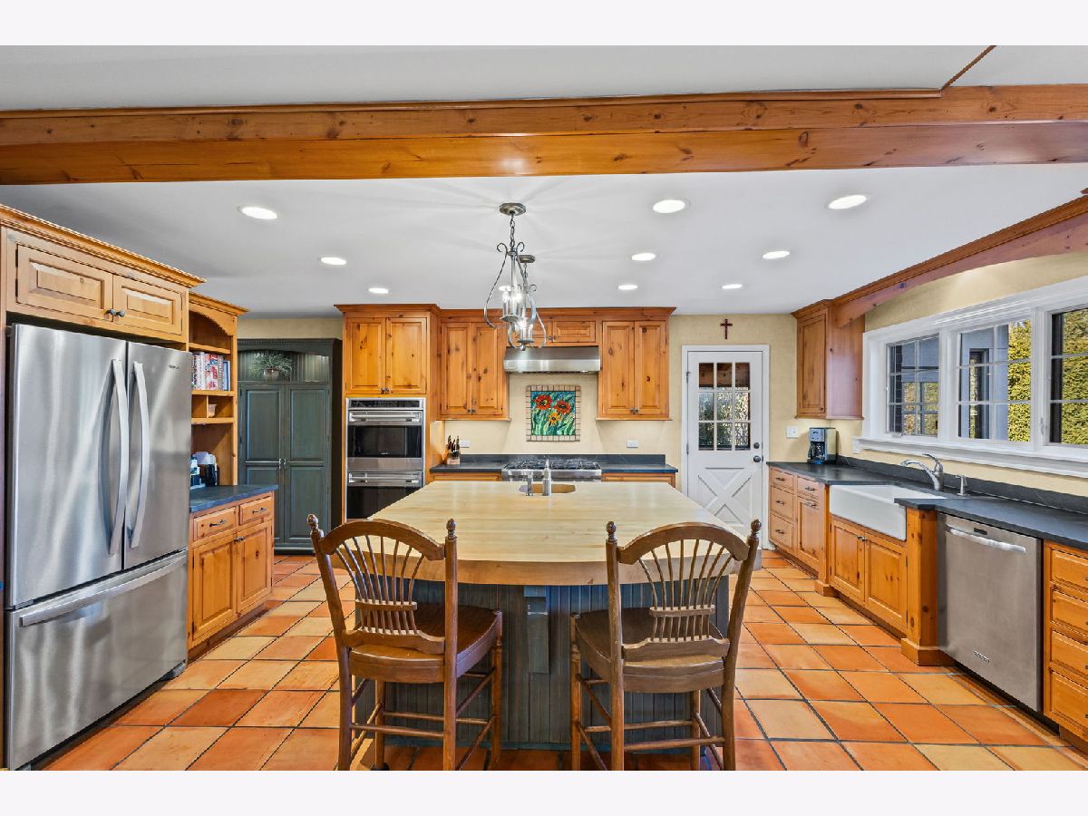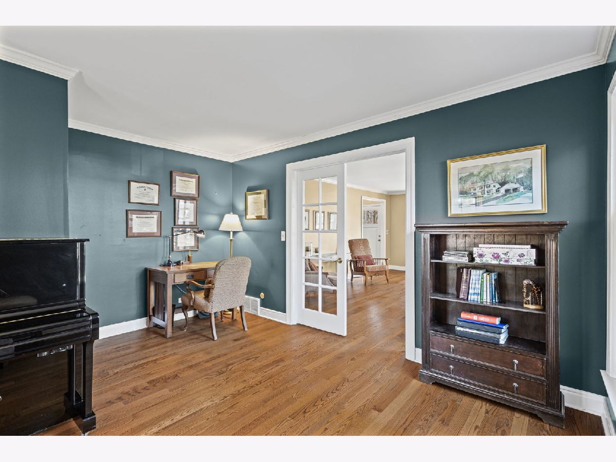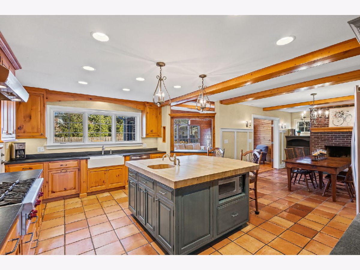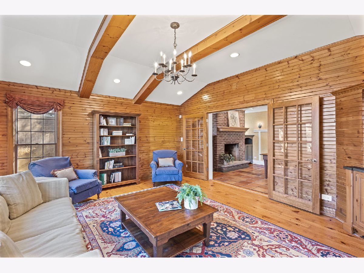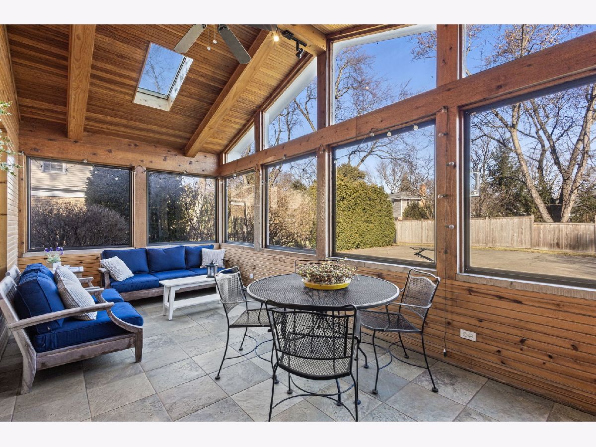 Positioned on a prime lot in coveted Tall Trees, this New England inspired colonial will captivate your heart with impressive features and classic charm at an unbeatable location. The bluestone walkway usher you through a charming covered front porch into the homes center foyer. The main level boasts a thoughtful layout ideal for entertaining and every day living and is marked with beautiful Hardwood Floors and crisp crown molding. On the left a formal living room radiates character with multi pane picture windows and French doors to the attached office. The dining room to the right is perfect for large gatherings, the chair rail extends the traditional feel. The main hall invites you to the heart of the home; a show stopping New England kitchen right out of a magazine. Boasting beamed ceilings, custom wood cabinetry topped with soapstone counters, Wolf double wall ovens and 6 burner cooktop, deep farm sink overlooking the backyard, a large center island with prep sink and 4 inch thick butcher block top that offers seating for 3. The adjacent breakfast area with it's floor-to-ceiling brick fireplace is flanked by stylish custom bookcases. French doors to the adjacent family room sport a beamed cathedral ceiling with warm wood paneled walls and an expansive window overlooking the lush yard. Off the kitchen is the beautiful three season porch, perfect for casual gatherings, exiting to a Bluestone patio and to the concrete basketball court. Tucked away off the main hall is a versatile office and a powder room. Upstairs you'll find five generously size bedrooms each with organized closets and three luxurious bathrooms. The serene and extensive primary suite features Hardwood Floors, vaulted ceilings, wainscoting and custom walk-in closet. The spa like en-suite impresses with double vanity complete with Carrera marble, wainscoting, soaking tub, walk in shower and private water closet. Bedroom 3 impresses with double closets and its own en-suite featuring a large shower and natural stone tiling. Spacious hall bath offers a double sink vanity and a tub shower. The finished and expanded basement boasting tiled floors offers even more living space including a family room with built-ins, hobby/gaming space and a large extra deep area perfect for exercise or recreation. A large laundry room with white cabinetry, utility sink and ample storage enhances the functionality and extra storage areas enhance organization of the home. A mudroom entering from the 2 car garage and a fully fenced in yard, new roof and furnaces complete it all. This impressive home offers refined living in one of Glenview's most desirable locations within walking distance to the Metra, downtown Glenview and the Glen. This is the home you have been waiting for where timeless style meets every day convenience.