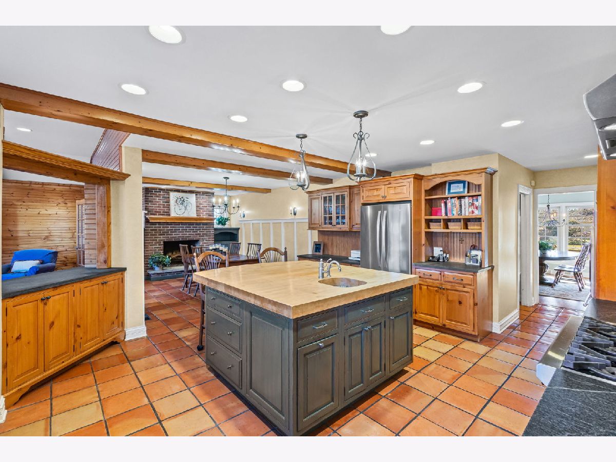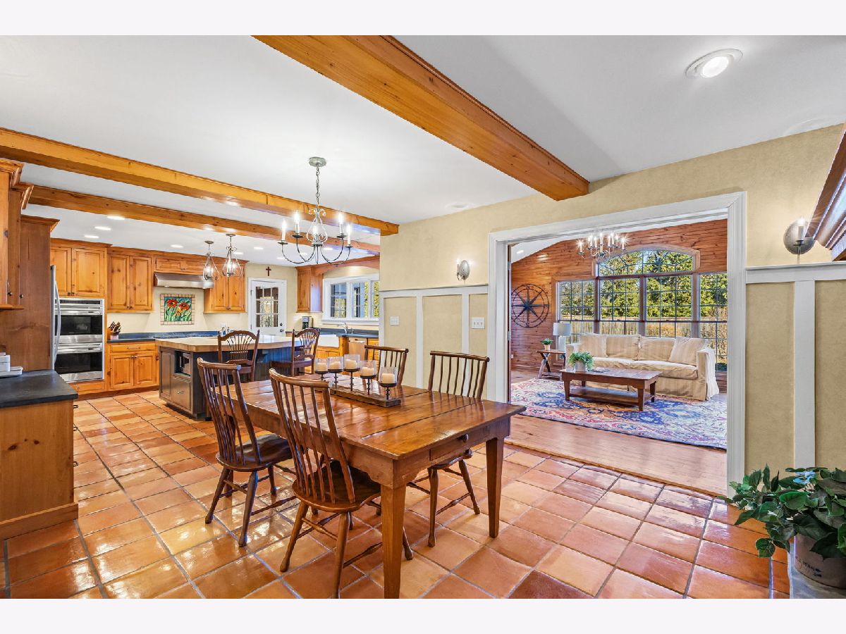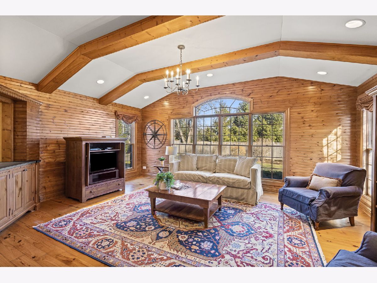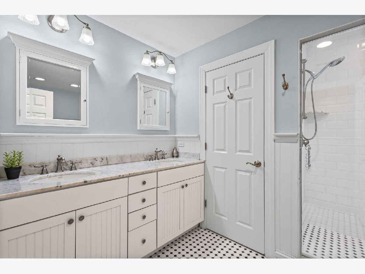 Positioned on a prime lot in coveted Tall Trees, this New England inspired colonial will captivate your heart with impressive features and classic charm at an unbeatable location. The bluestone walkway usher you through a charming covered front porch into the homes center foyer. The main level boasts a thoughtful layout ideal for entertaining and every day living and is marked with beautiful Hardwood Floors and crisp crown molding. On the left a formal living room radiates character with multi pane picture windows and French doors to the attached office. The dining room to the right is perfect for large gatherings, the chair rail extends the traditional feel. The main hall invites you to the heart of the home; a show stopping New England kitchen right out of a magazine. Boasting beamed ceilings, custom wood cabinetry topped with soapstone counters, Wolf double wall ovens and 6 burner cooktop, deep farm sink overlooking the backyard, a large center island with prep sink and 4 inch thick butcher block top that offers seating for 3. The adjacent breakfast area with it's floor-to-ceiling brick fireplace is flanked by stylish custom bookcases. French doors to the adjacent family room sport a beamed cathedral ceiling with warm wood paneled walls and an expansive window overlooking the lush yard. Off the kitchen is the beautiful three season porch, perfect for casual gatherings, exiting to a Bluestone patio and to the concrete basketball court. Tucked away off the main hall is a versatile office and a powder room. Upstairs you'll find five generously size bedrooms each with organized closets and three luxurious bathrooms. The serene and extensive primary suite features Hardwood Floors, vaulted ceilings, wainscoting and custom walk-in closet. The spa like en-suite impresses with double vanity complete with Carrera marble, wainscoting, soaking tub, walk in shower and private water closet. Bedroom 3 impresses with double closets and its own en-suite featuring a large shower and natural stone tiling. Spacious hall bath offers a double sink vanity and a tub shower. The finished and expanded basement boasting tiled floors offers even more living space including a family room with built-ins, hobby/gaming space and a large extra deep area perfect for exercise or recreation. A large laundry room with white cabinetry, utility sink and ample storage enhances the functionality and extra storage areas enhance organization of the home. A mudroom entering from the 2 car garage and a fully fenced in yard, new roof and furnaces complete it all. This impressive home offers refined living in one of Glenview's most desirable locations within walking distance to the Metra, downtown Glenview and the Glen. This is the home you have been waiting for where timeless style meets every day convenience.